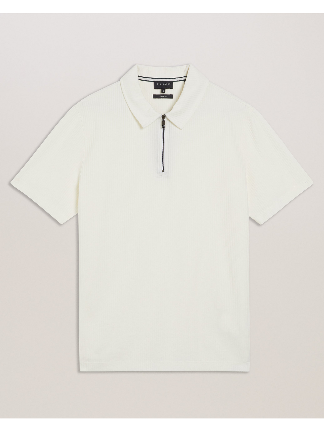 Ribbed Texture Zip Neck Cotton Polo Shirt