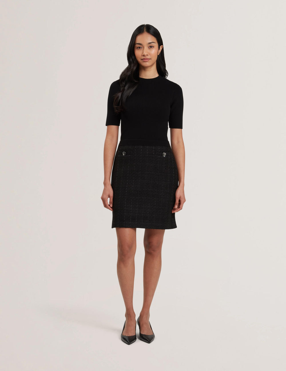 SHORT SLEEVE CREW NECK MINI DRESS | BLACK SHORT SLEEVE CREW NECK MINI DRESS | BLACK