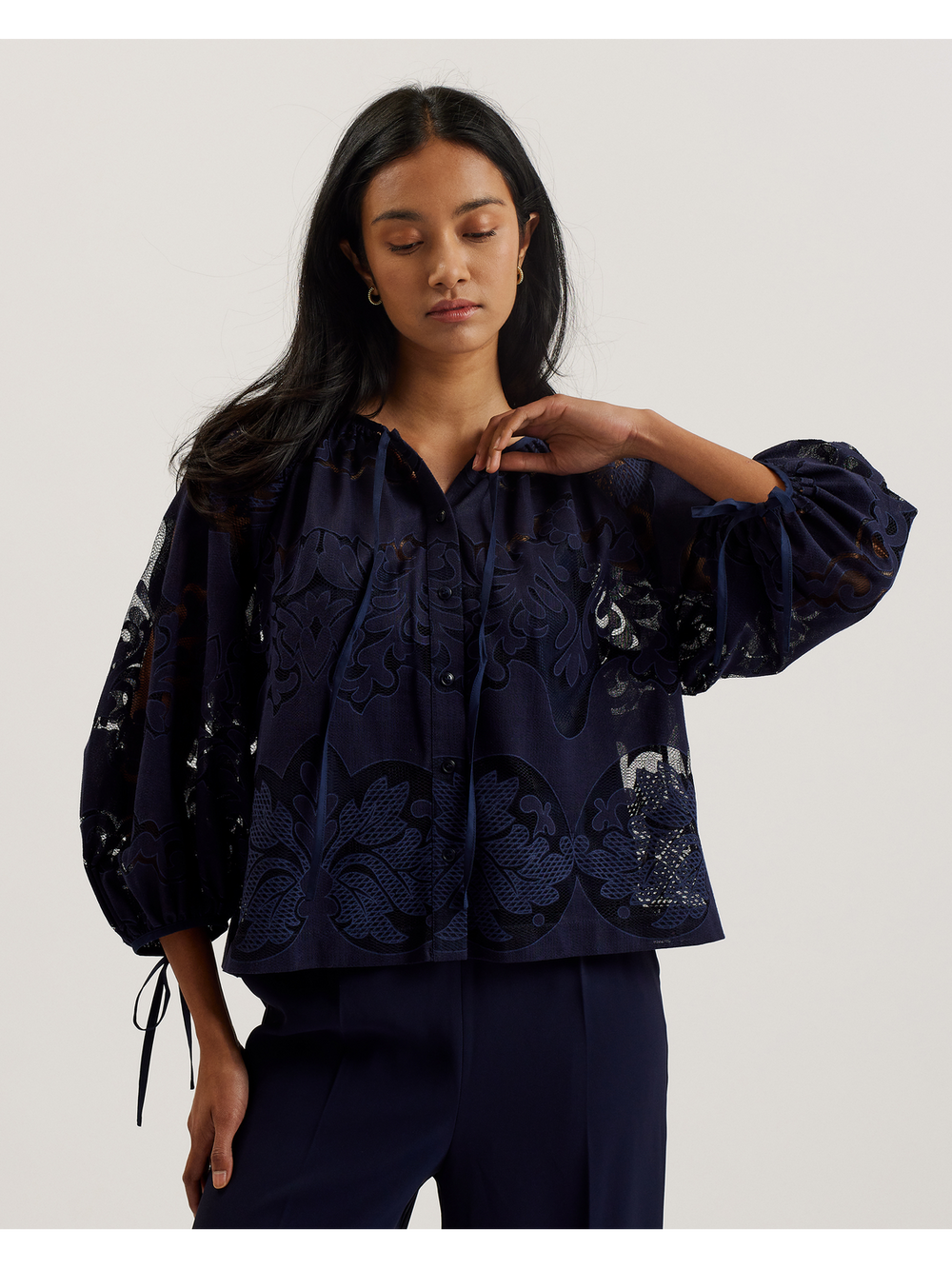 Refresh your wardrobe with the women's sale tops collection from Ted Baker. Explore a stunning selection of tops, blouses, jumpers, and cardigans—all designed to elevate your everyday and occasion looks.