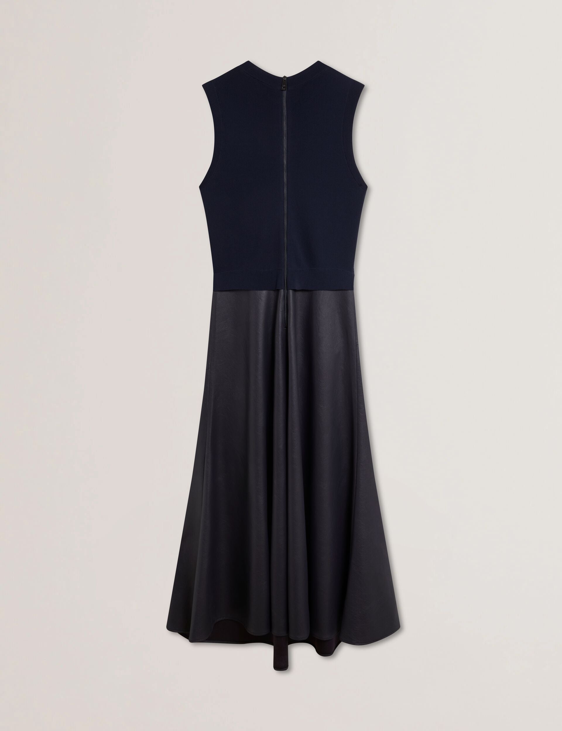 Sleeveless Knit Faux Leather Midi Dress