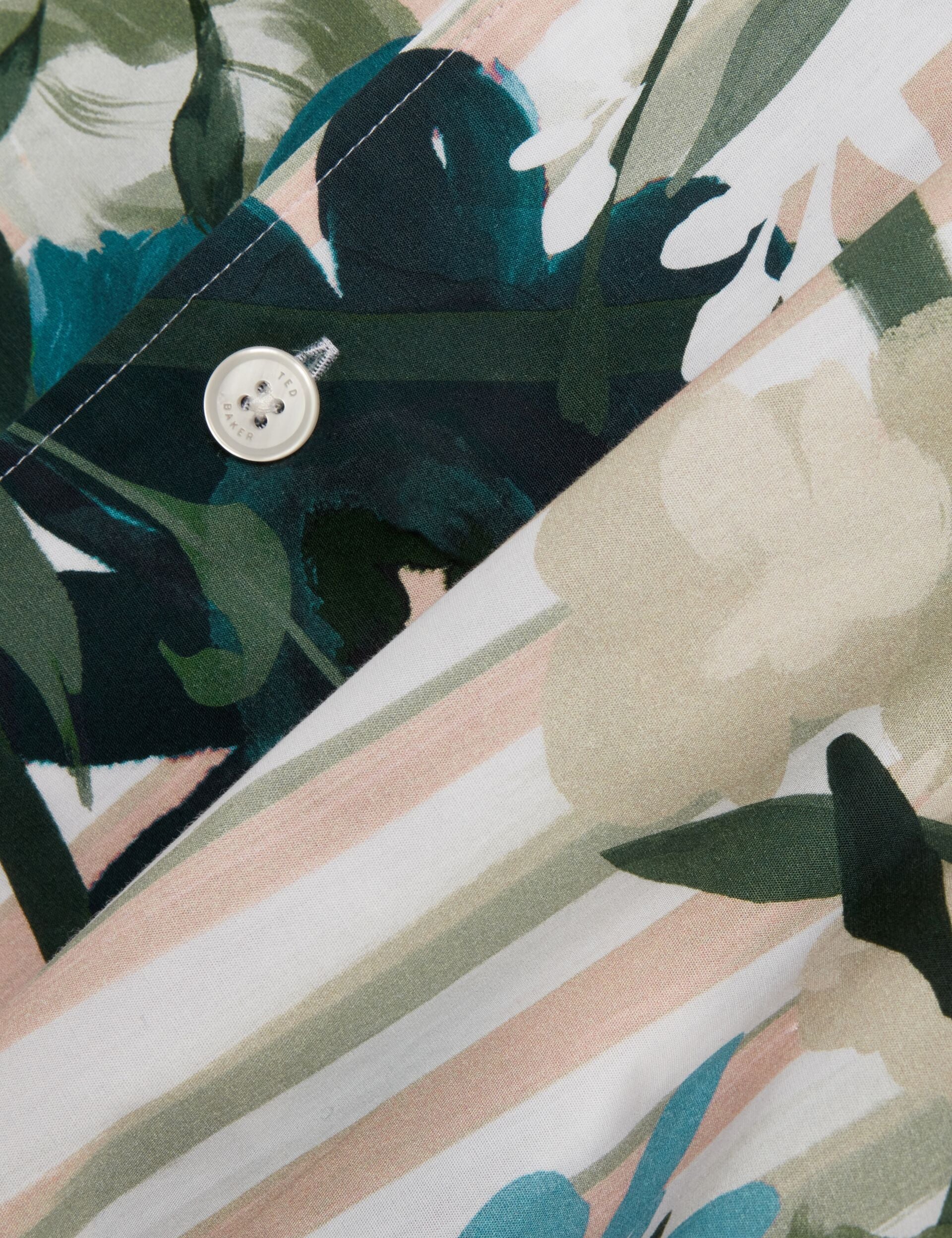 Floral Stripe Print Cotton Short Sleeve Shirt