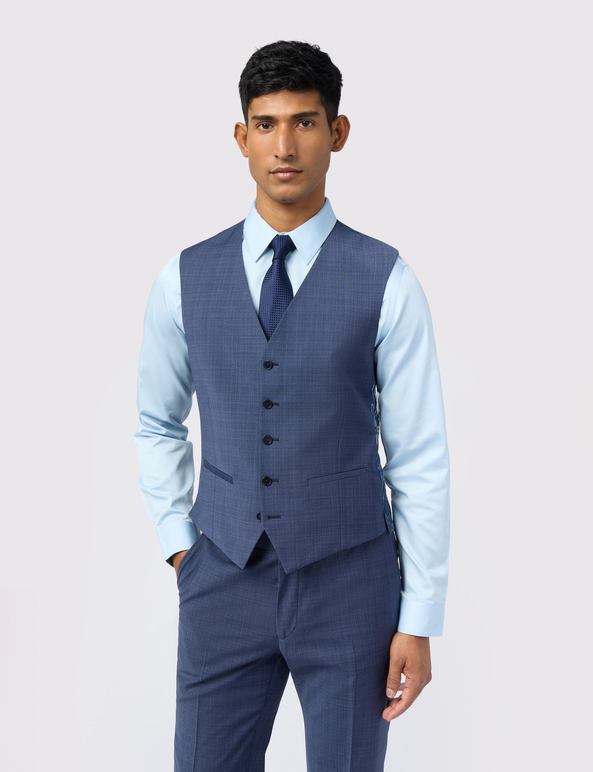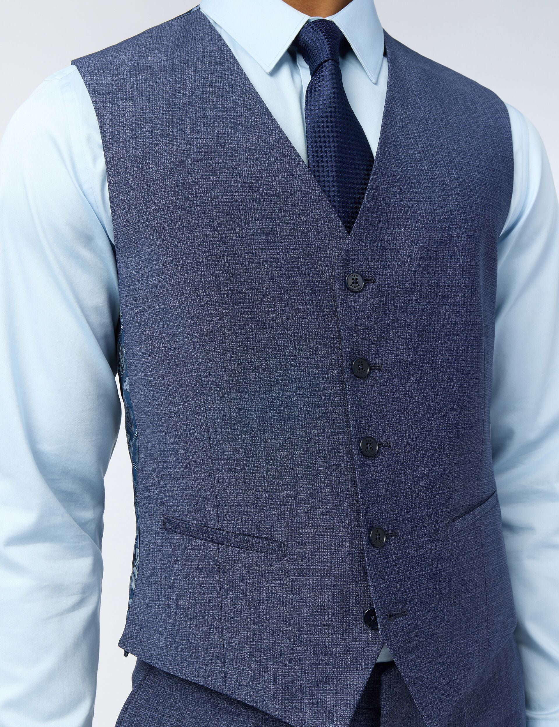 A subtle check design is added to an airforce blue base to create the sharp style of this FOYLE suit waistcoat. Thanks to the high-performance wool blend that's water and stain resistant, this slim fit piece will stay looking smarter for longer.