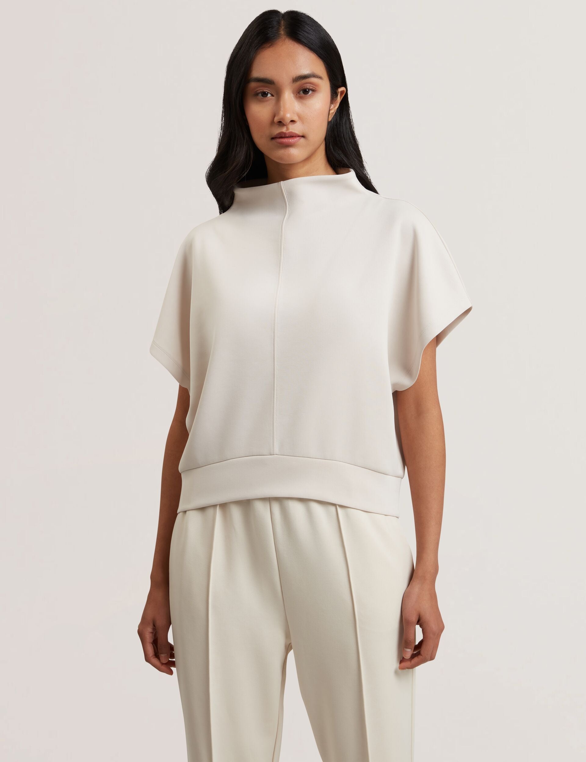 Funnel Neck Boxy Short Sleeve Sweatshirt