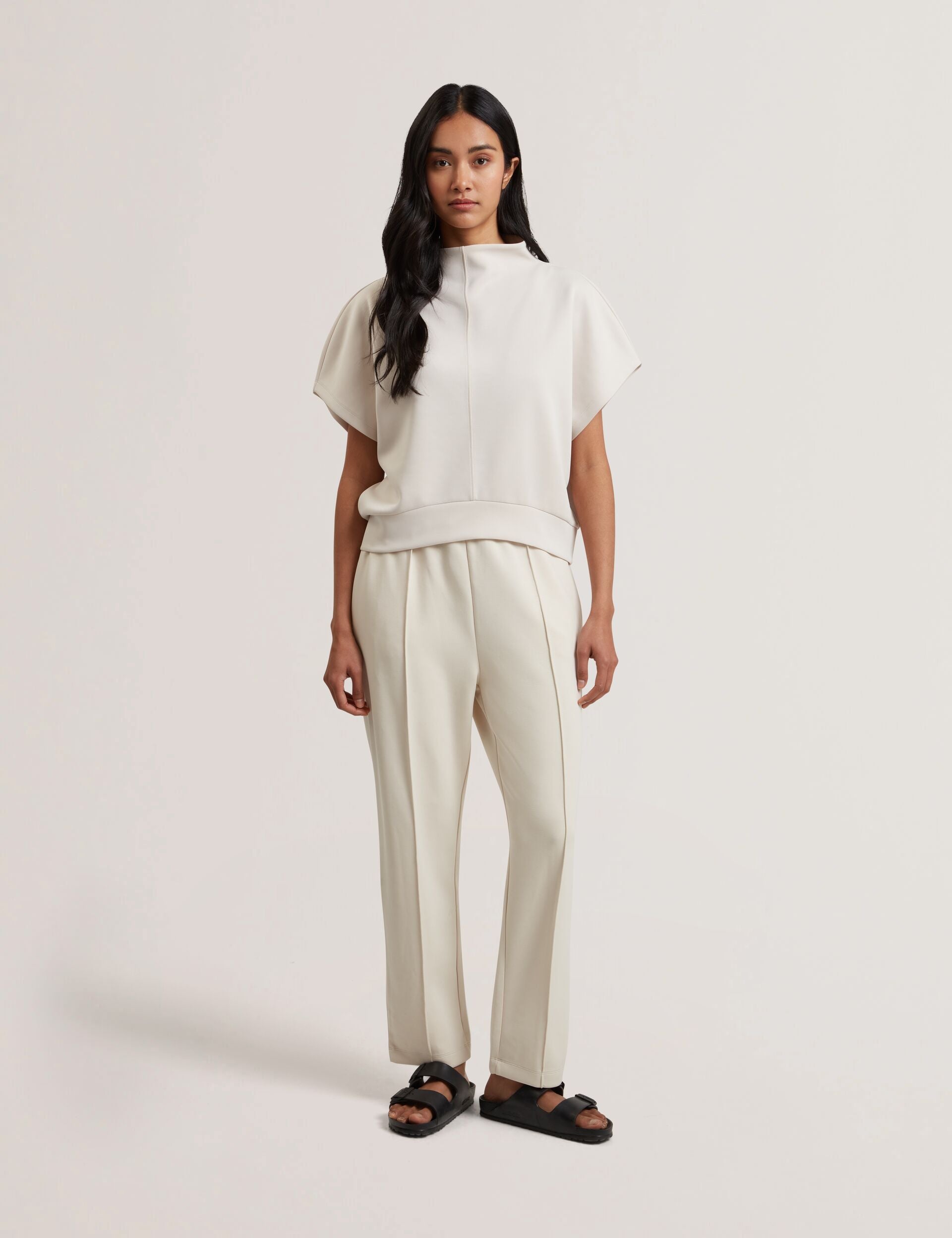 We're doing sweats the elevated way with HALIYY. Thanks to its boxy shape and funnel neck, this short sleeve sweatshirt works for both lounging and giving your casual fits a sporty twist.
