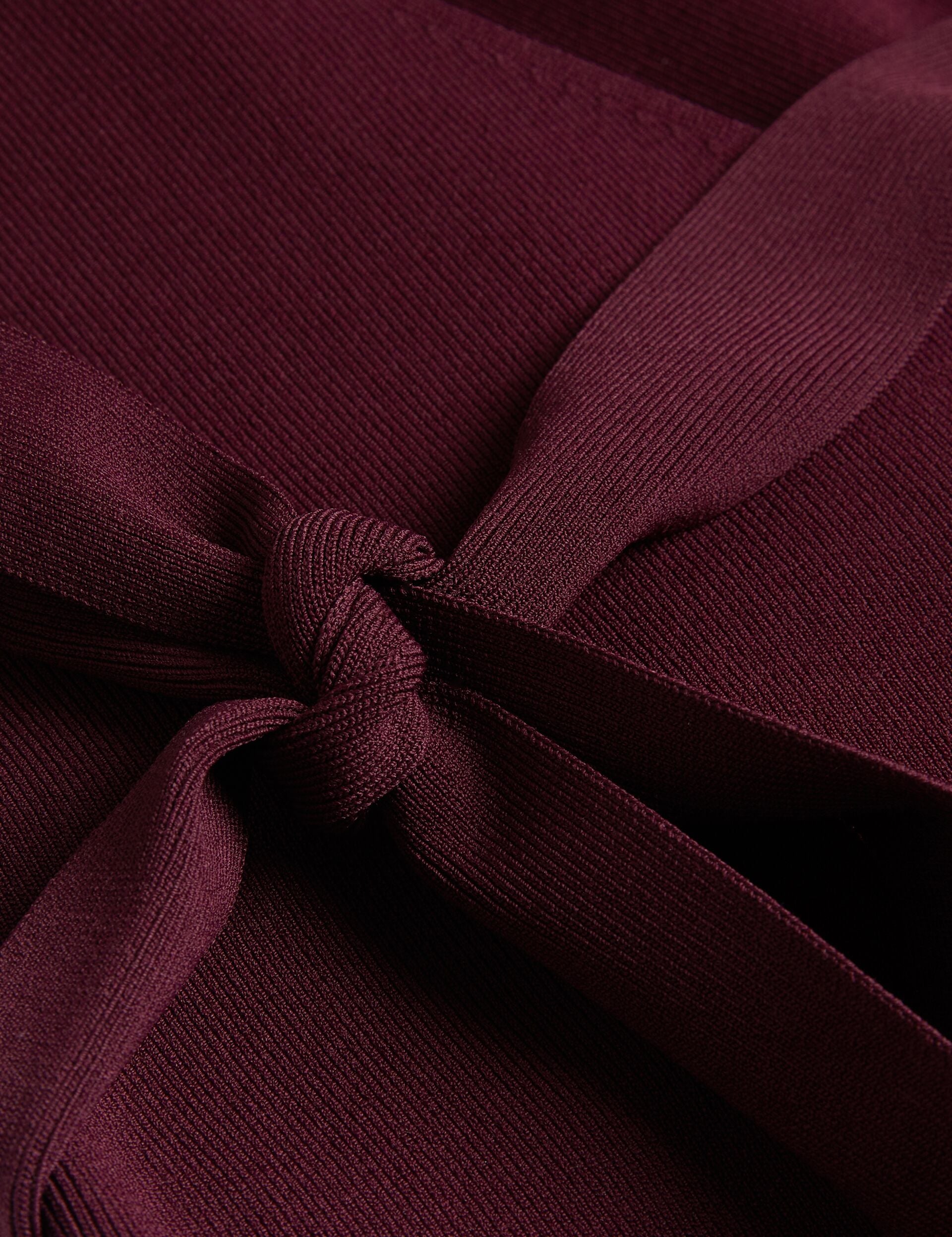 NAYOMEE cuts the sleekest of silhouettes with its wrap design and low V neckline. This long sleeve top is crafted from a fine knit fabric that's warm but still flattering, and fastens at the waist with a self-tie belt to fit this piece just to your liking.