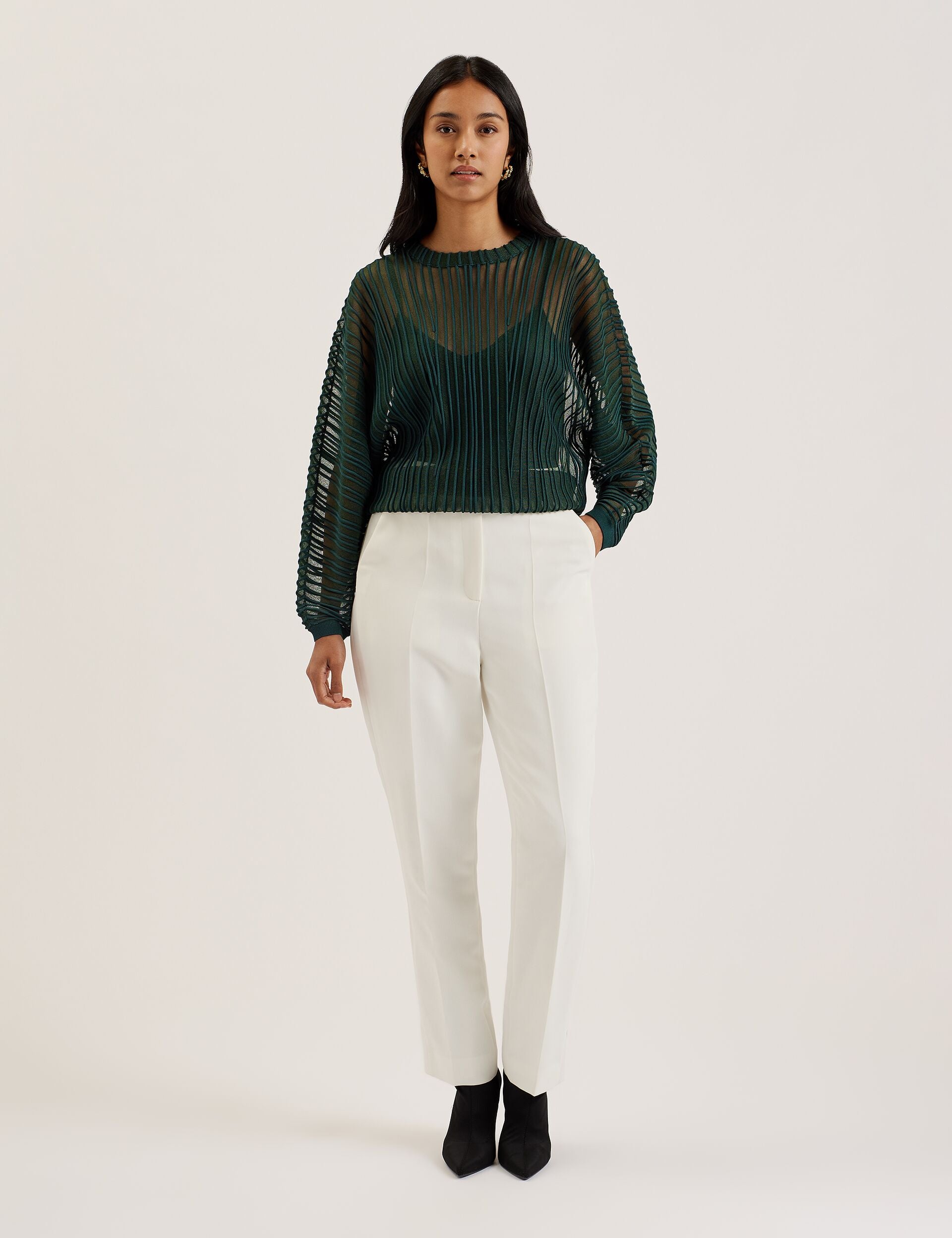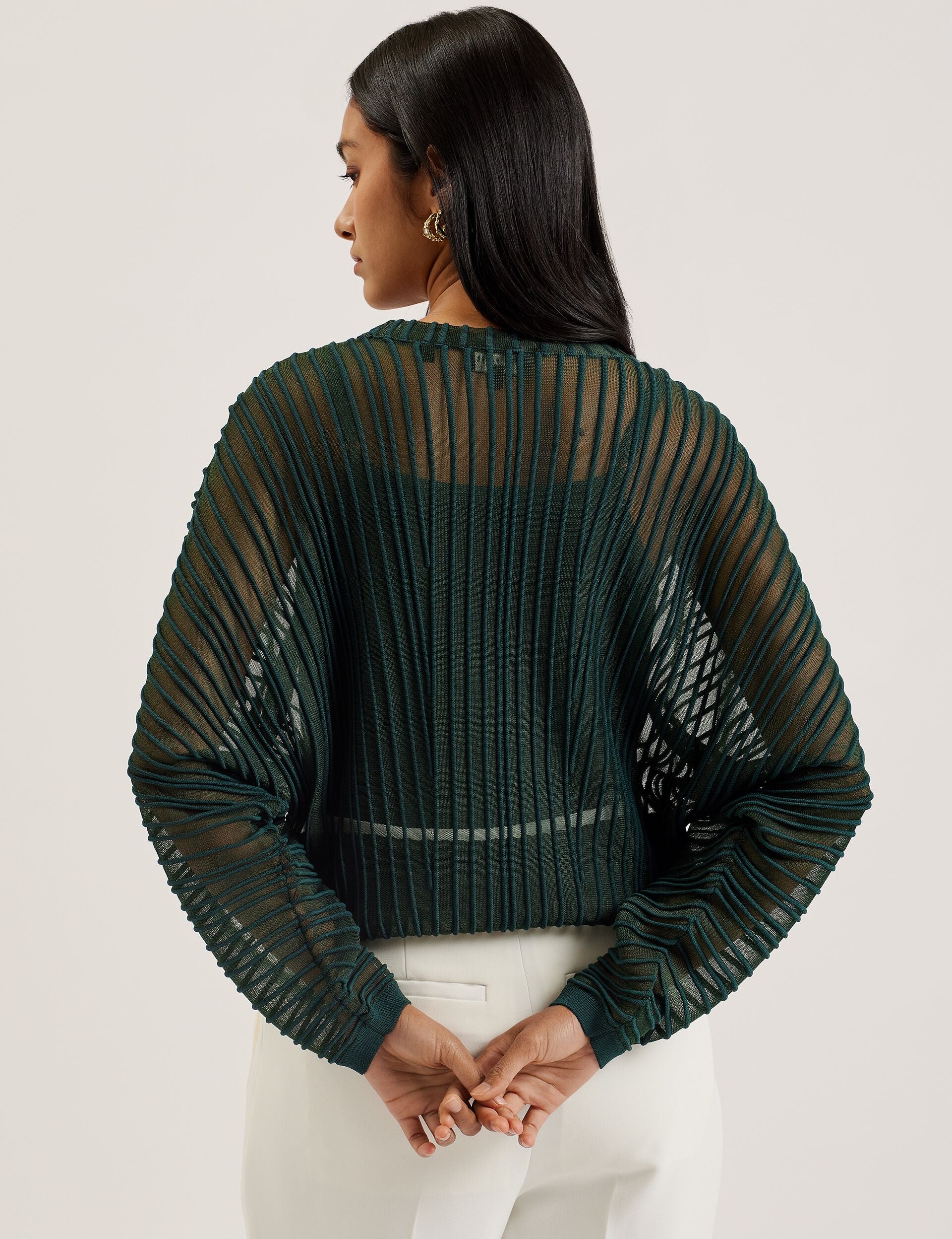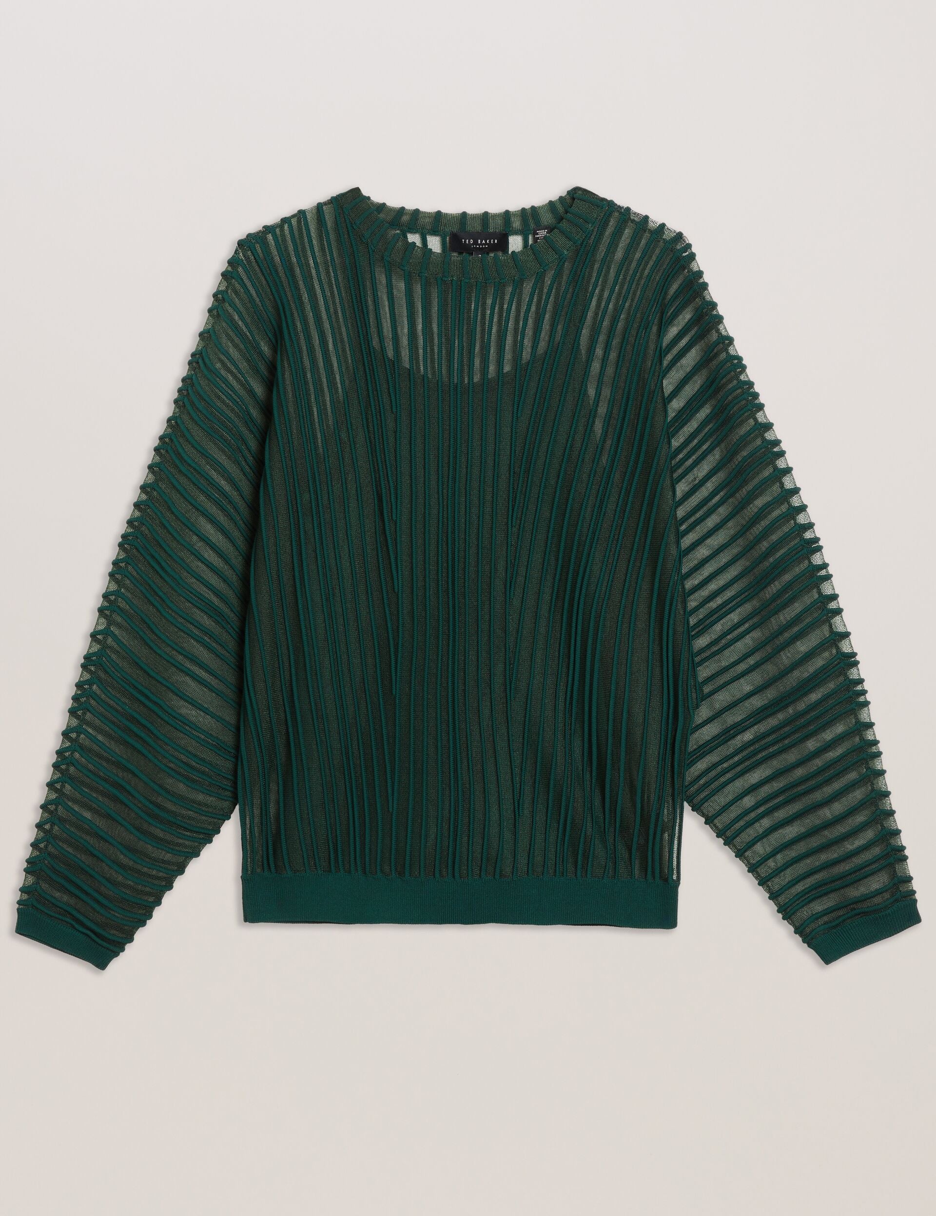 Sheer Textured Stripe Barrel Sleeve Jumper