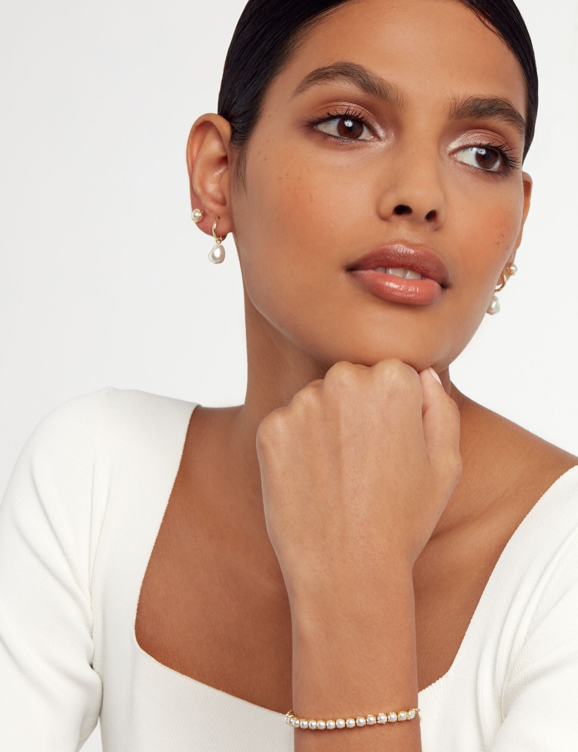 Set with a row of delicate faux pearls, the PERRMEL tennis bracelet is simply elegant. The gold-tone chain can be adjusted in length with the slider fastening to get the perfect fit, making it the ideal piece for layering.