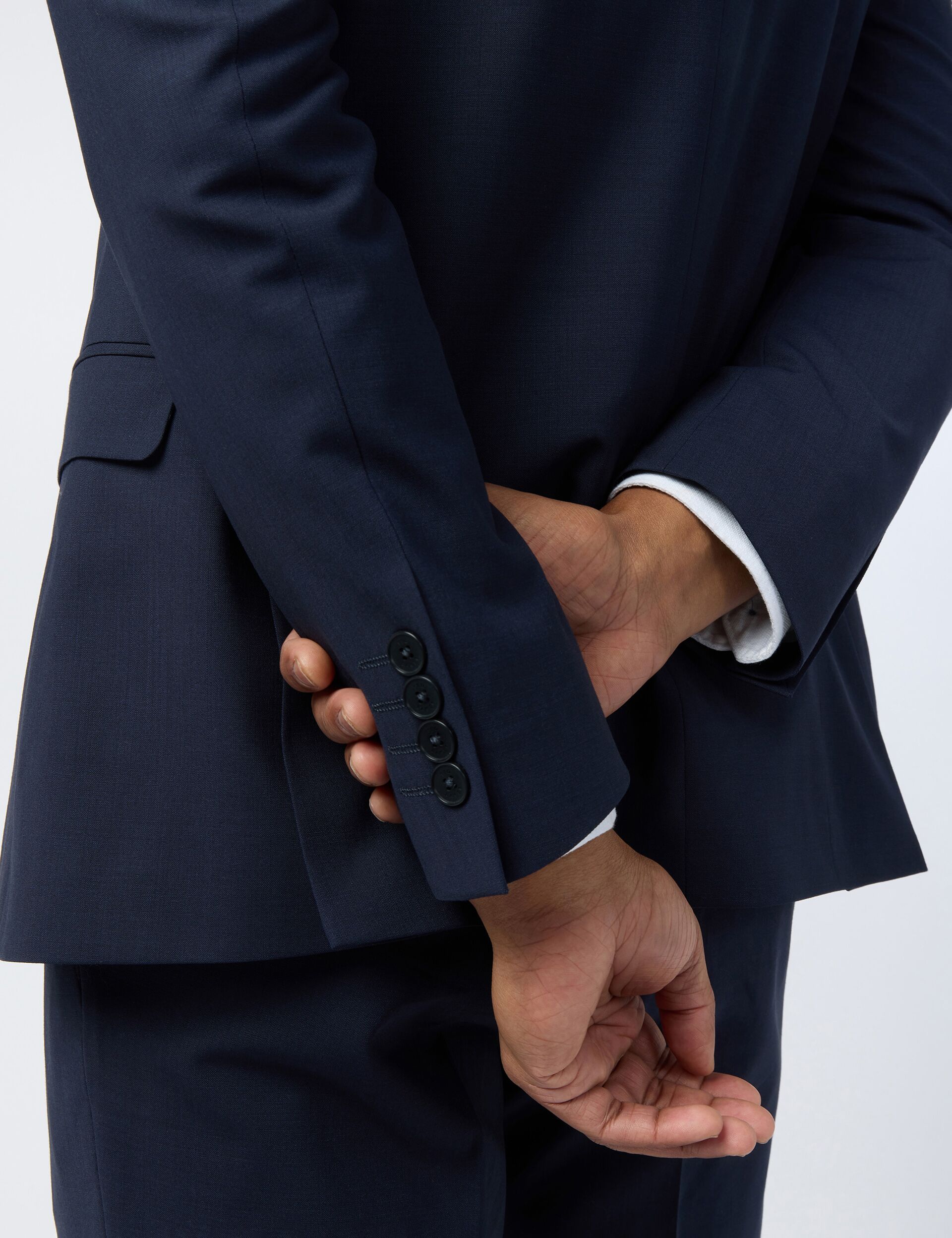 Timeless tailoring that's designed to last - it's the PINDAR navy suit jacket. Cut to a classic slim fit, it's crafted from a high-performance wool blend with a comfortable stretch finish, as well as being water and stain resistant. For the fancier occasions, pull the signature jacquard lining out of the chest pocket for an instant pocket square.