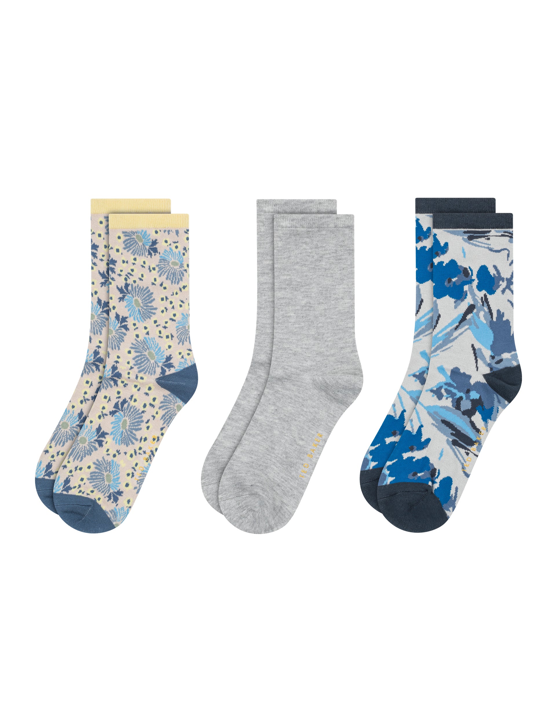 3 Pack Mixed Floral Rayon Crew Socks