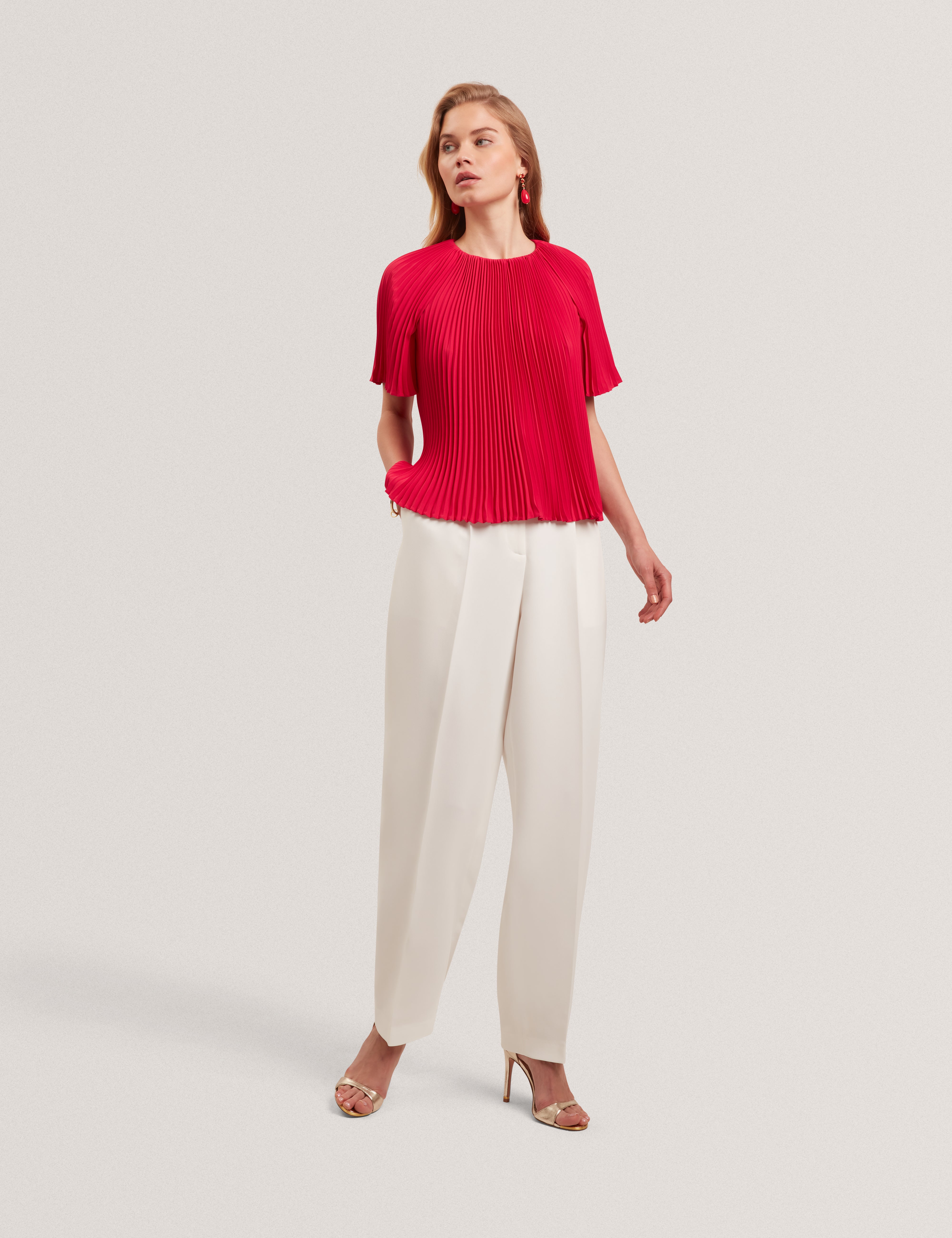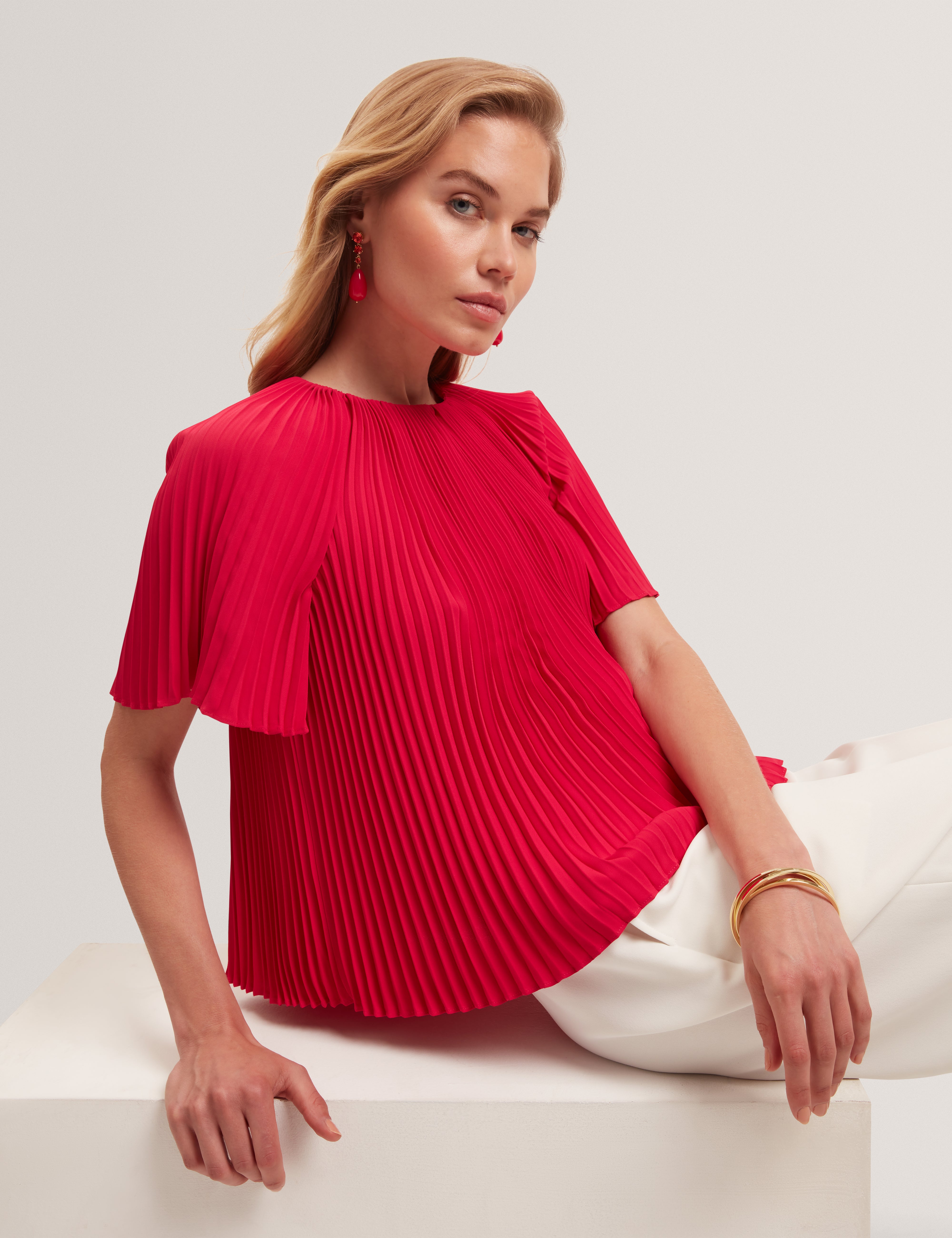 With its flowy shape and all-over pleating, this AGARA short sleeve blouse delivers the drama with a serving of movement and texture. Style it smarter with tailored trousers, or dress her down with a pair of jeans.