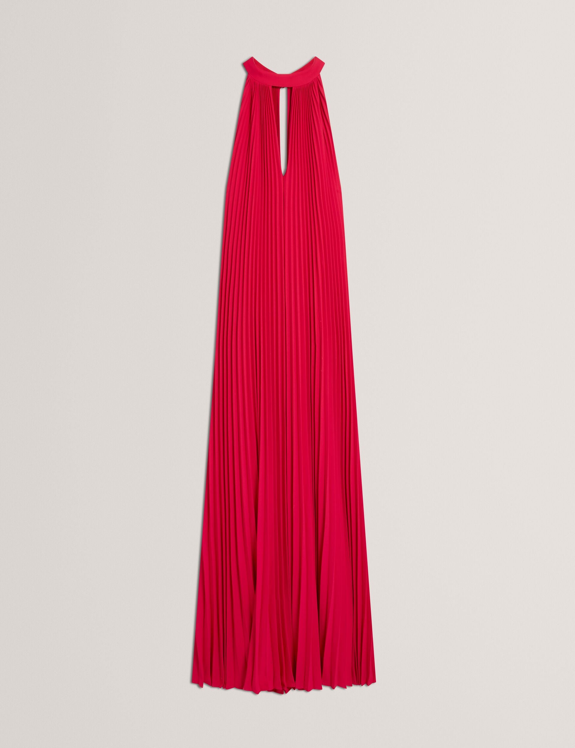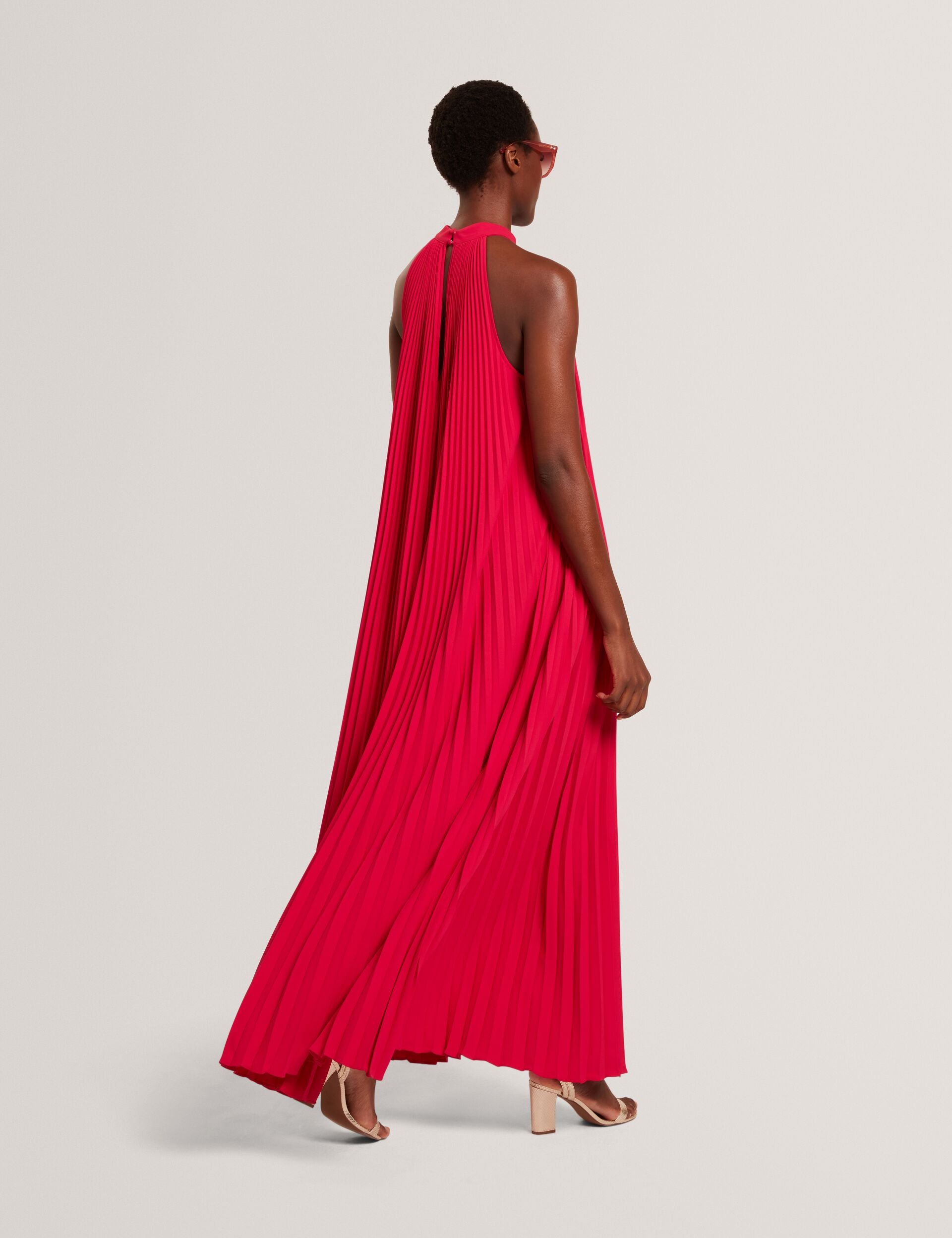 Halter Neck Pleated Flowy Maxi Dress