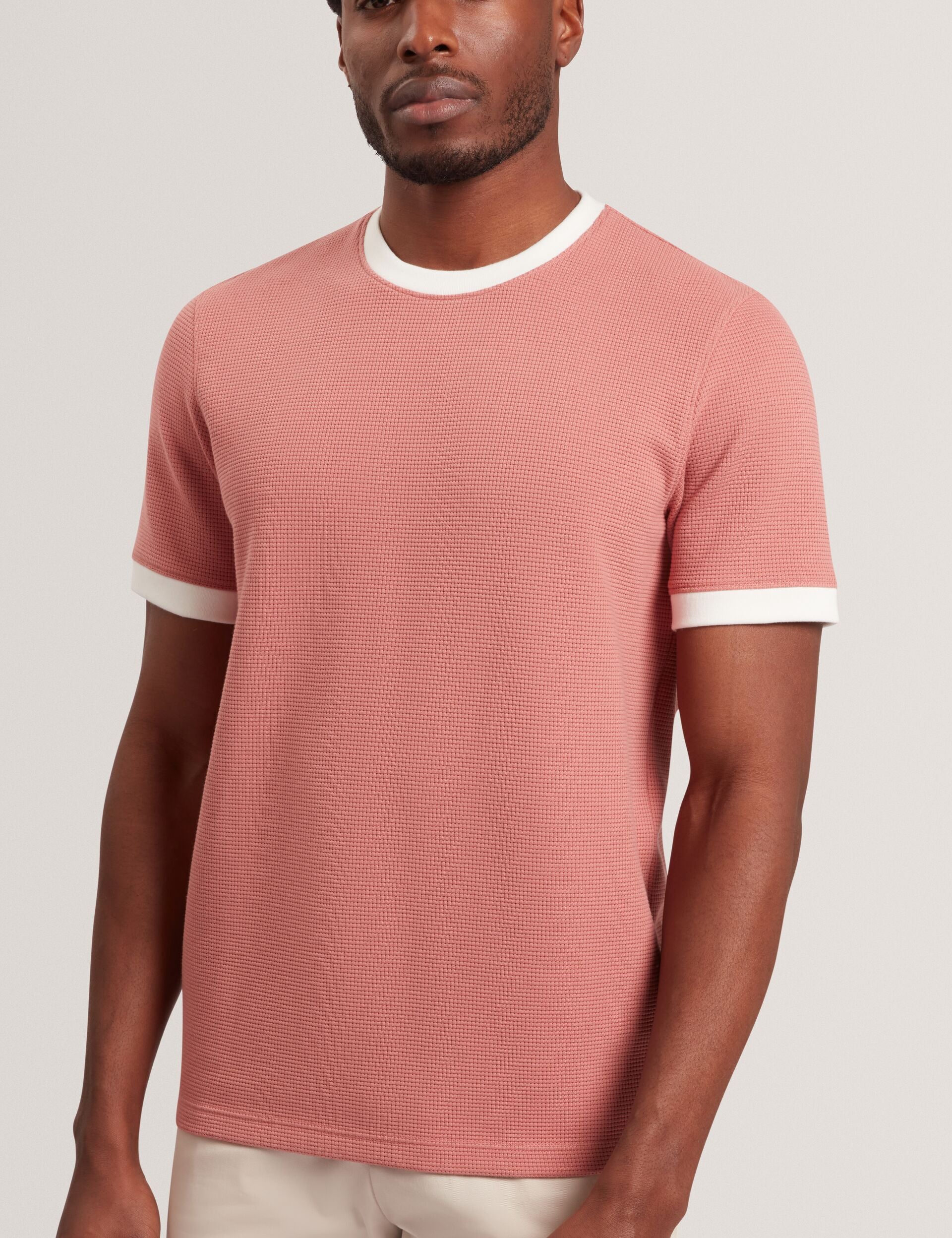 Waffle Knit Contrast Trim T-Shirt