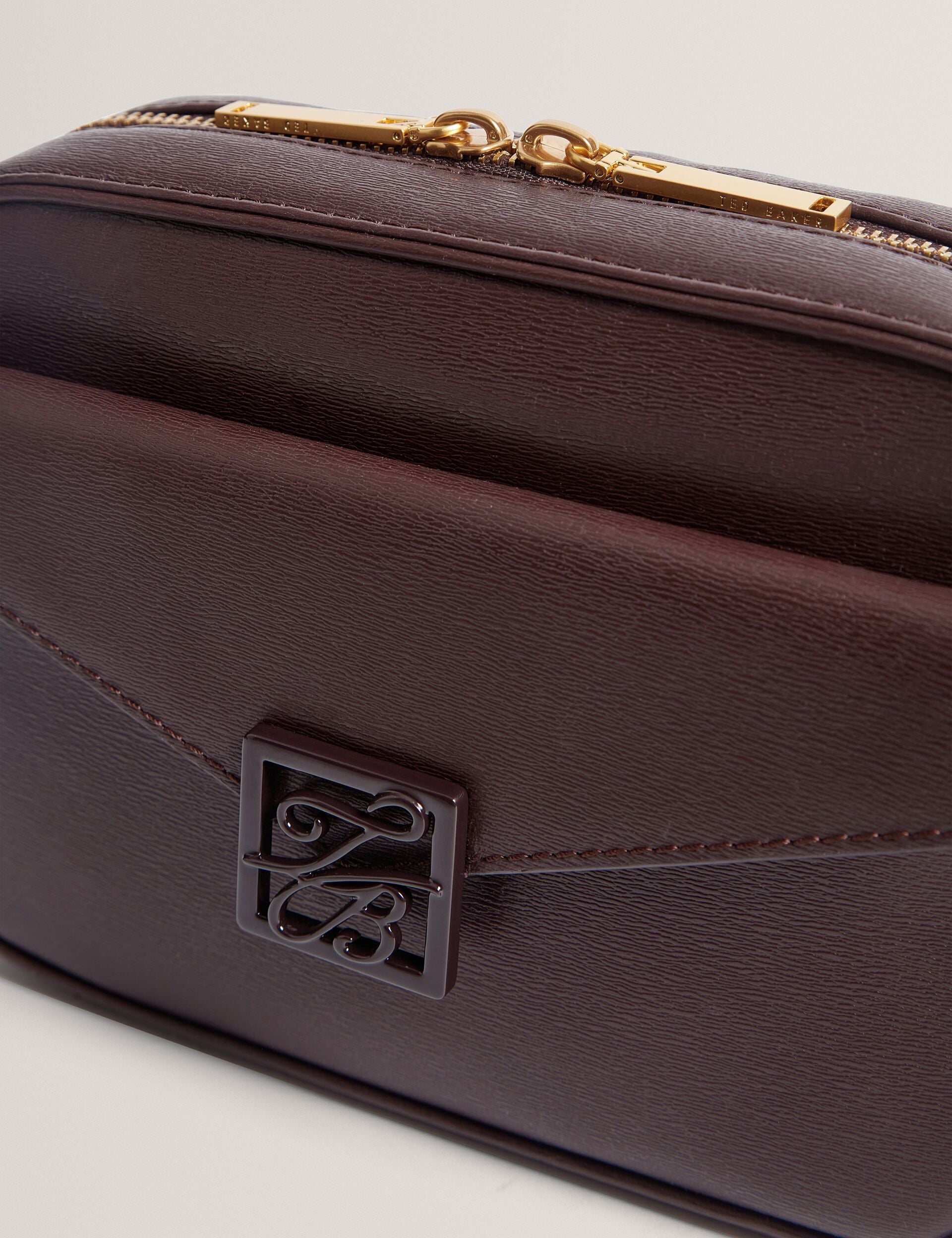 Accessorise with the shade of the season. Crafted from embossed textured leather in a deep wine hue, the ANIHLI small camera bag is chic and versatile thanks to the removable crossbody strap. Finished with a TB hardware logo and envelope front pocket, it’s the perfect blend of form and function.