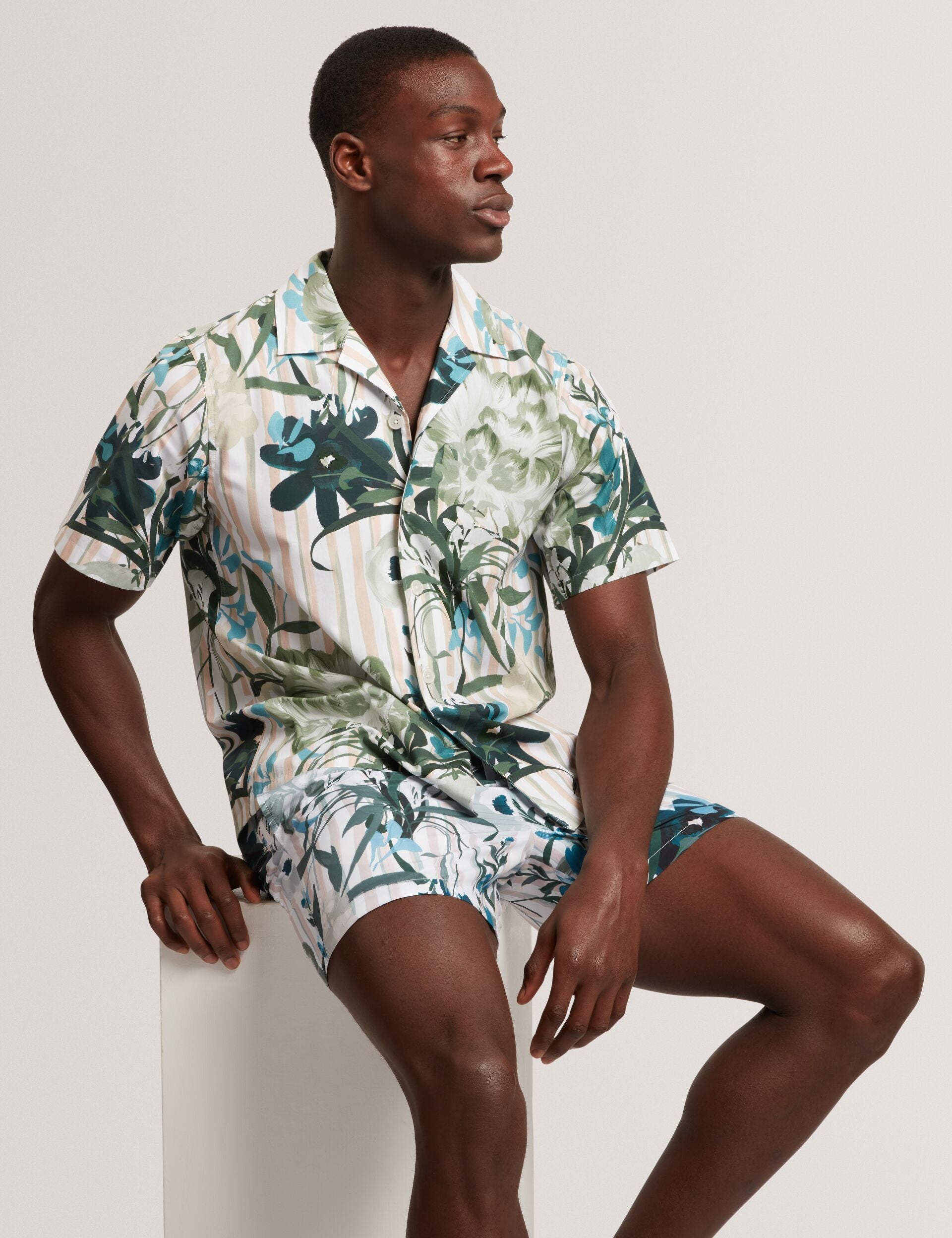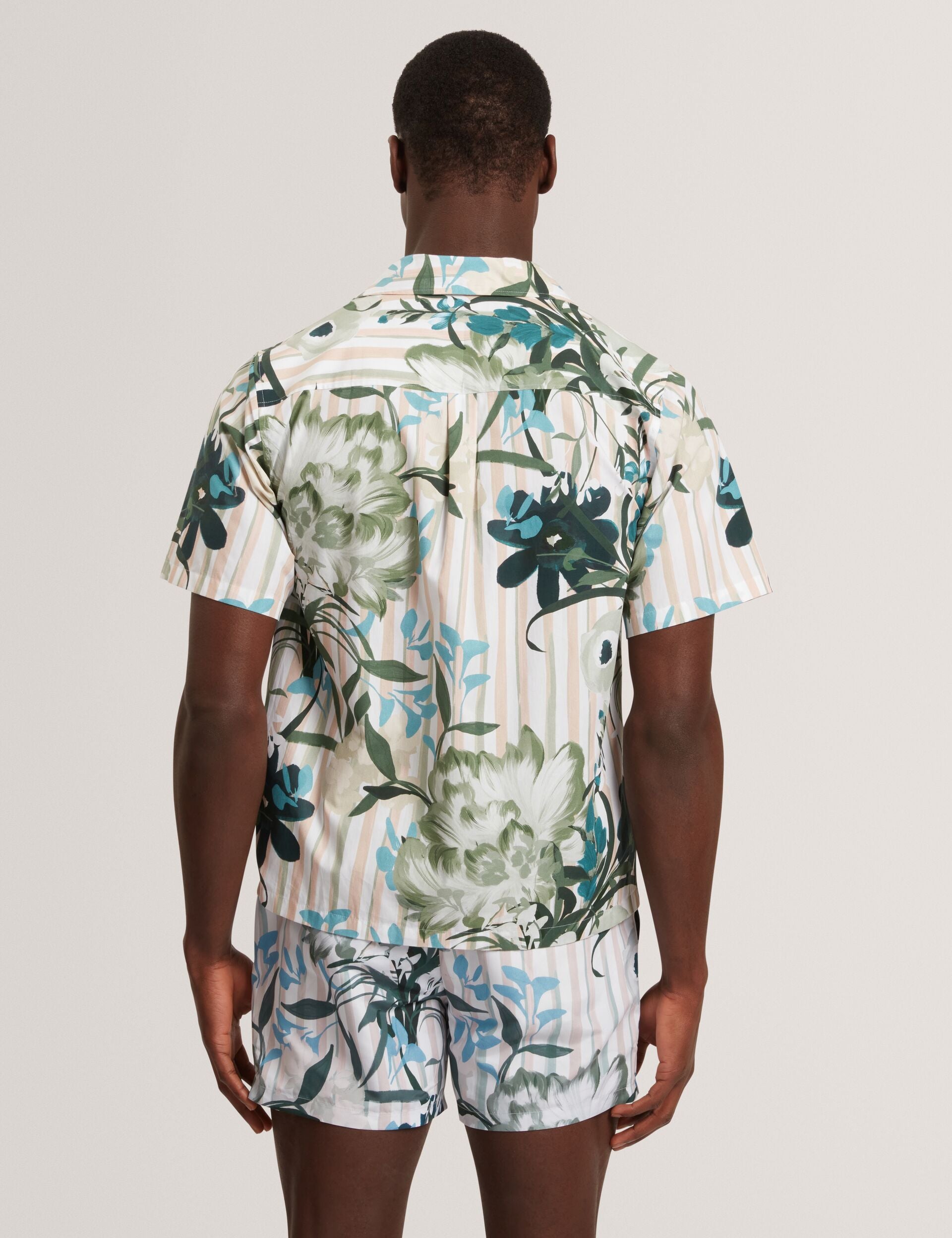The ANUKIS short sleeve shirt channels that resort feeling, mixing natural botanicals and nautical stripes into a single statement print. Made from breathable cotton, its relaxed fit and open neck collar feel instantly laid back.