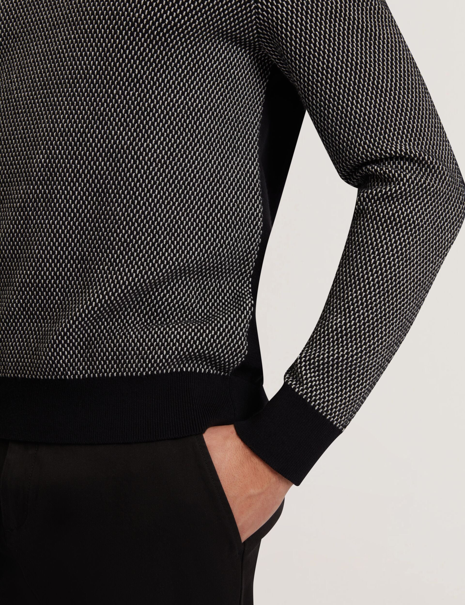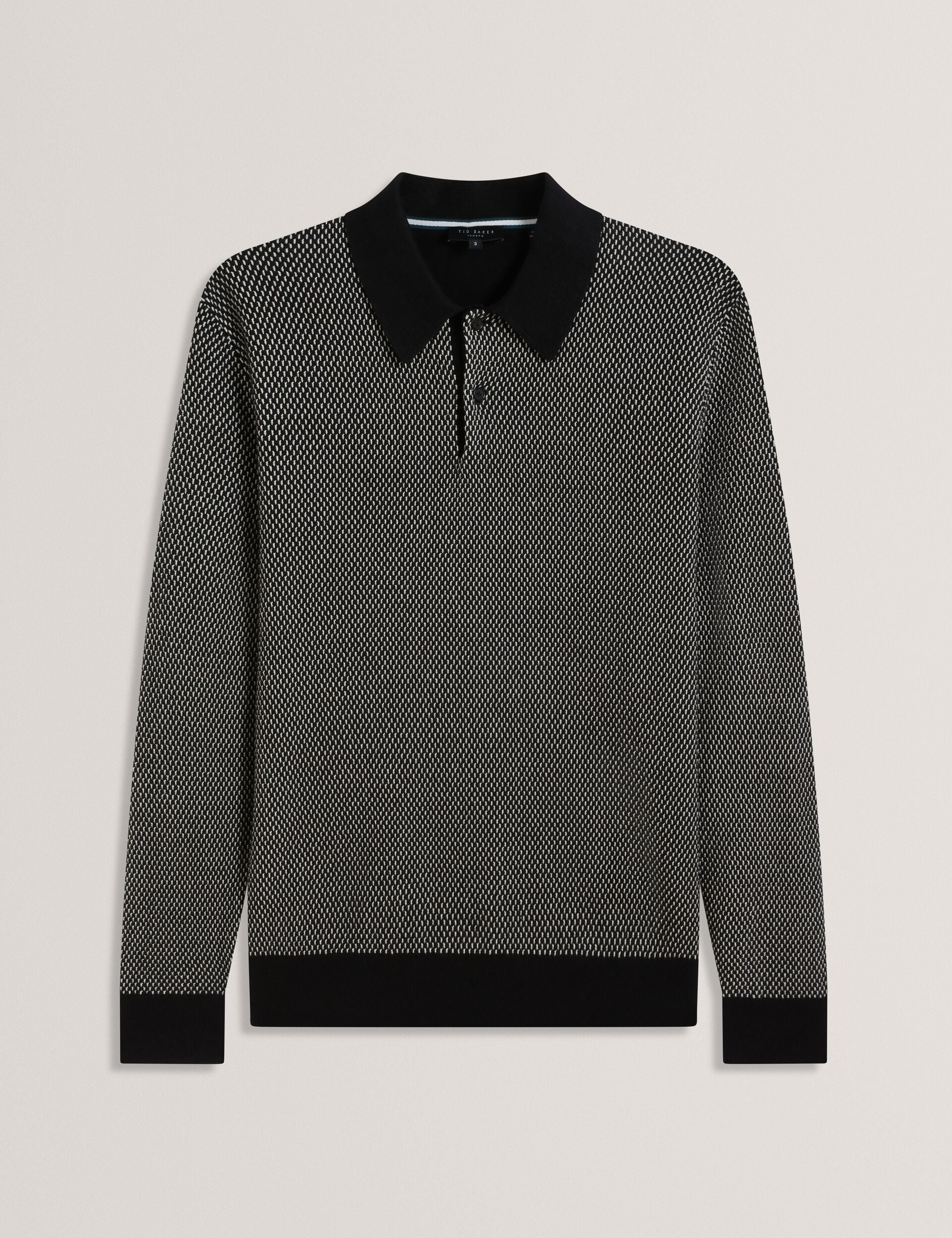 Textured Front Knitted Long Sleeve Polo Shirt