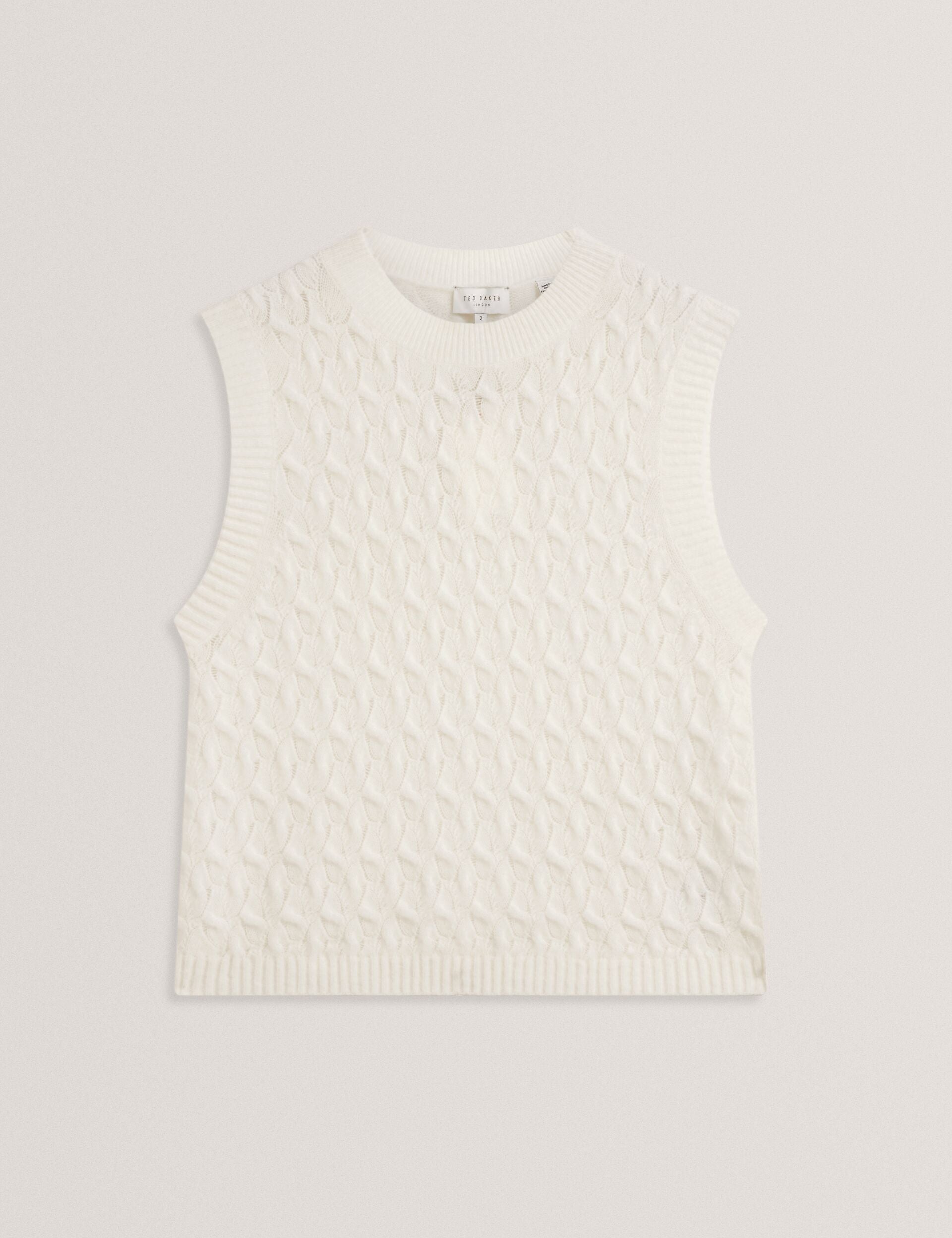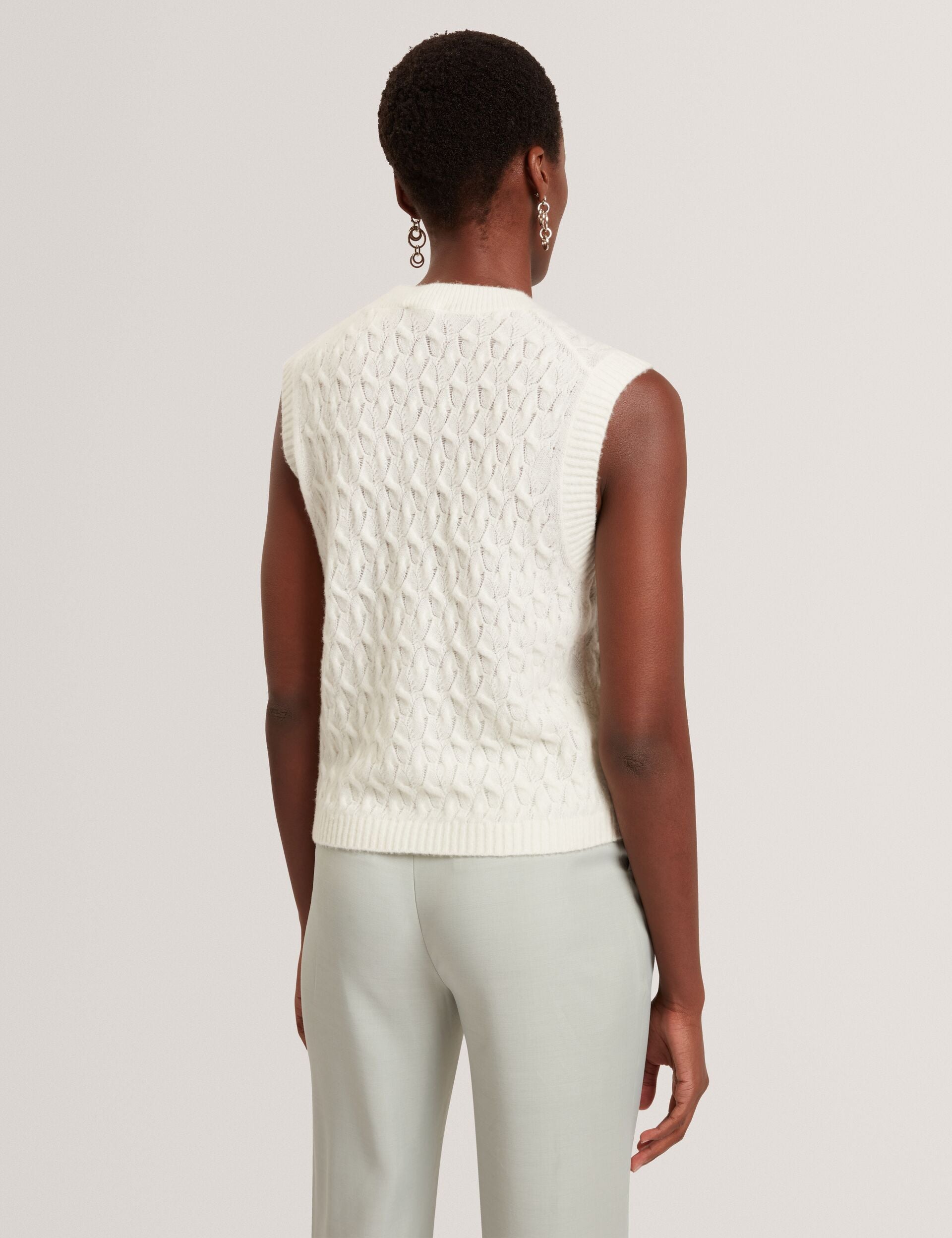 Layers are key to your seasonal style, and the AYNIRA knit vest does it with versatility. Its super soft wool blend features a delicate cable knit design that brings texture and warmth to any look - try it with tailored trousers or layer over a slip dress.