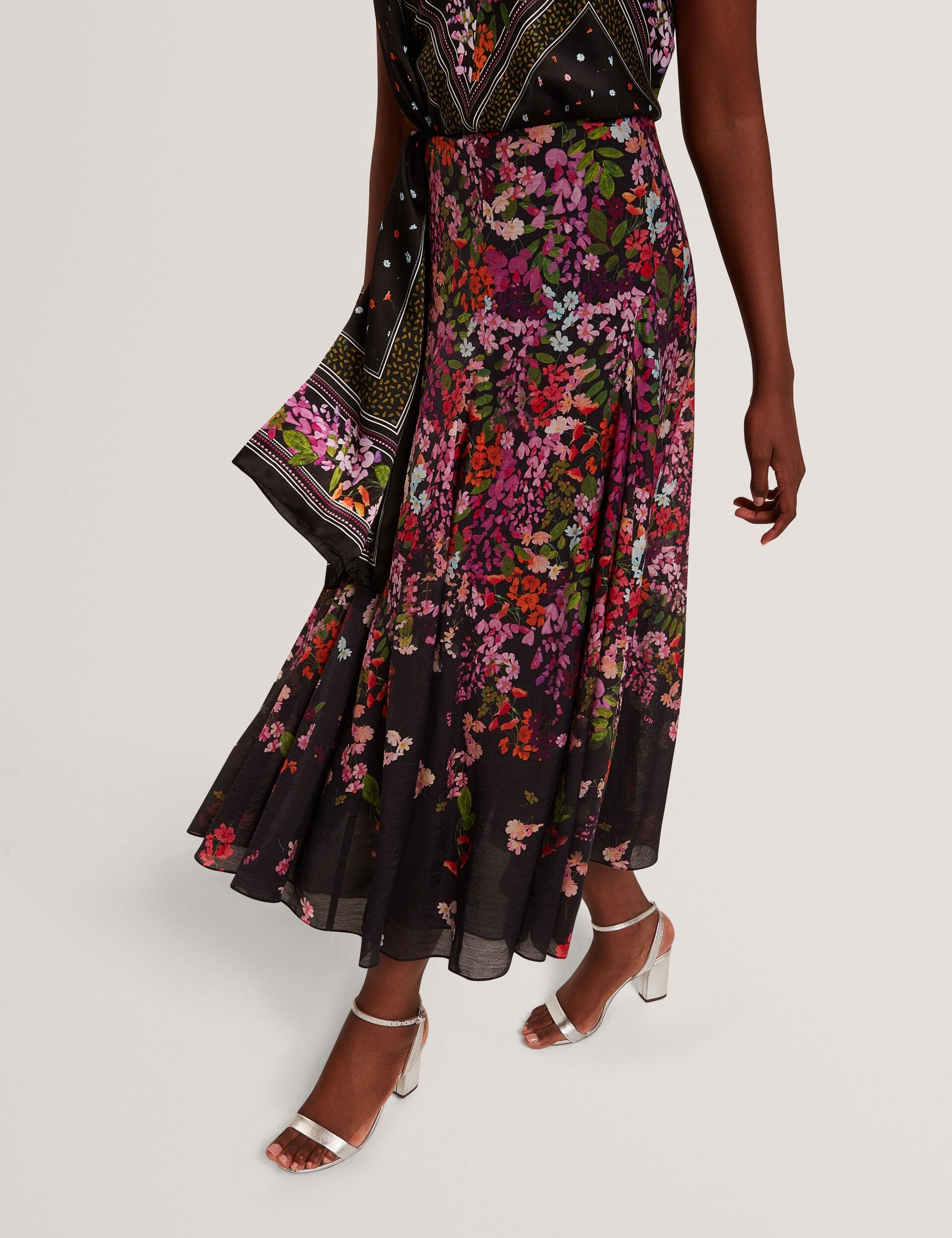 - Cascading floral print