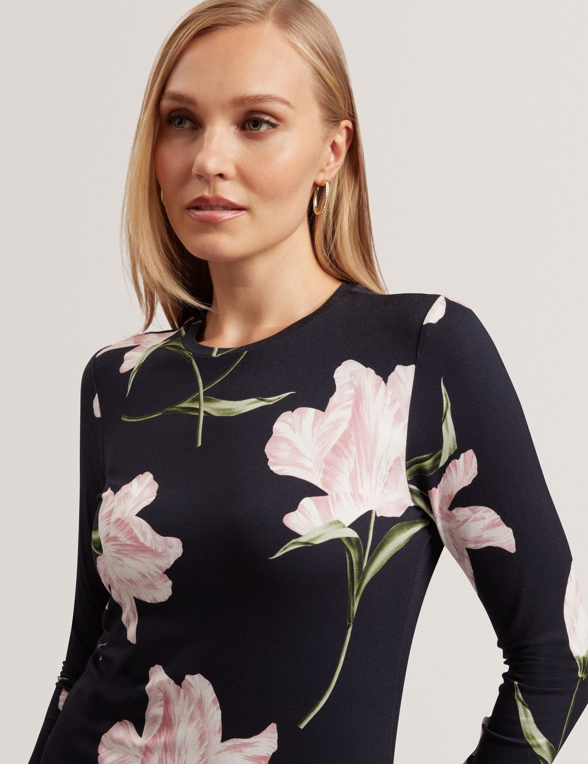 Simple but sweet, the BAAFNEE long sleeve mini dress is crafted from a soft jersey fabric with a detailed tulip floral print. The fitted silhouette instantly flatters, with a touch of stretch for comfort.