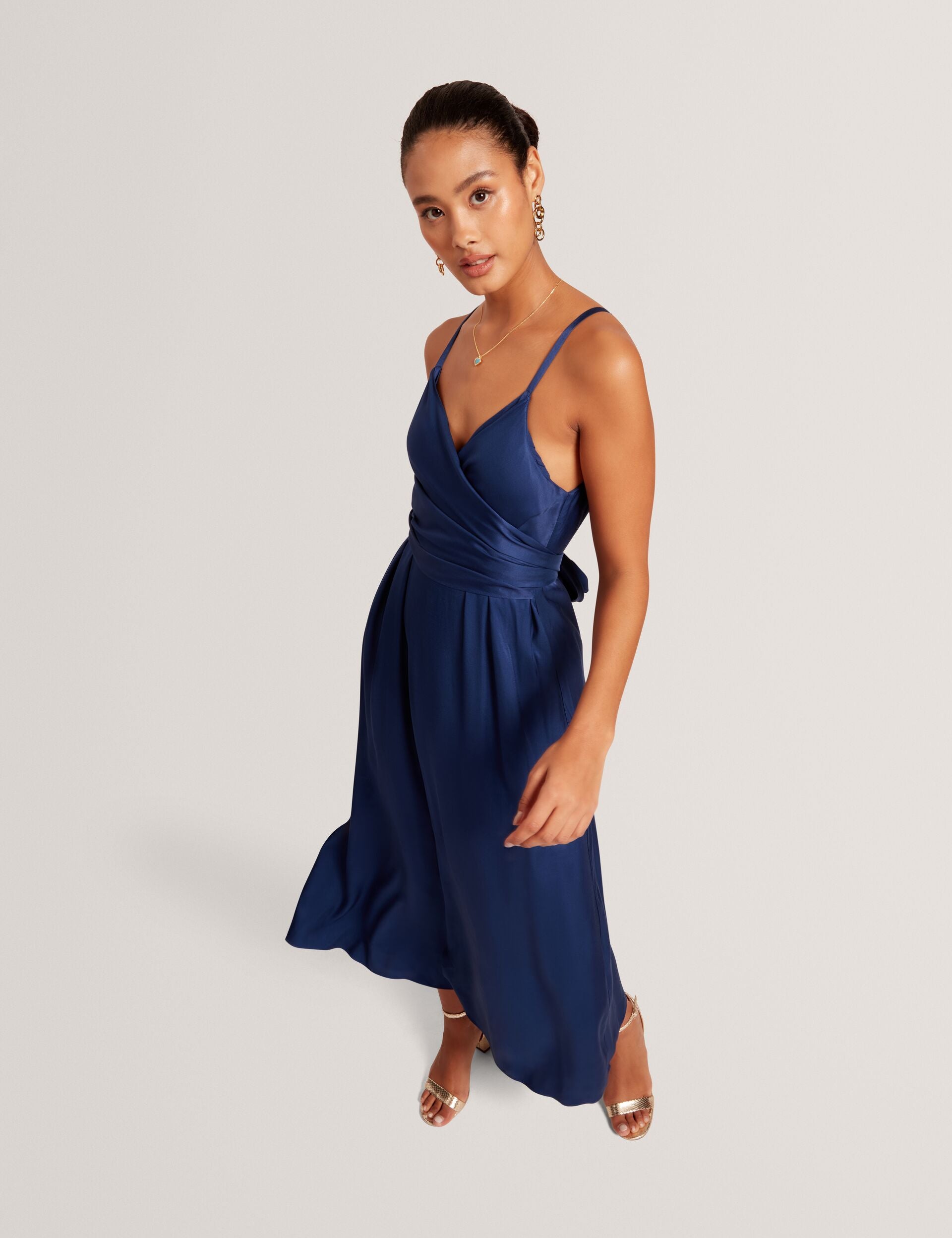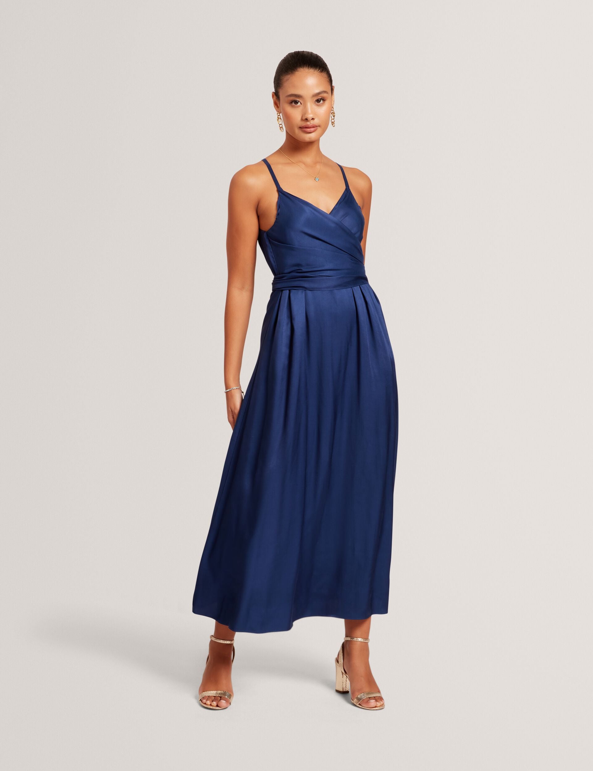 Wrap Tie Waist Strappy Midi Dress