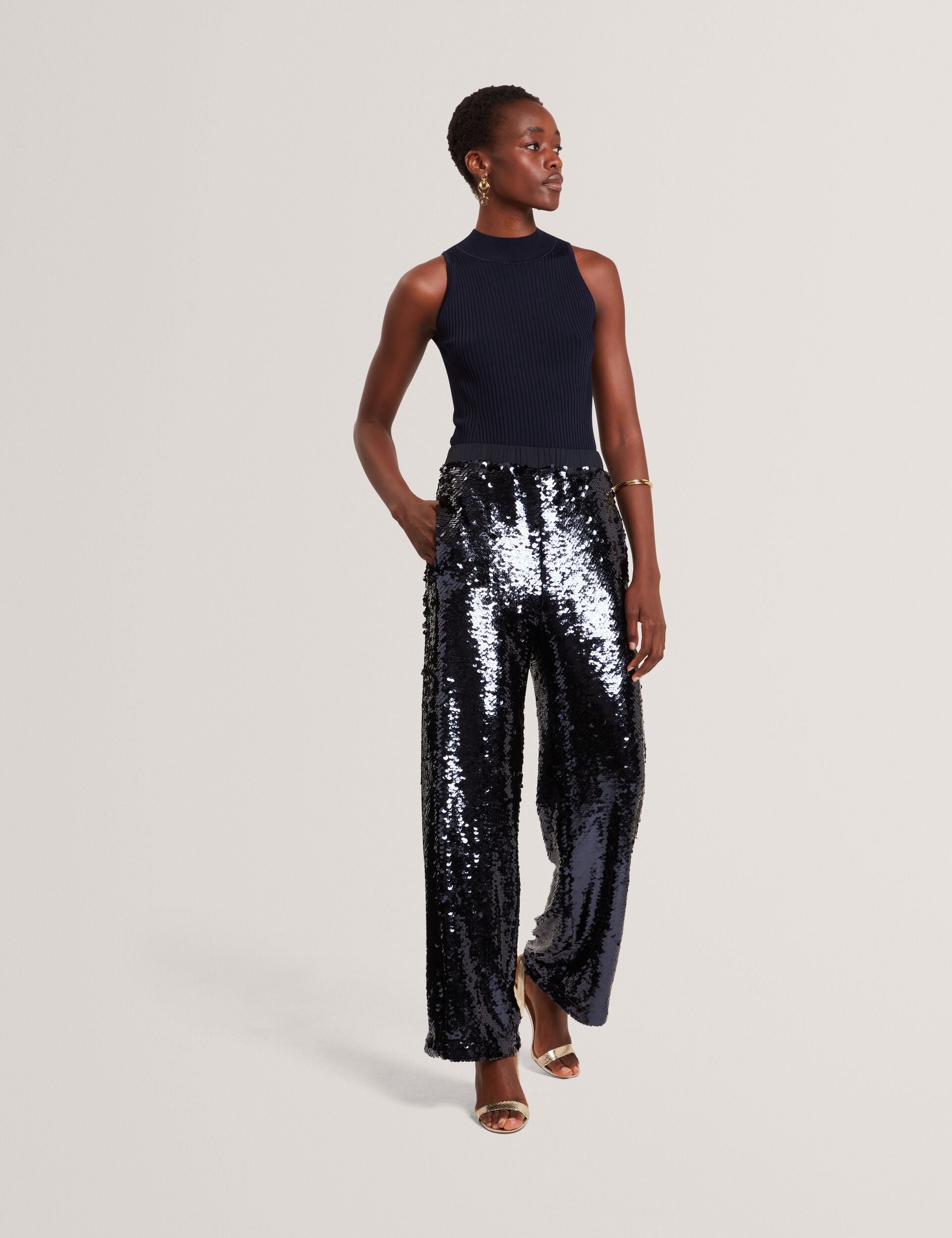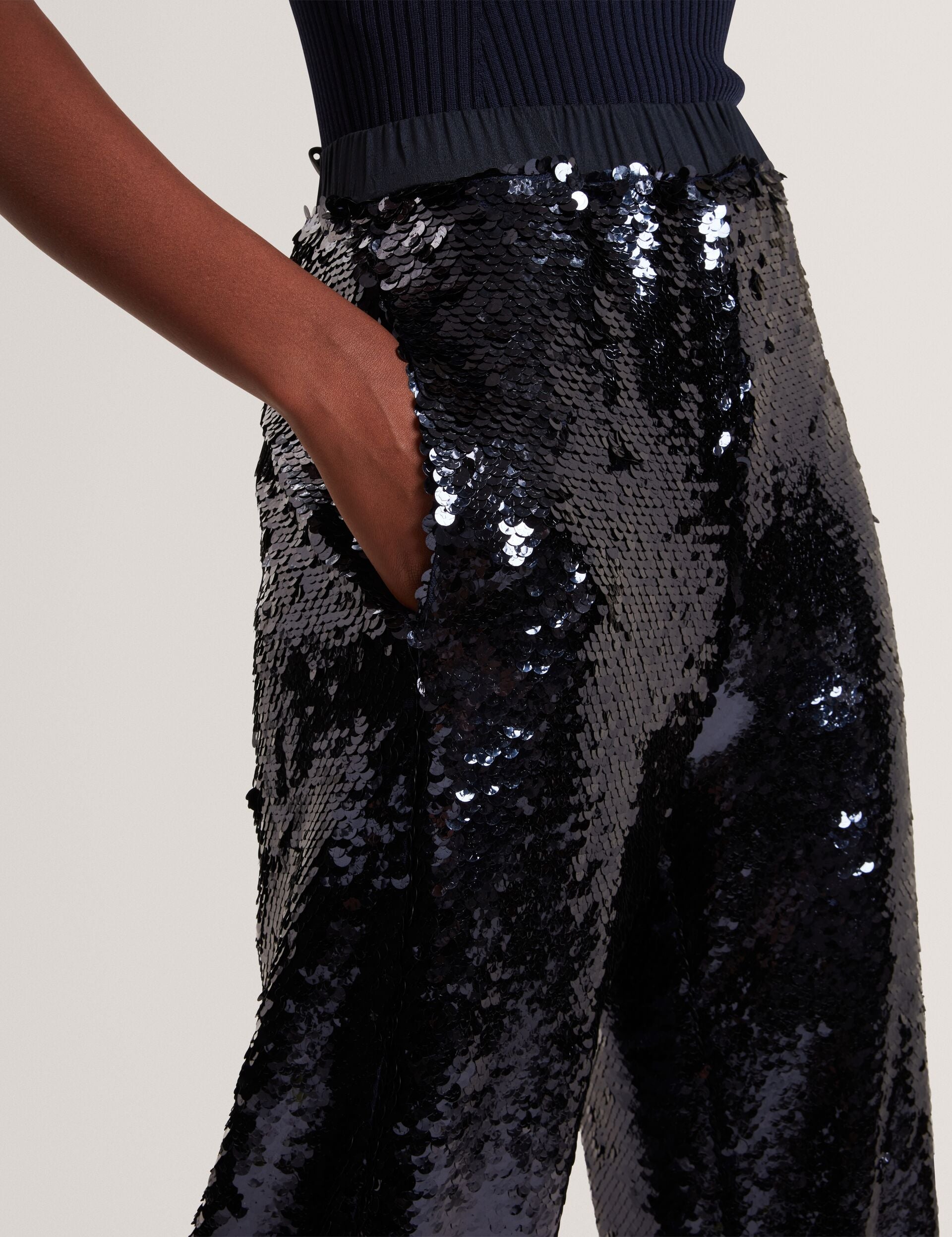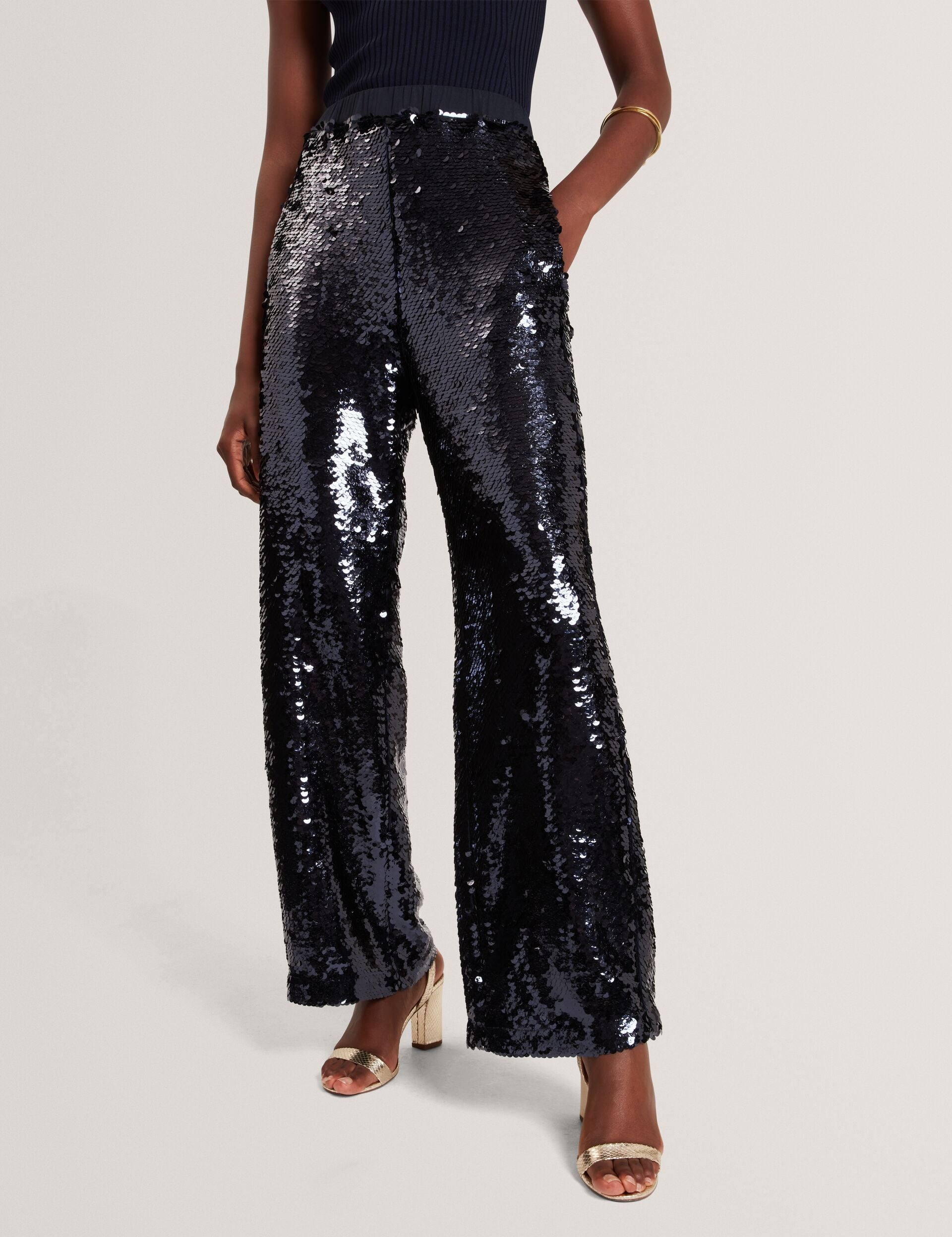 Sequin Pull-On Wide Leg Trousers