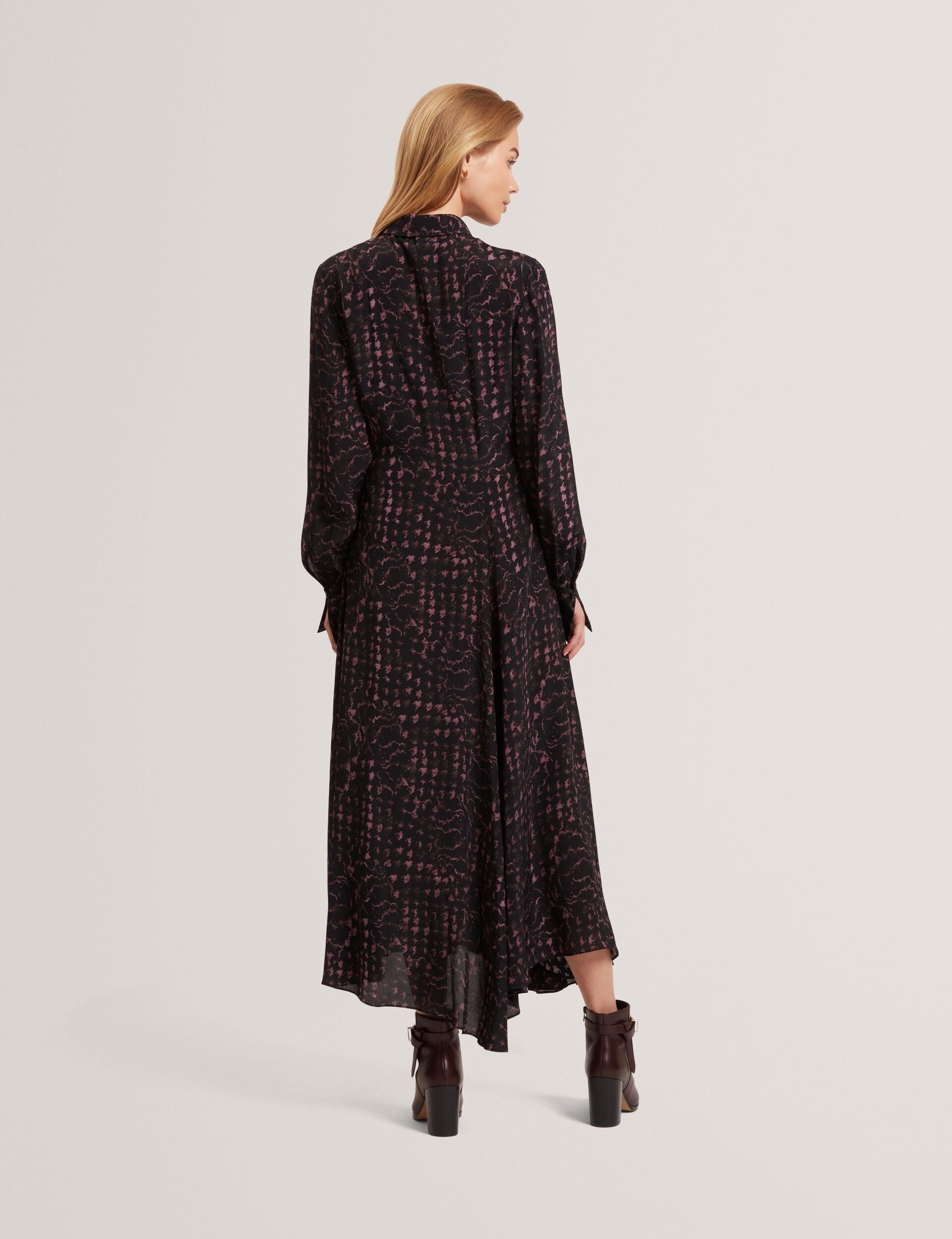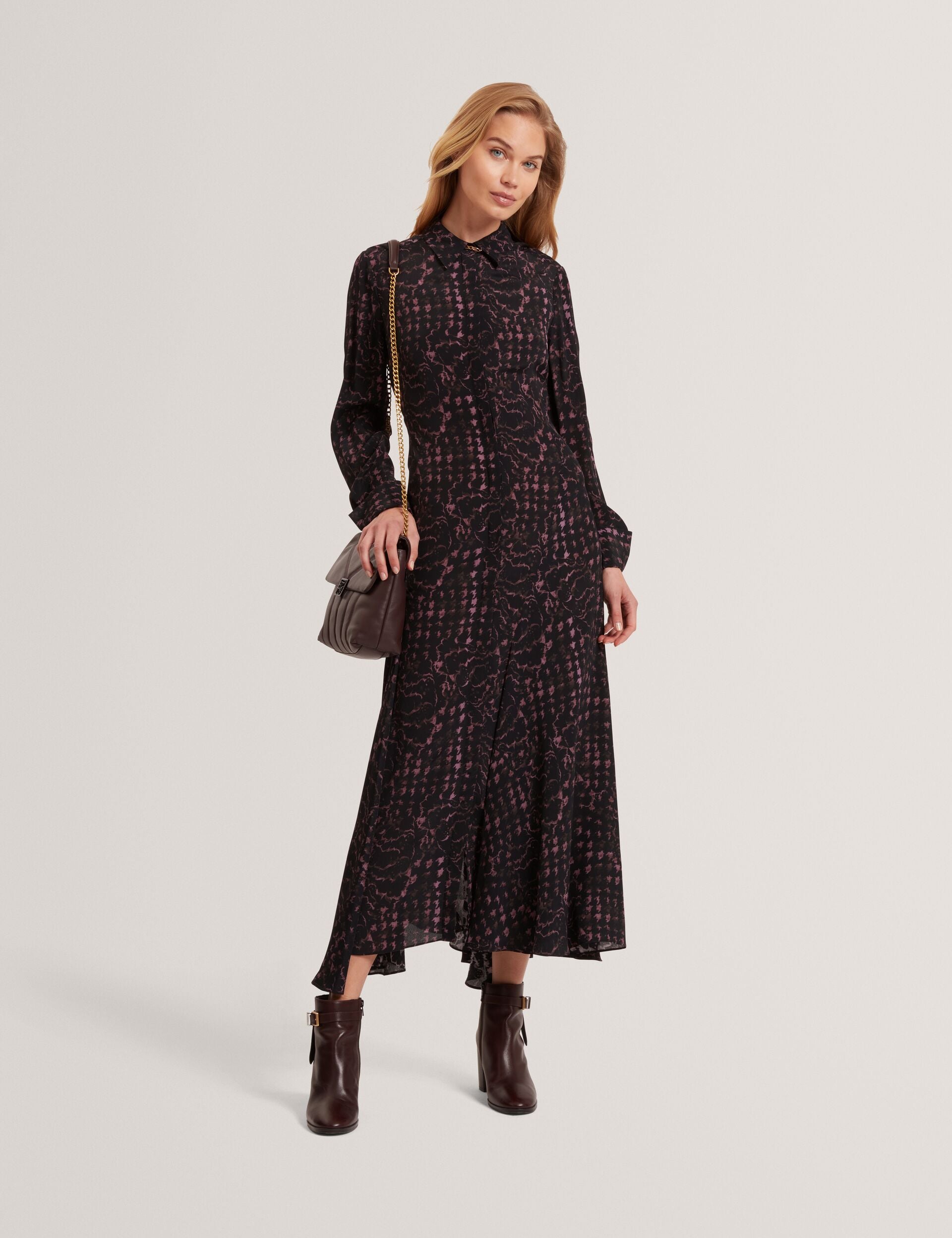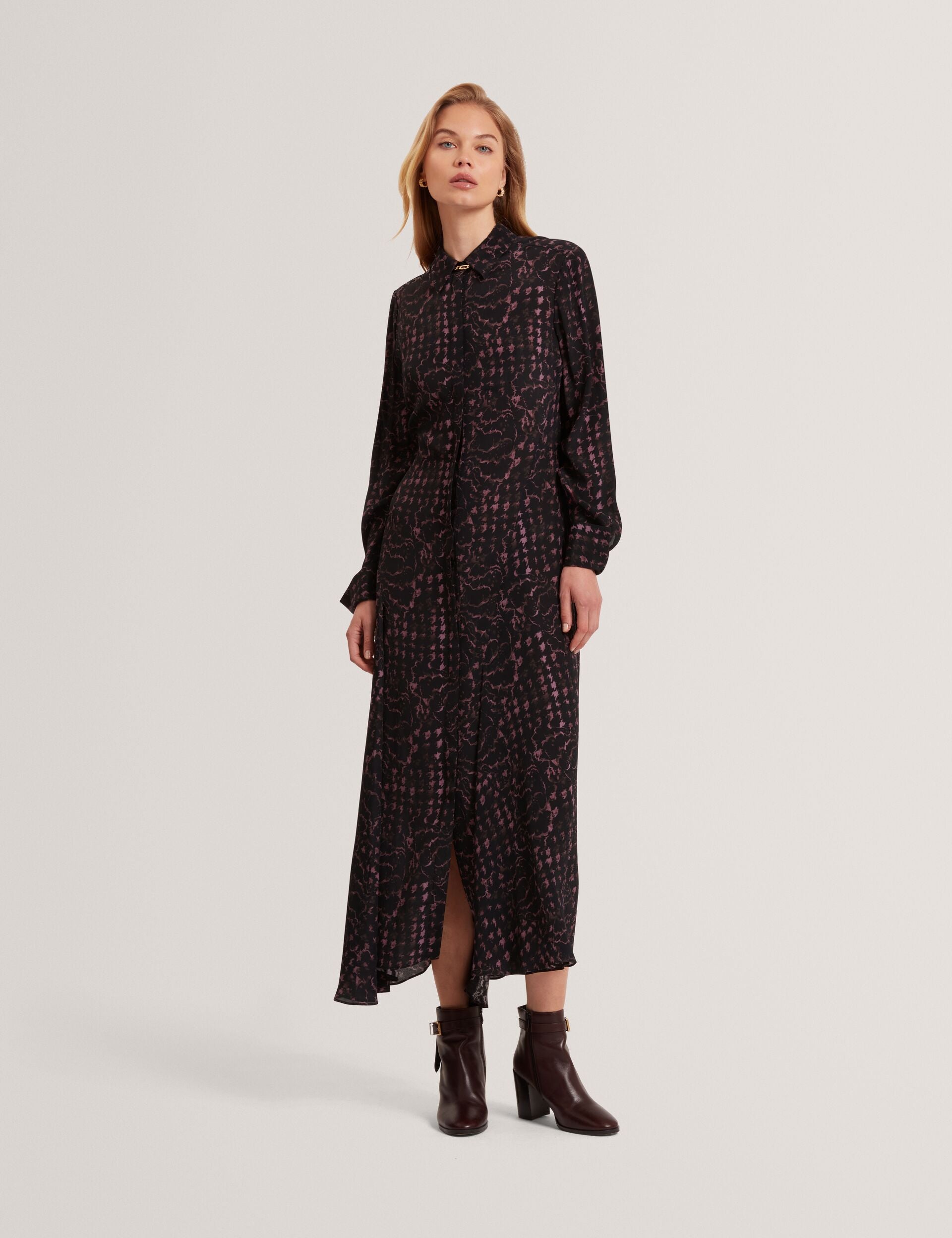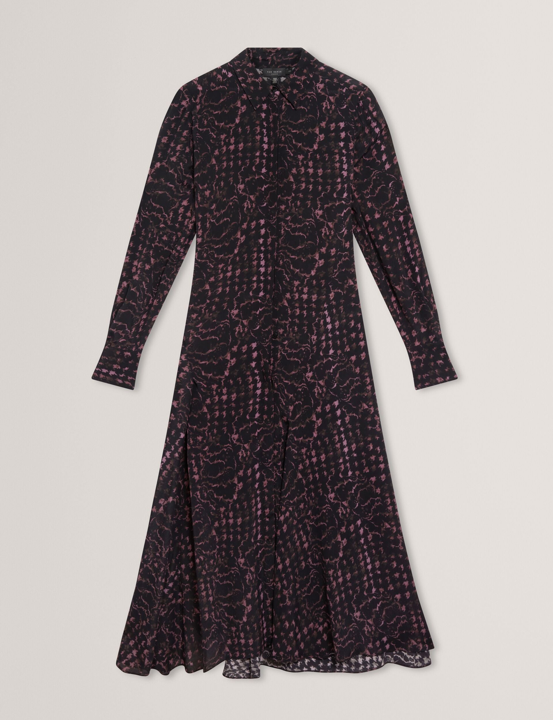 The BISCAYA shirt dress is the statement that stands on its own. Our floral check print in a modern pink hue exudes modern femininity, complemented by the flow of the midi length skirt that falls to an asymmetric waterfall hemline.