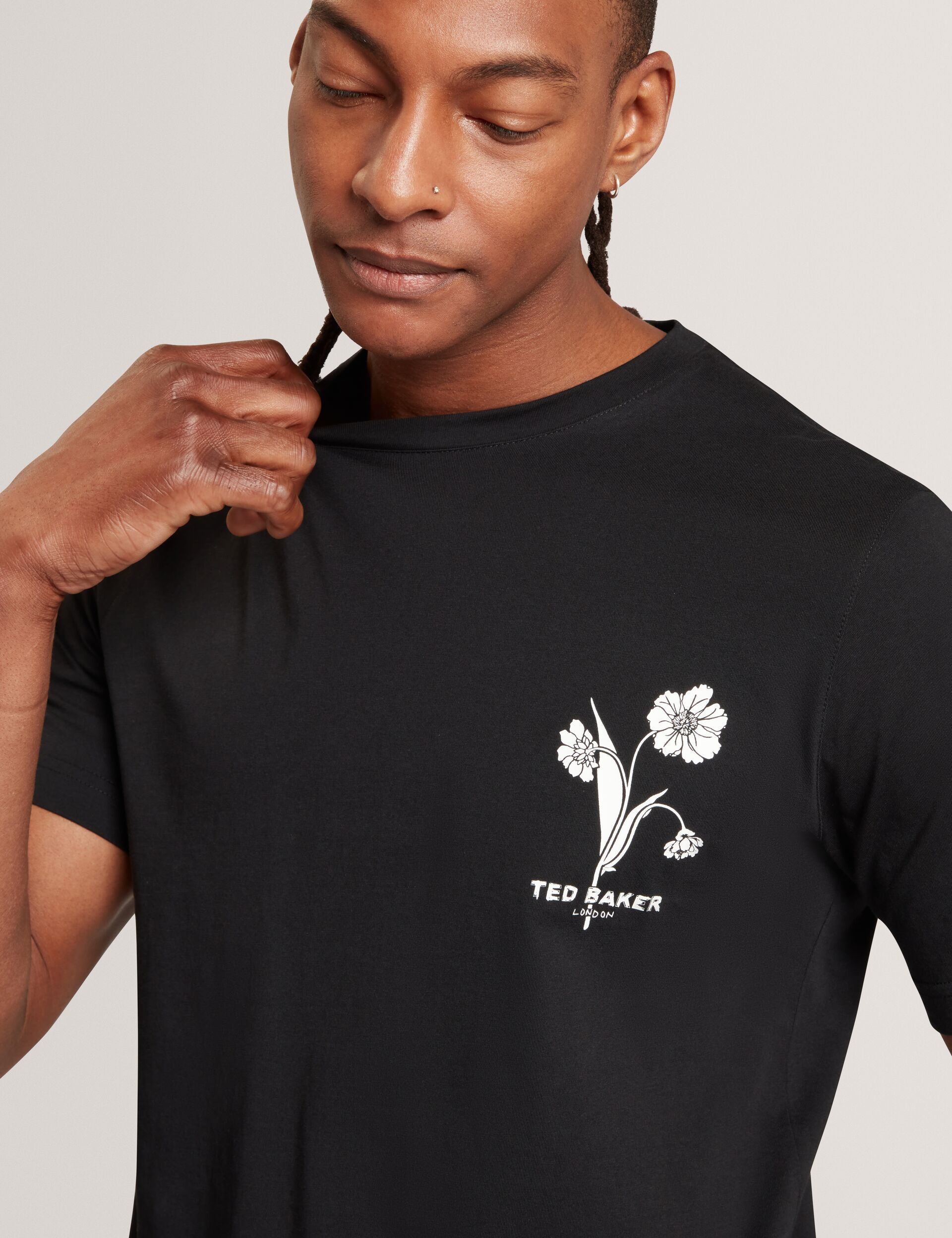 - Floral silhouette chest graphic