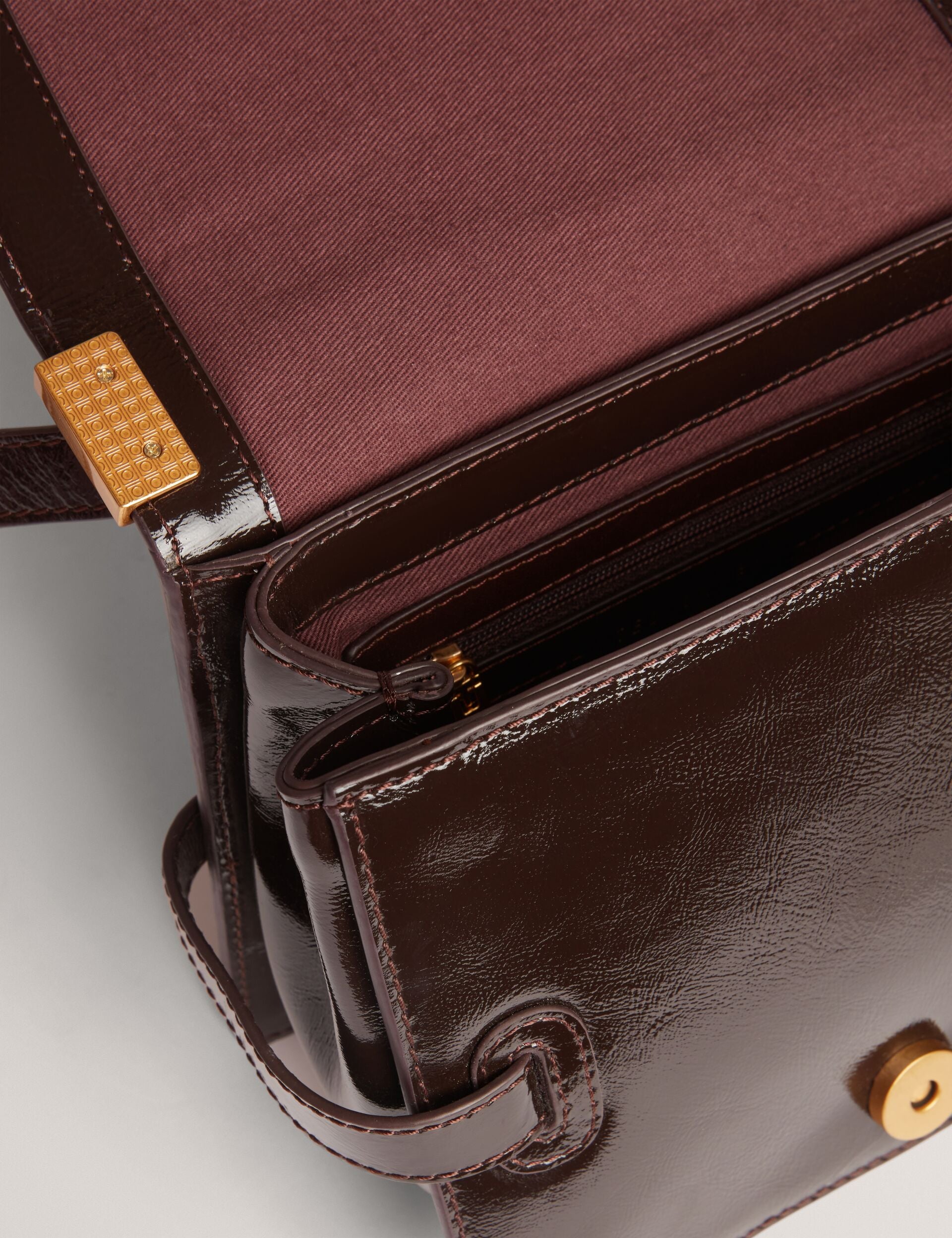 Glossy and sophisicated, CCAMIL is crafted from 100% leather with a crinkle patent finish that catches the light and attention. Featuring an adjustable strap that can be worn crossbody or doubled up to sport on your shoulder, this sleek bag is the ultimate in versatile style.