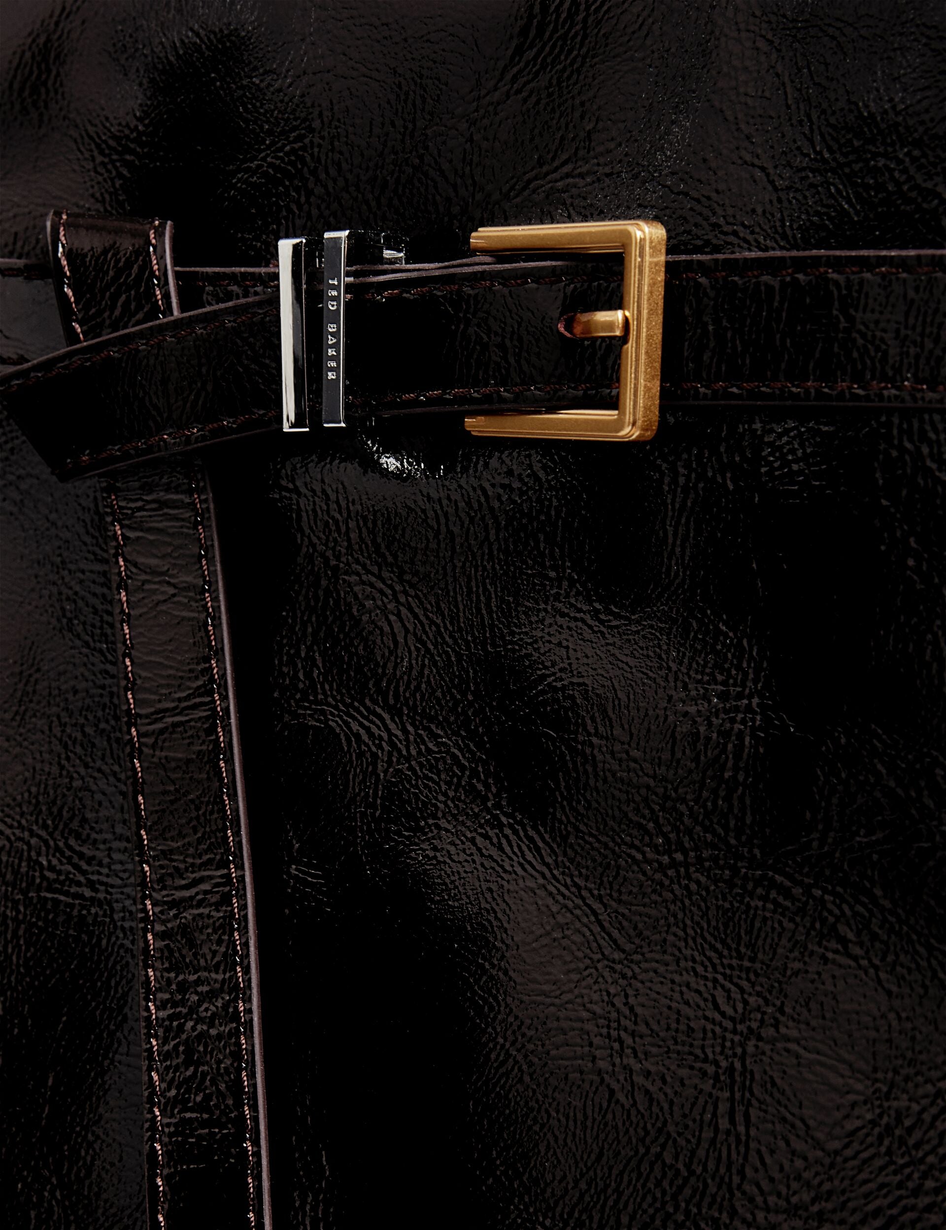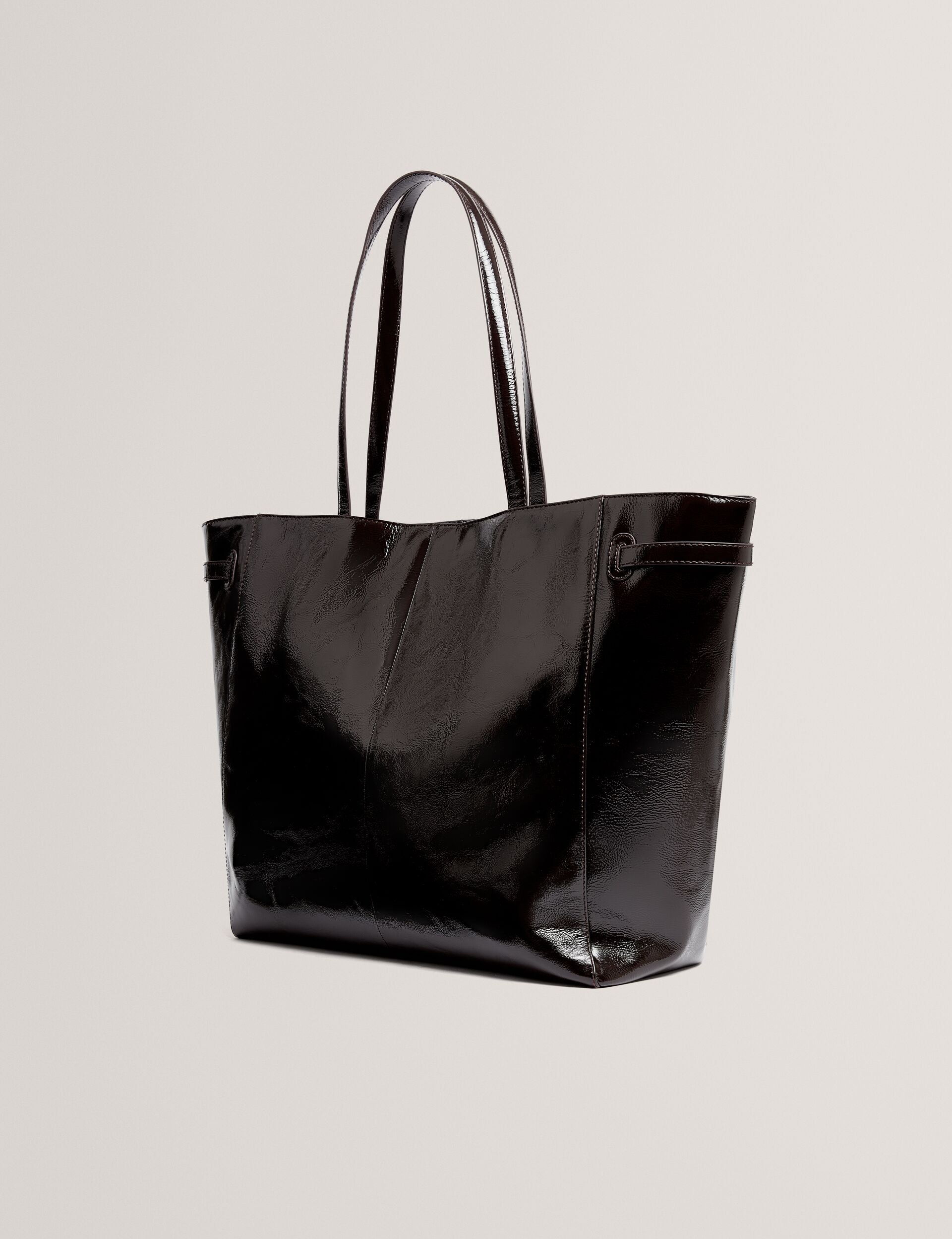 Power dressing, in bag form. CCARMEN makes a statement with glossy crinkled patent leather and a sleek belted detail that means business. Spacious enough for your essentials (and then some), it’s finished with structured handles and a sophicated shopper silhouette that takes you from desk to dinner.
