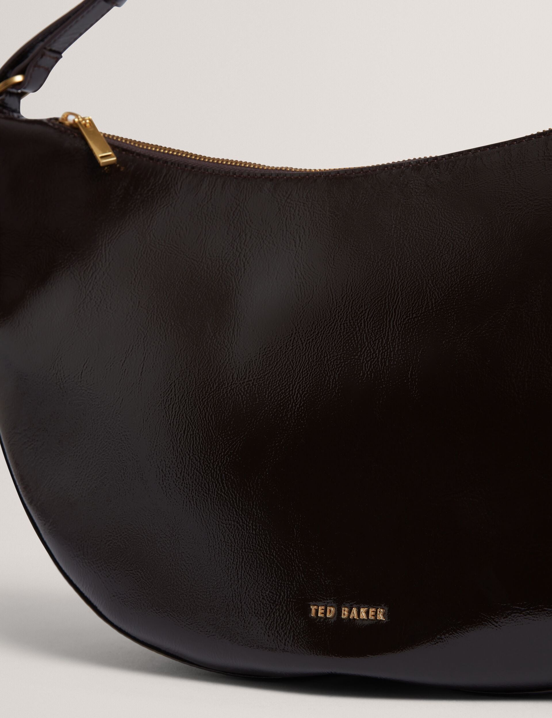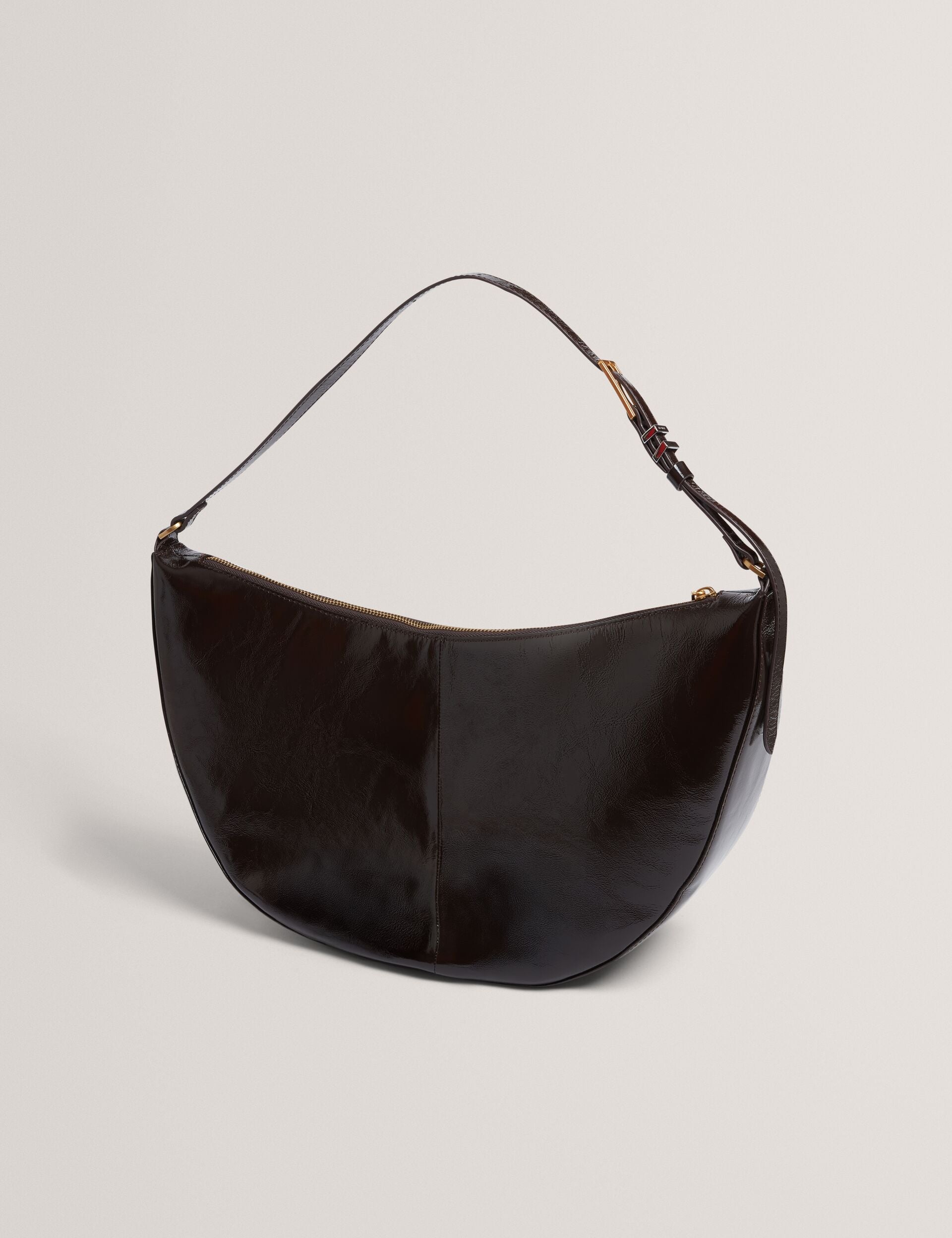 Modern structure meets serious shine with the CCLEO shoulder bag, crafted in a sleek half-moon shape from crinkled texture patent leather. Designed with an adjustable belted strap, it's the elegant carry-all you need for day-to-night dressing done right.