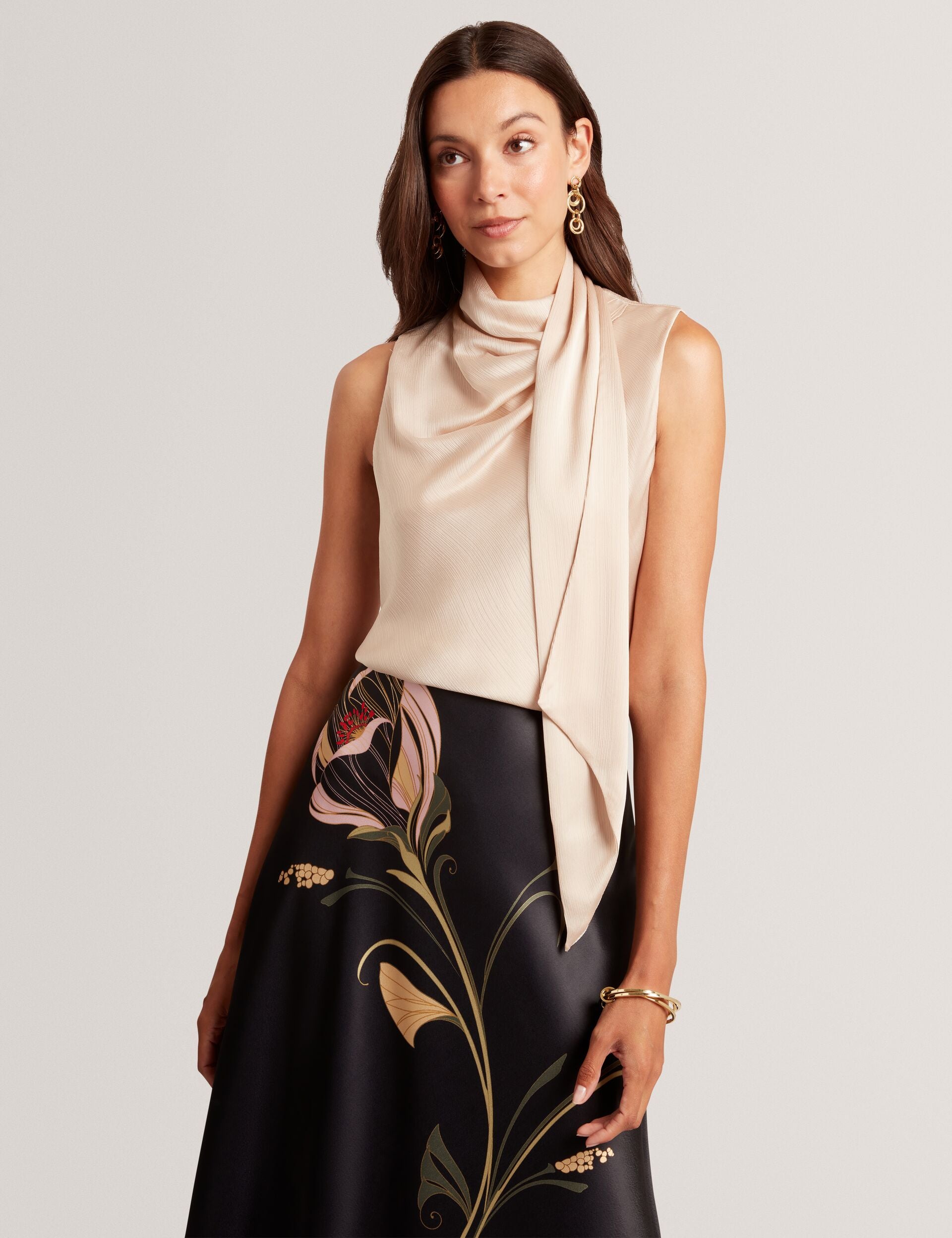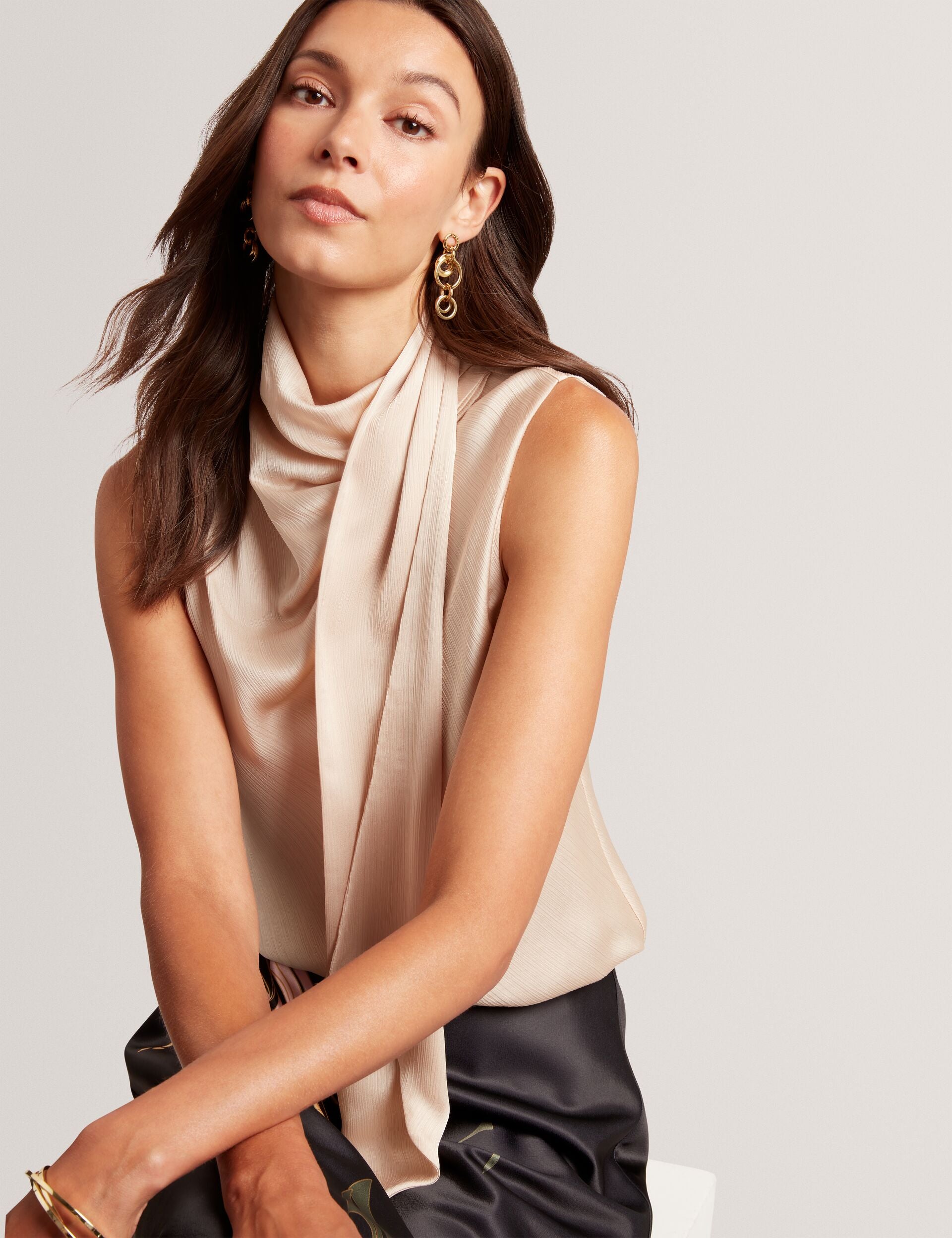 Tie Neck Draped Sleeveless Top