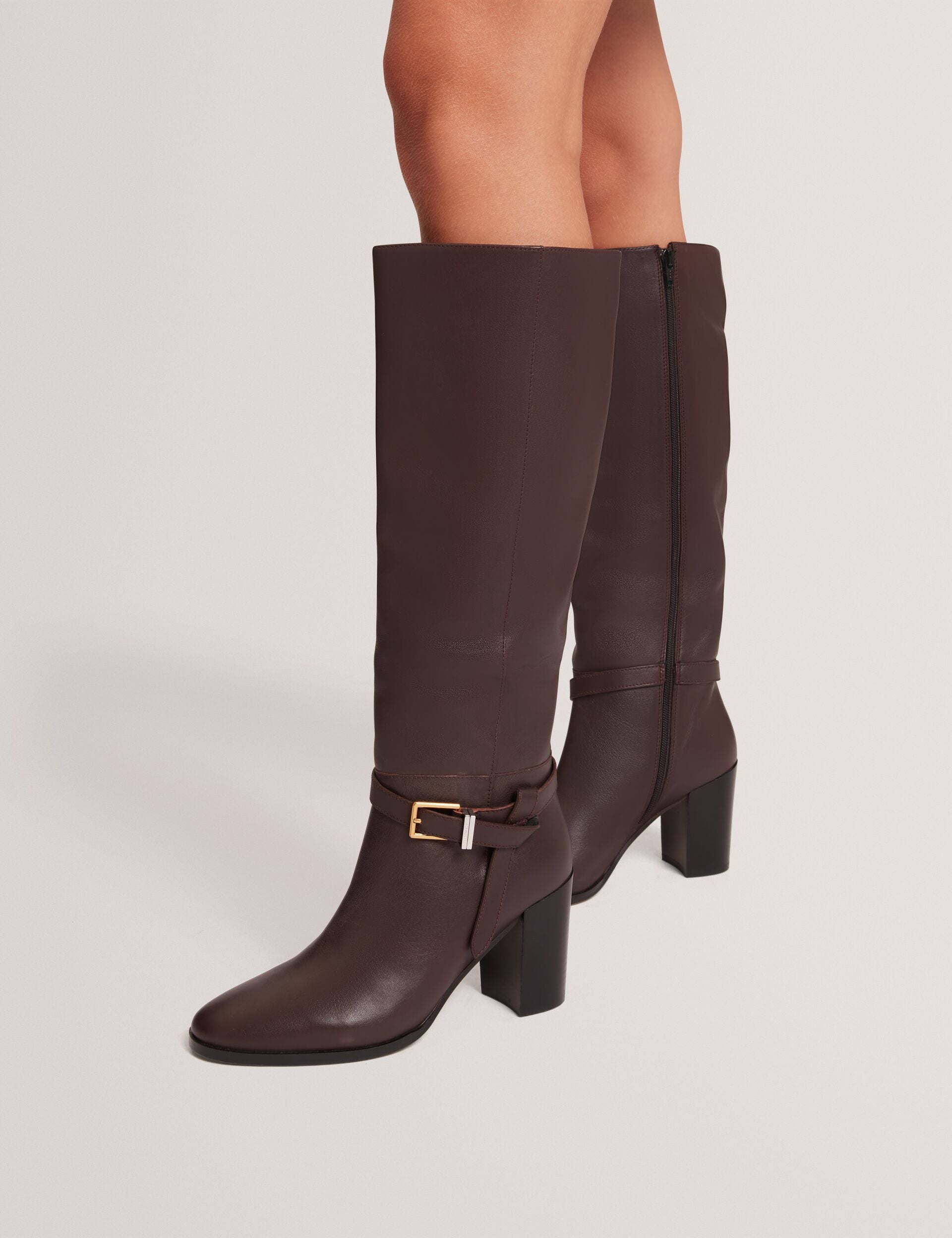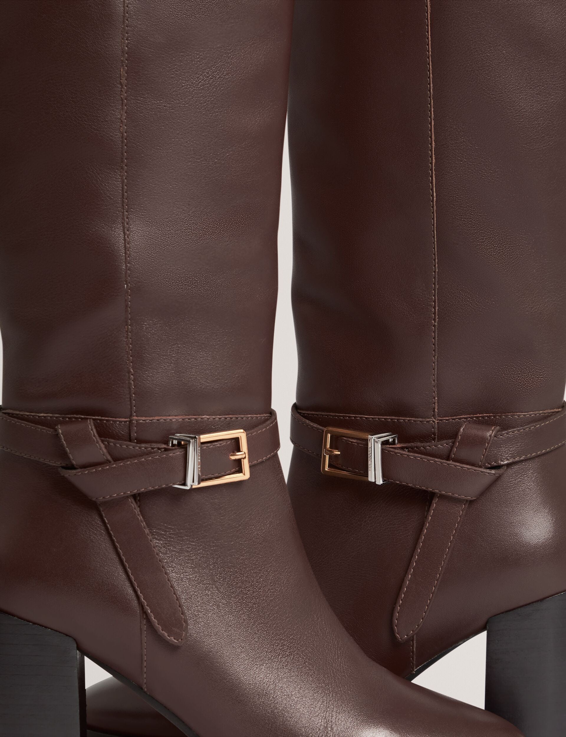 Saddle up in style with the CLOELLA equestrian-inspired knee-high boots. Crafted from 100% genuine leather, they feature a rounded toe, chunky block heel, and signature belt detail for a timeless, confident look.