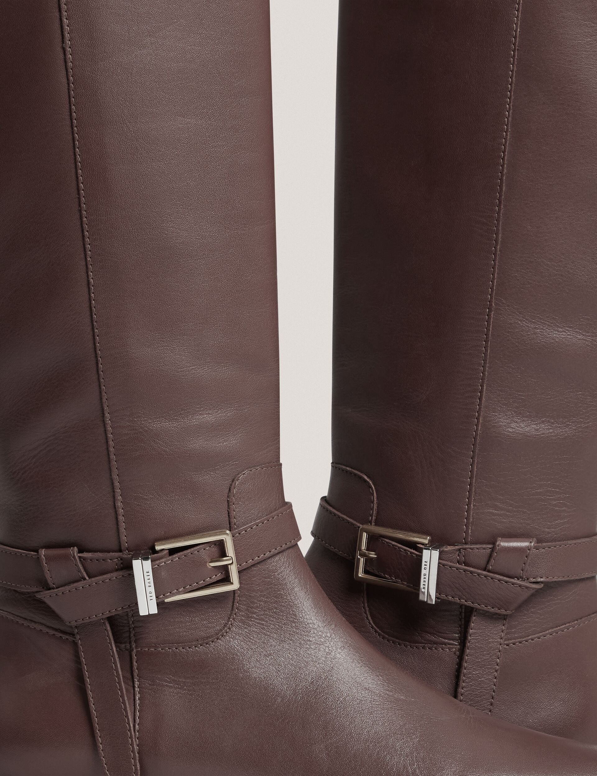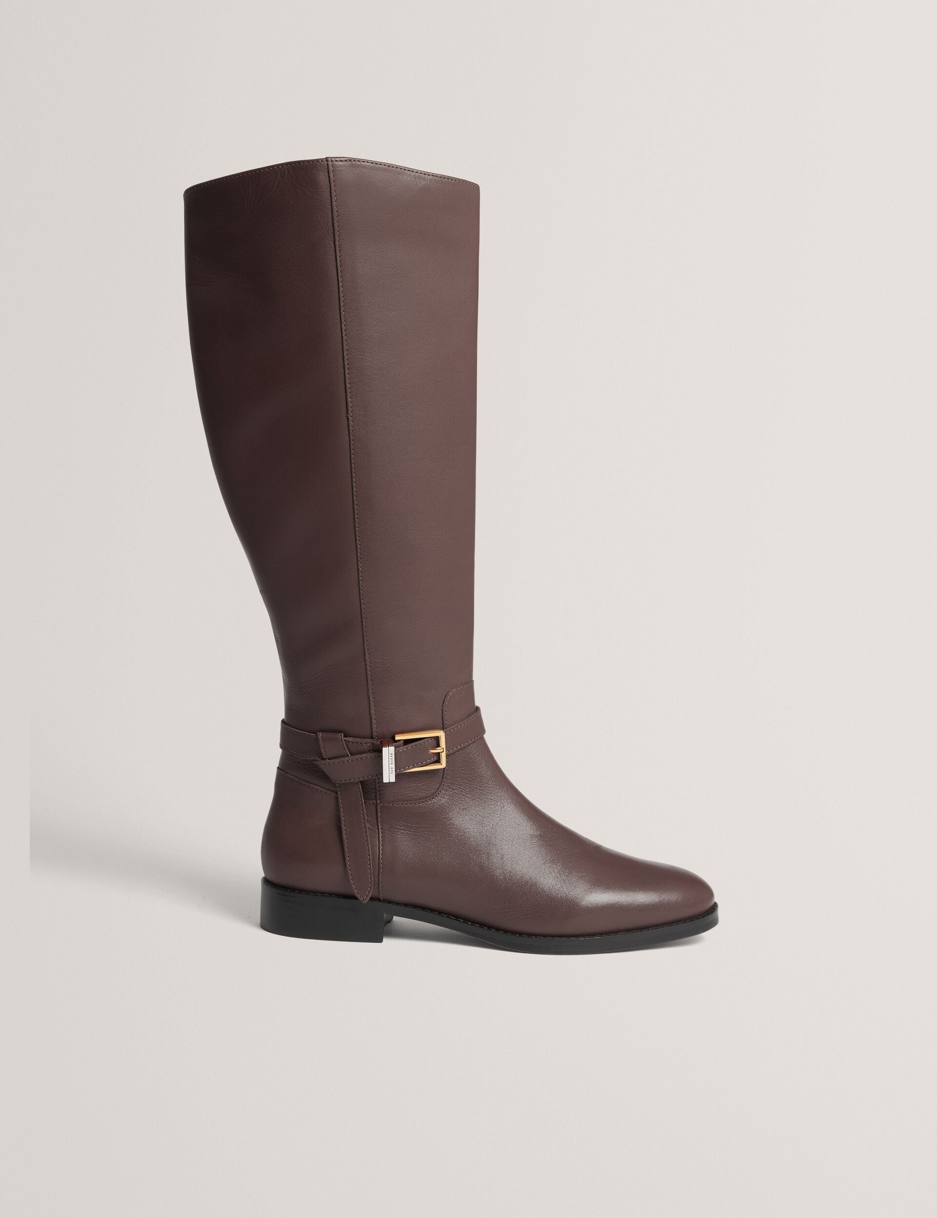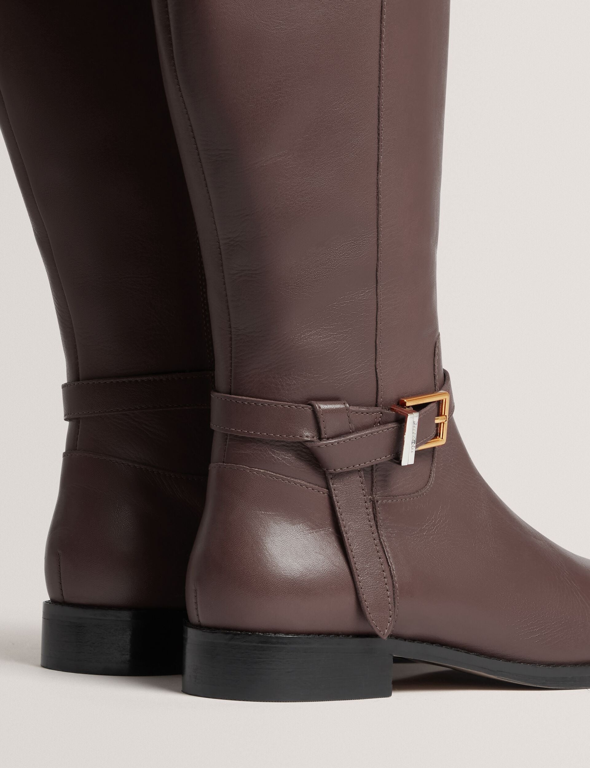 Belted Detail Flat Leather Riding Boots