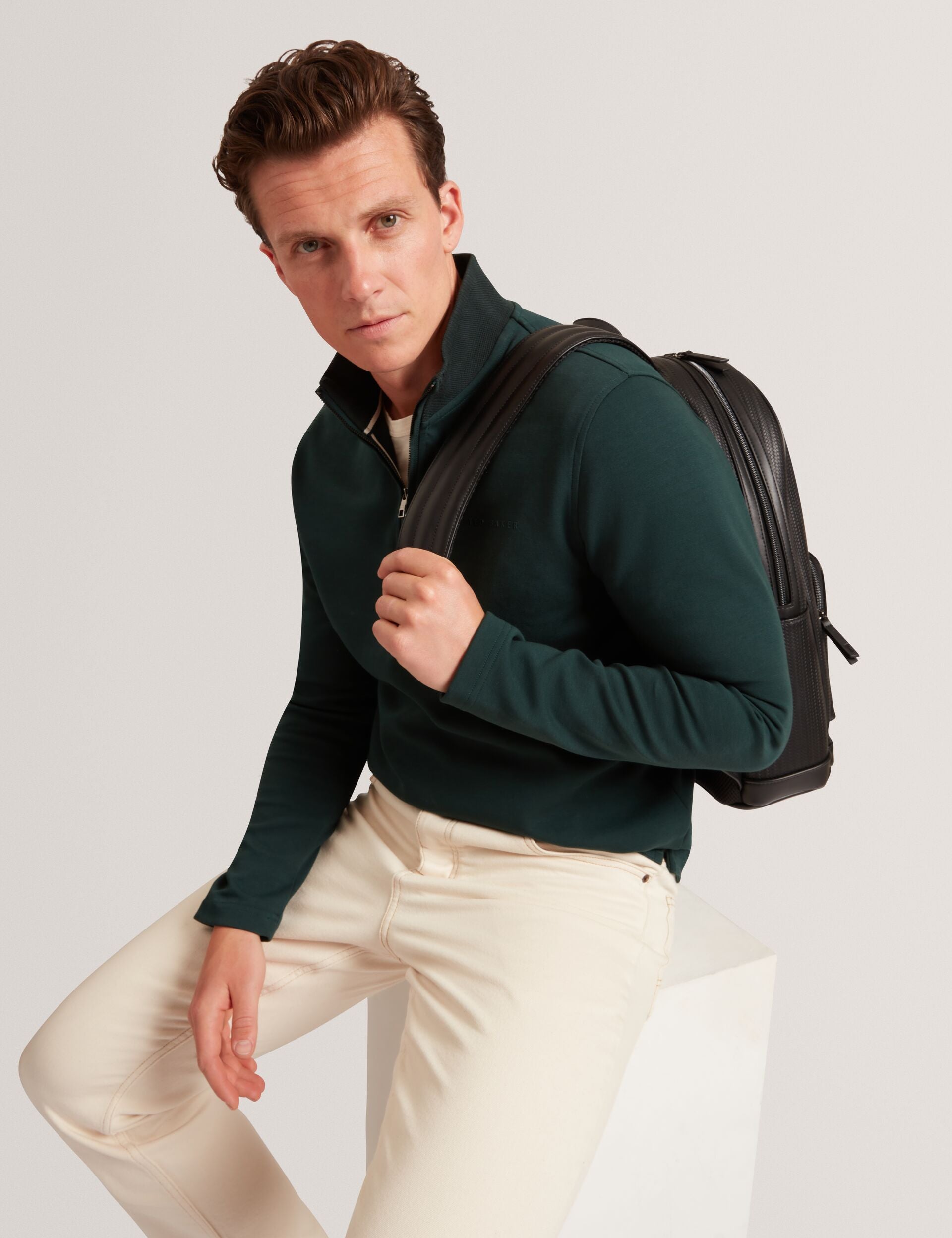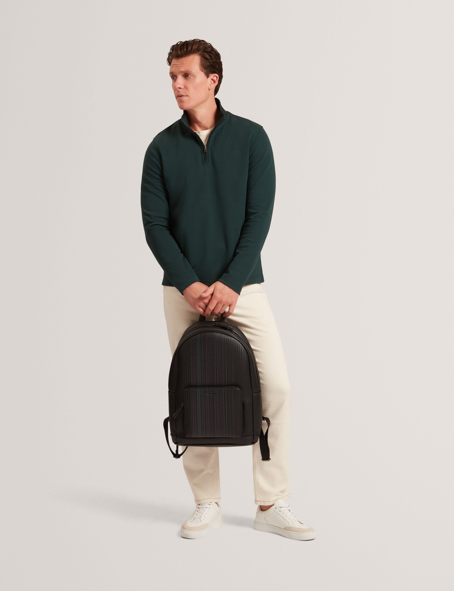 - Zip-neck sweatshirt