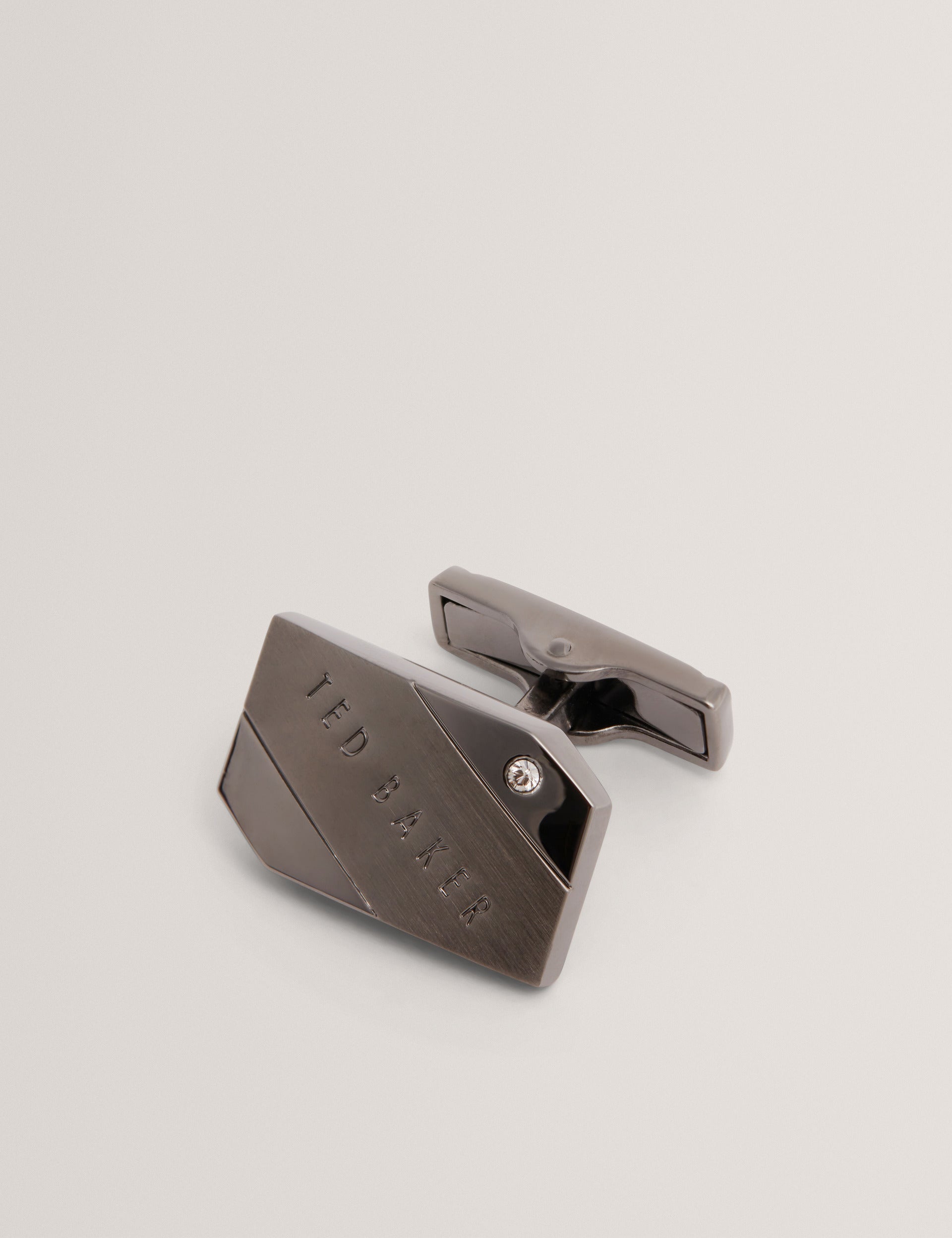 The CRIIS cufflinks bring refined flair to any dress shirt with an engraved logo detail added to a brushed metal panel, complete with a single crystal stone for a touch of shine.
