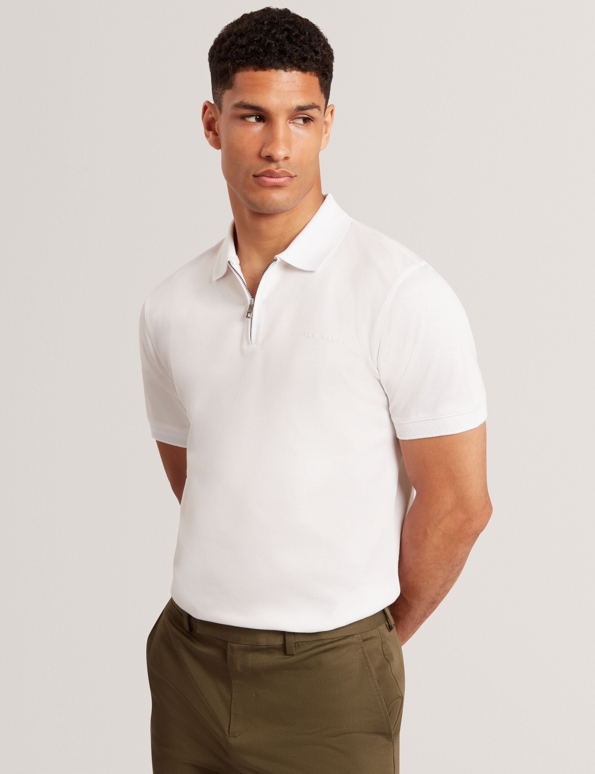 - Polo collar with zip neckline