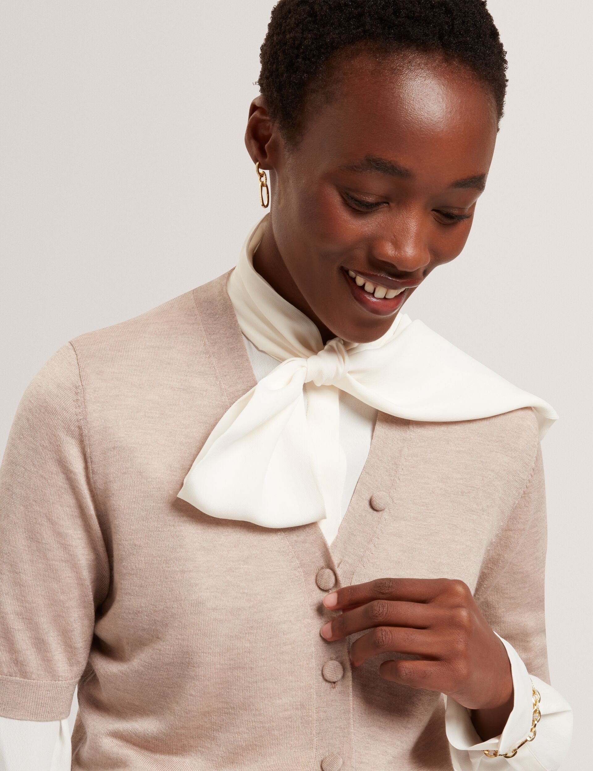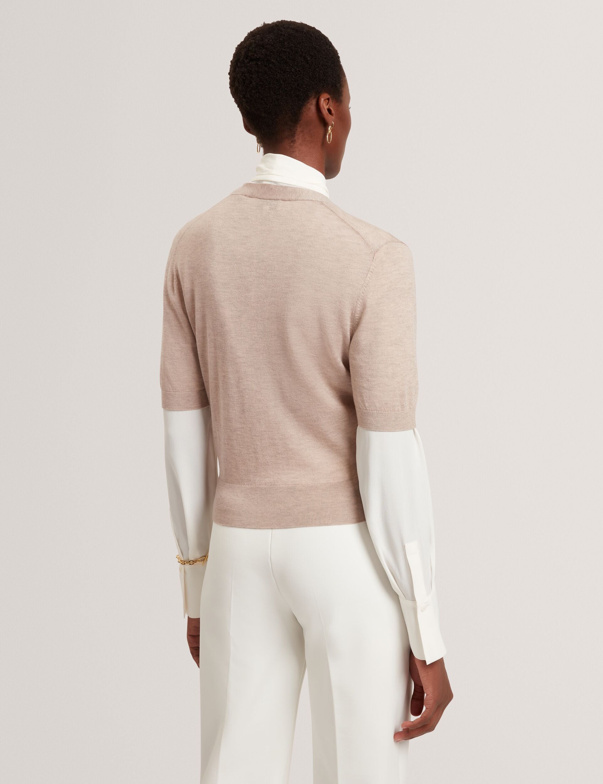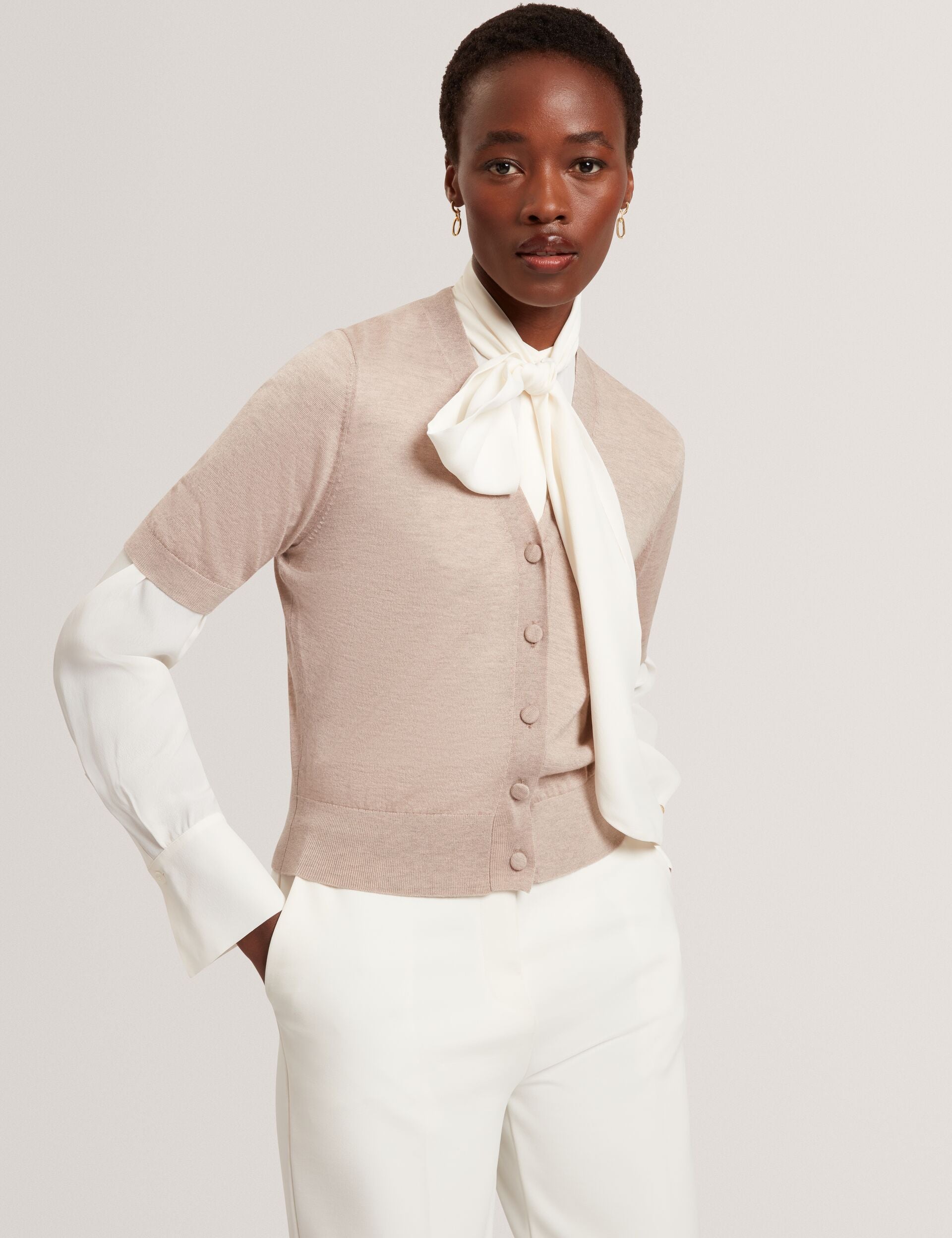 Made from a luxurious merino wool blend with a touch of silk, the DAZLIA short sleeve cardigan is your transitional wardrobe hero. Cut to a cropped length, this chic basic pairs perfectly with high-waisted pieces.