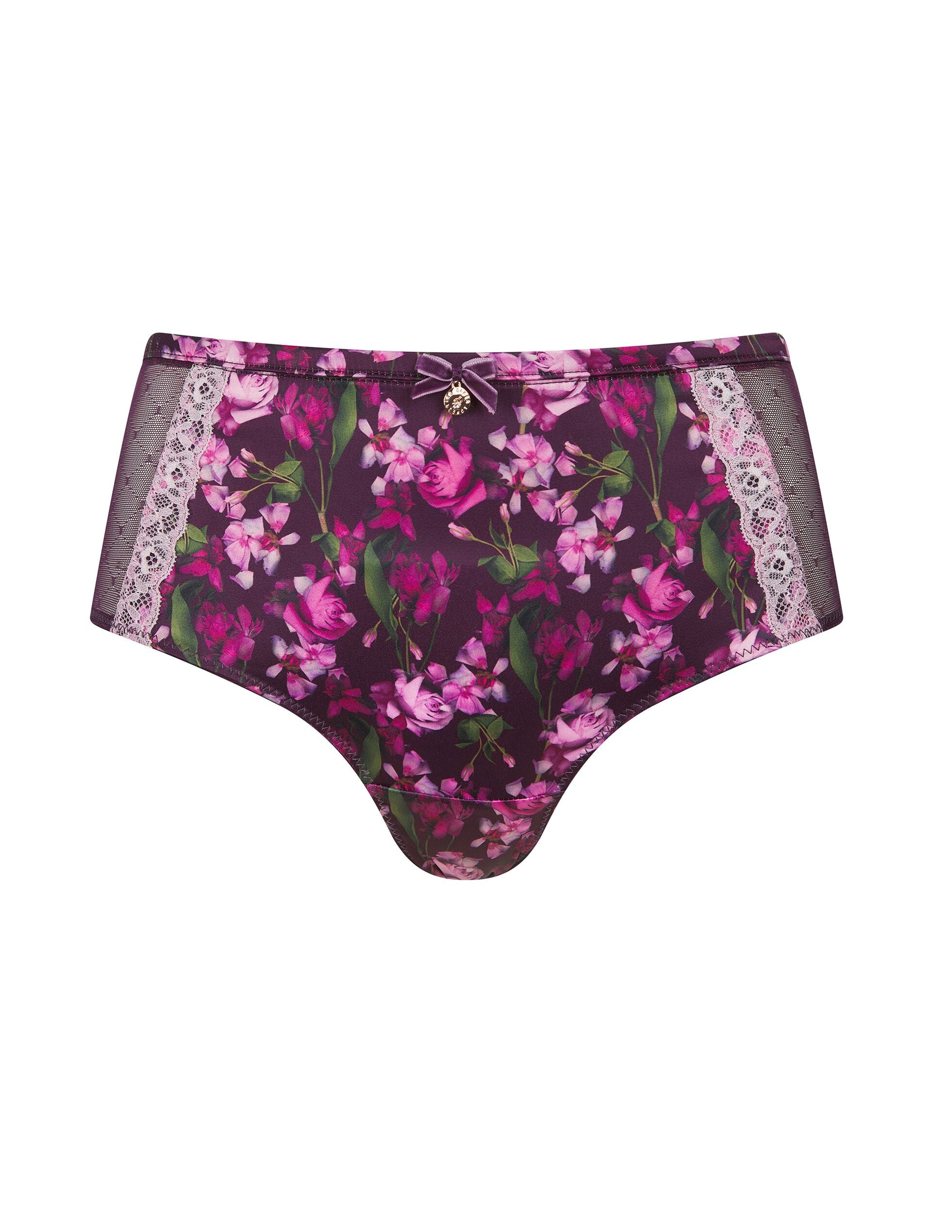 Designed in a flattering high-waisted silhouette, the DEMI full briefs give you elegant coverage. A smooth satin front is printed with a deep pink petal design and trimmed with delicate lace details, whilst the back is crafted from breathable mesh for a cheeky finish.