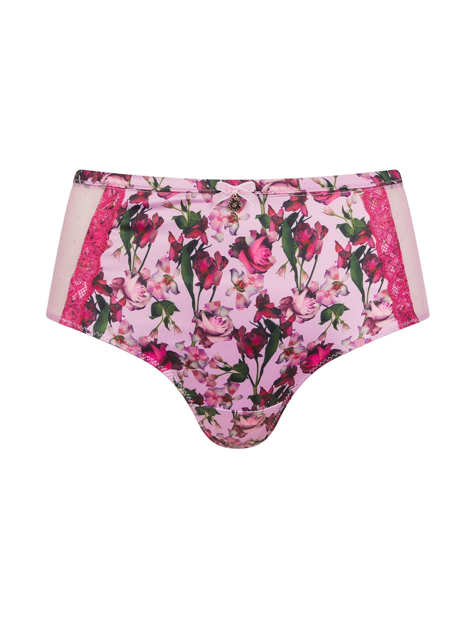 Designed in a flattering high-waisted silhouette, the DEMI full briefs give you elegant coverage. A smooth satin front is printed with a pink petal design and trimmed with vibrant lace details, whilst the back is crafted from breathable mesh for a cheeky finish.