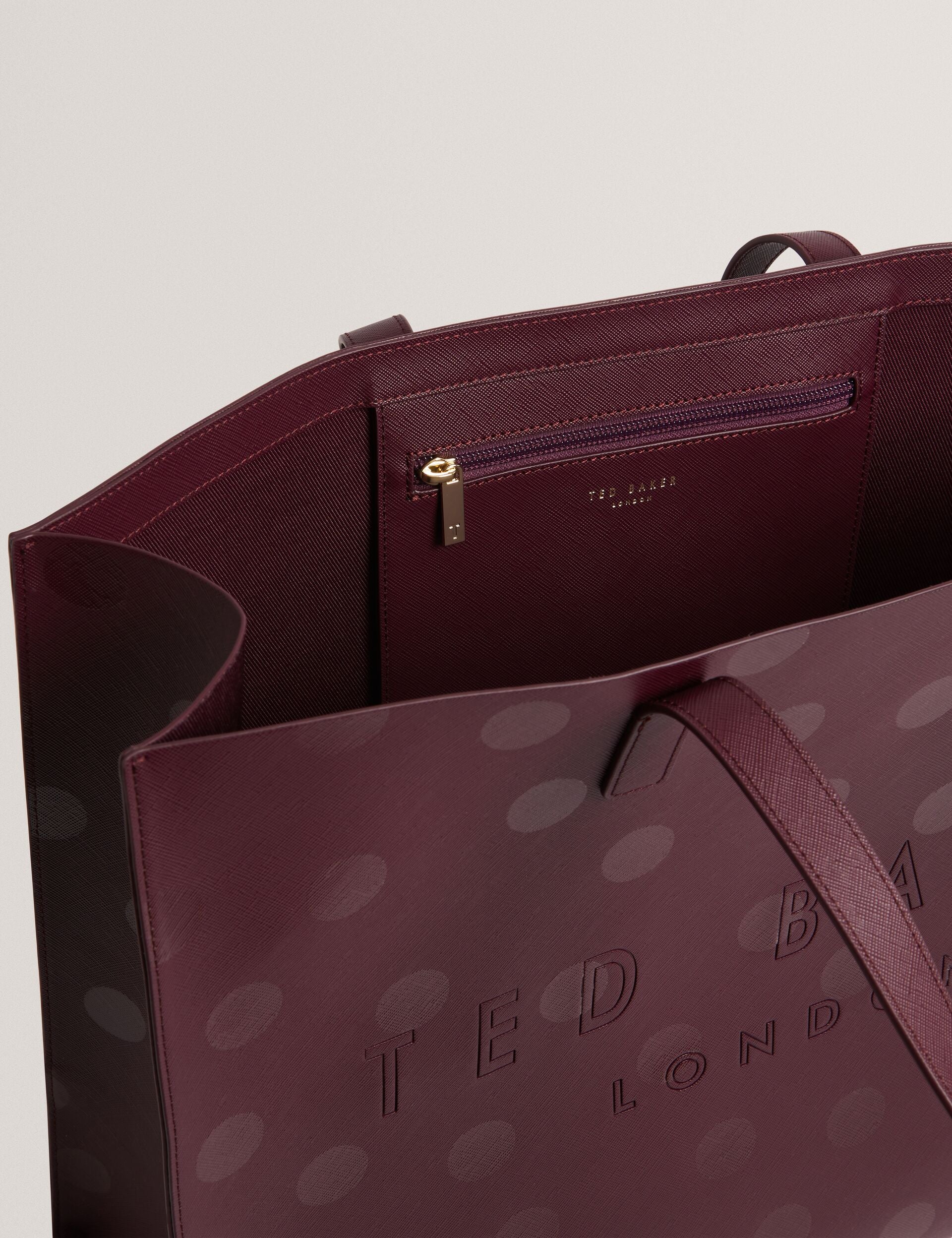 Go dotty for DOTEE. Adding a tonal polka dot print to our icon tote silhouette, this bag is equal parts playful and classy. Its wide, structured shape is crafted from a textured PU leather that's built for busy days.
