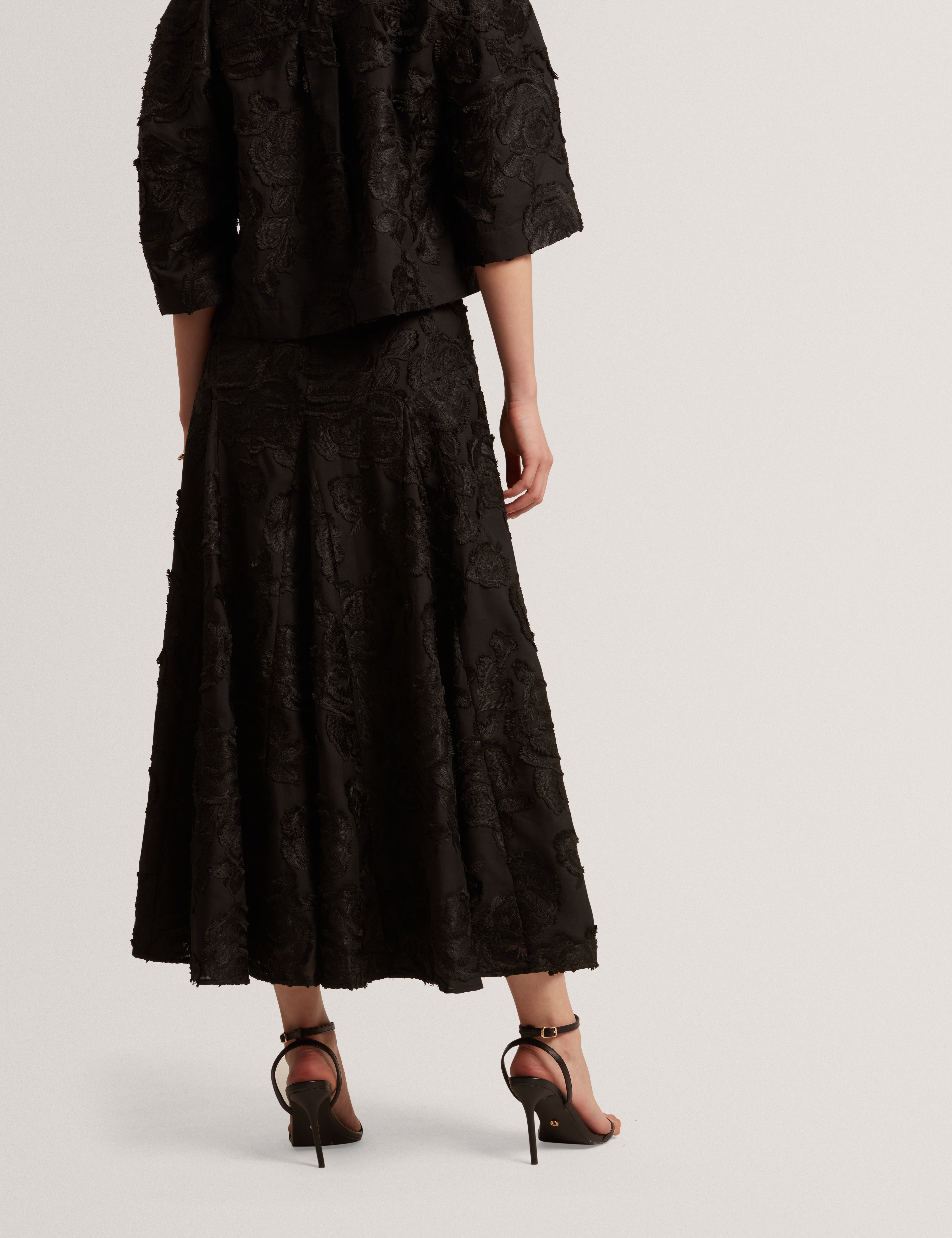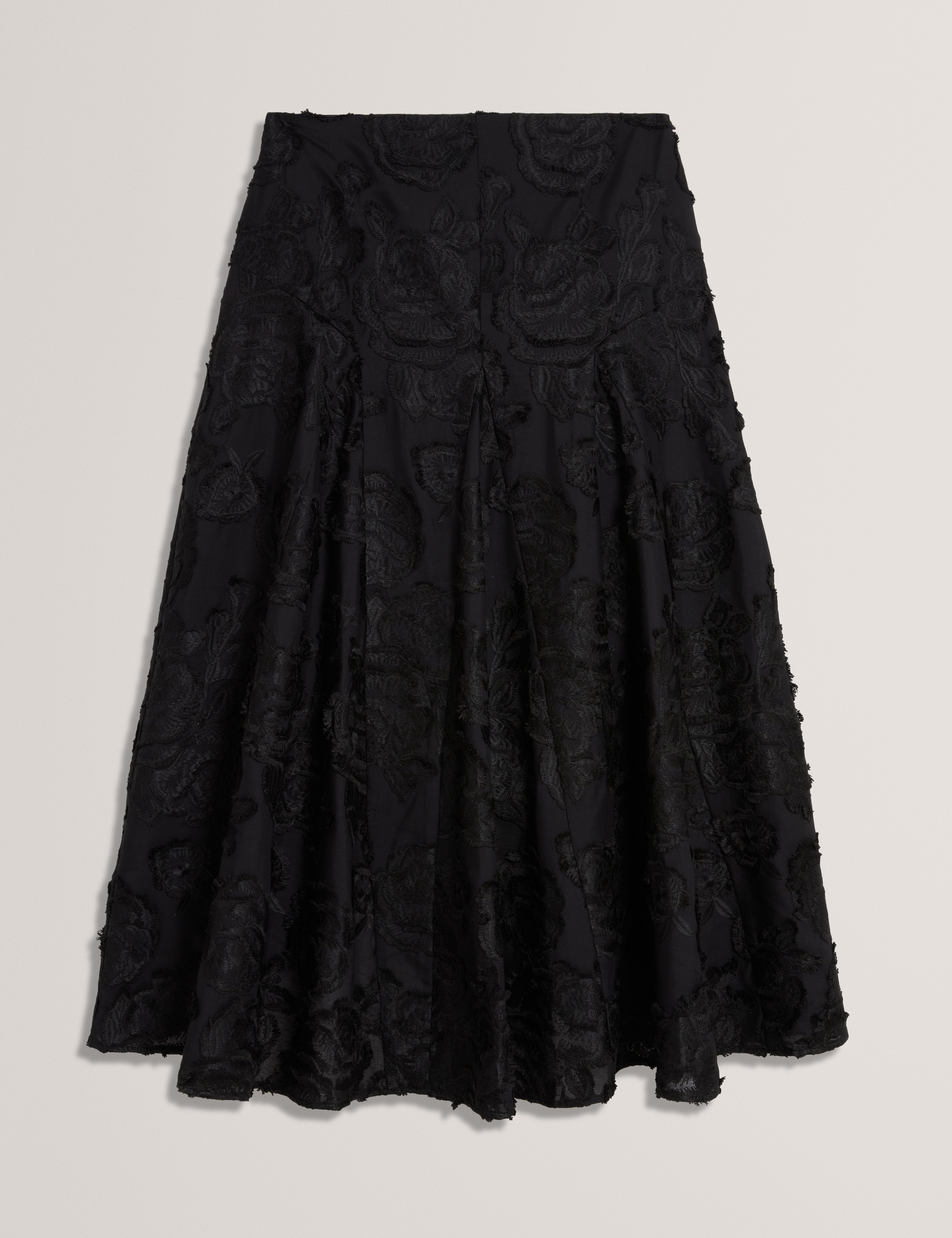 Textured Rose Embroidery A-Line Midi Skirt