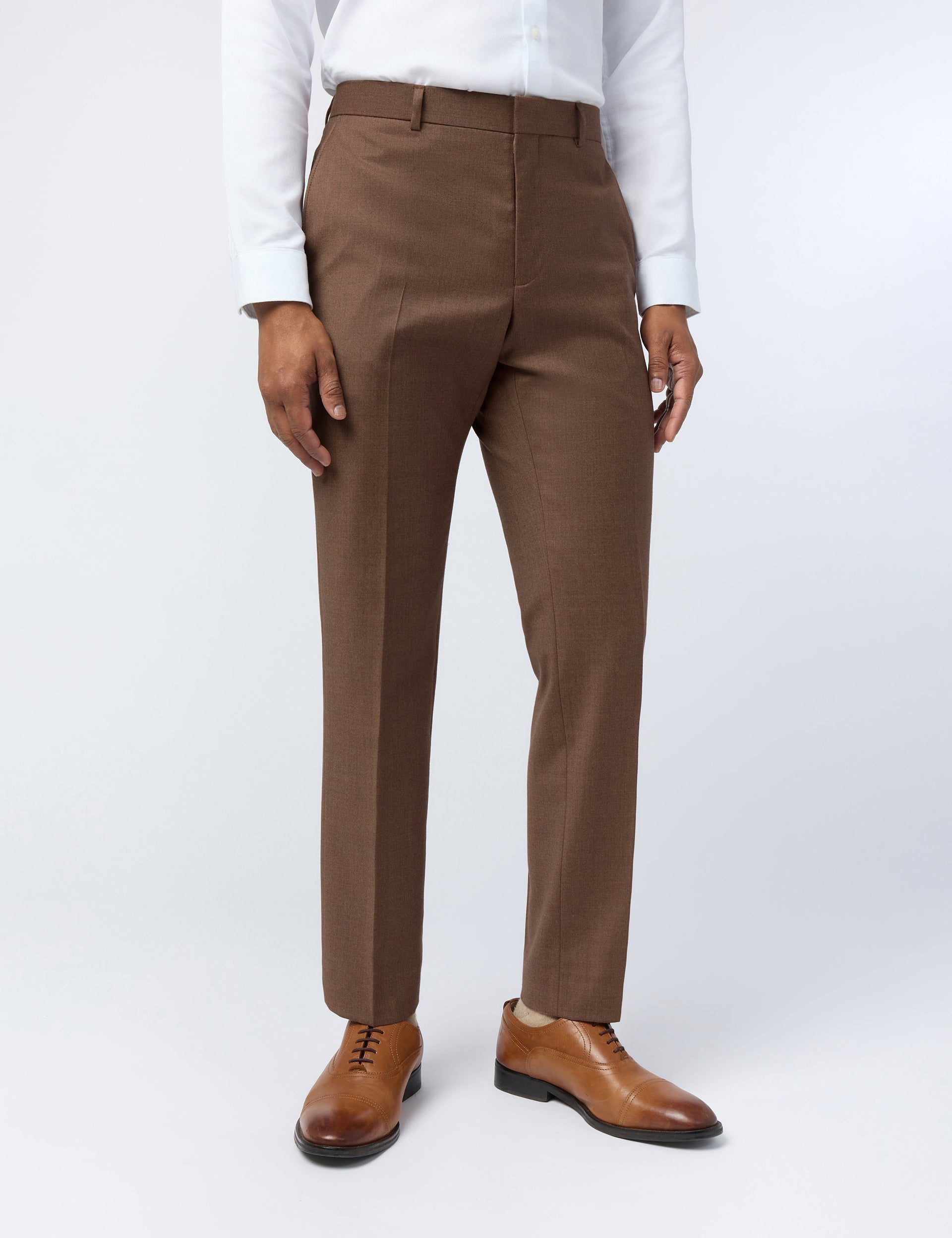 Sharp tailoring, subtle texture, and seasonal colour - it's the ELIOT suit trousers. The flannel fabric is soft to touch, made from a wool blend that delivers a hint of stretch and natural breathability to the contemporary slim fit.