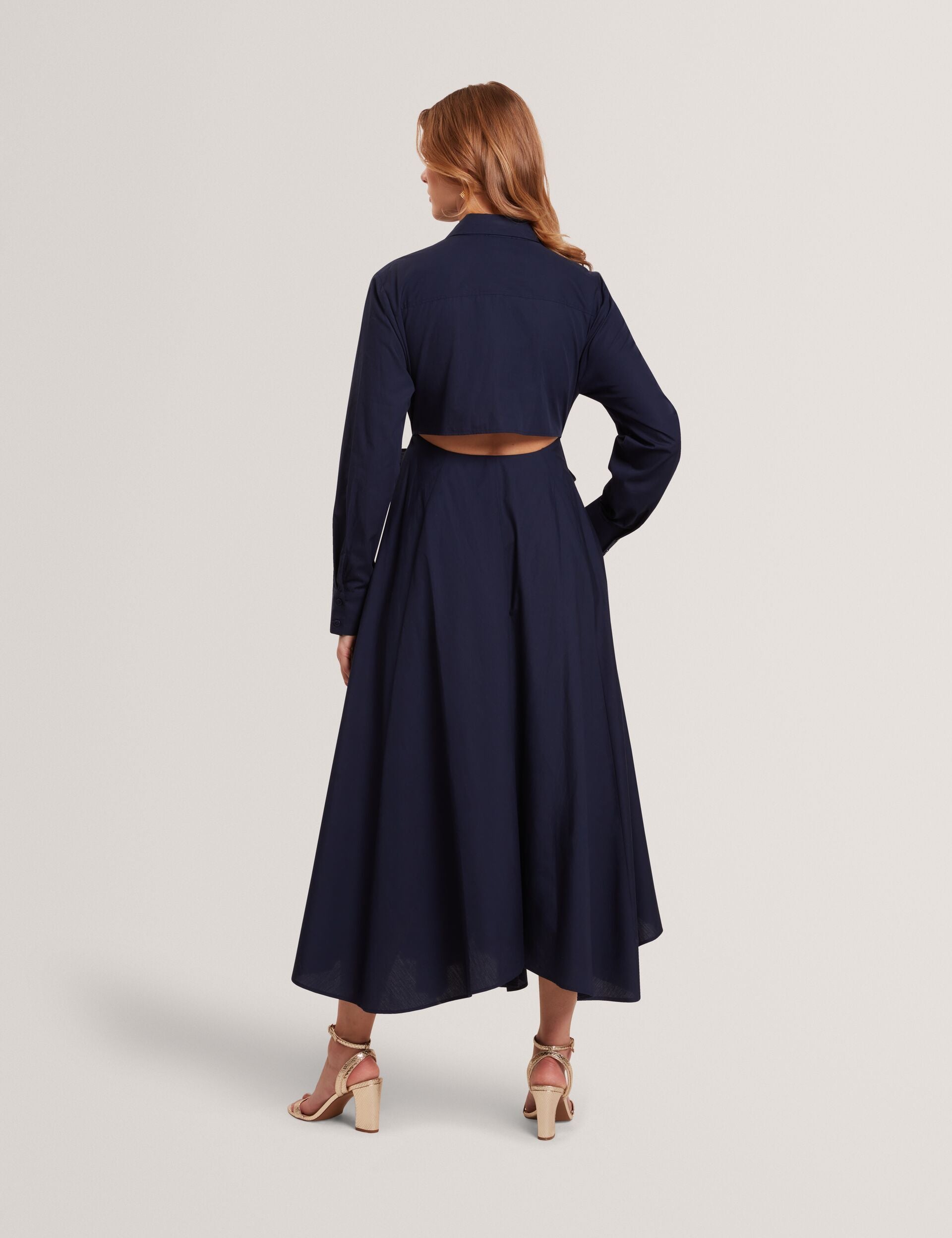 The ELLISIA shirt dress is easy style that you'll reach for at every moment. This pure cotton piece is designed with a wrap-around waist that can be tied at the front or back to switch up your look, and we've added a cut-out detail at the back for a dramatic touch.