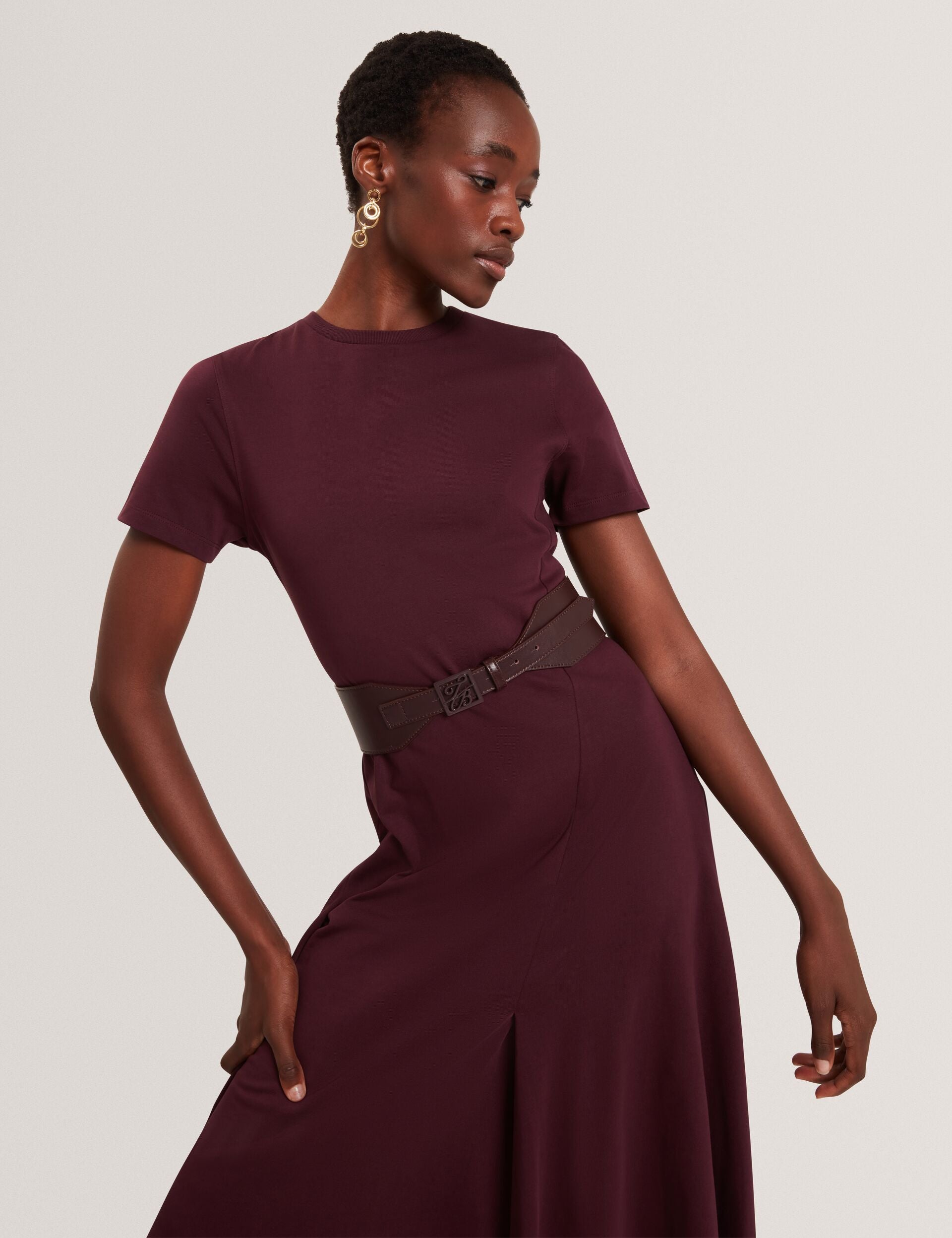 FUUSIA is an elevated take on the classic t-shirt dress, featuring curved panel details and a full circle skirt with gathered sections to create elegant movement. Made from a heavyweight jersey cotton, it's a comfortable staple that's designed to last.