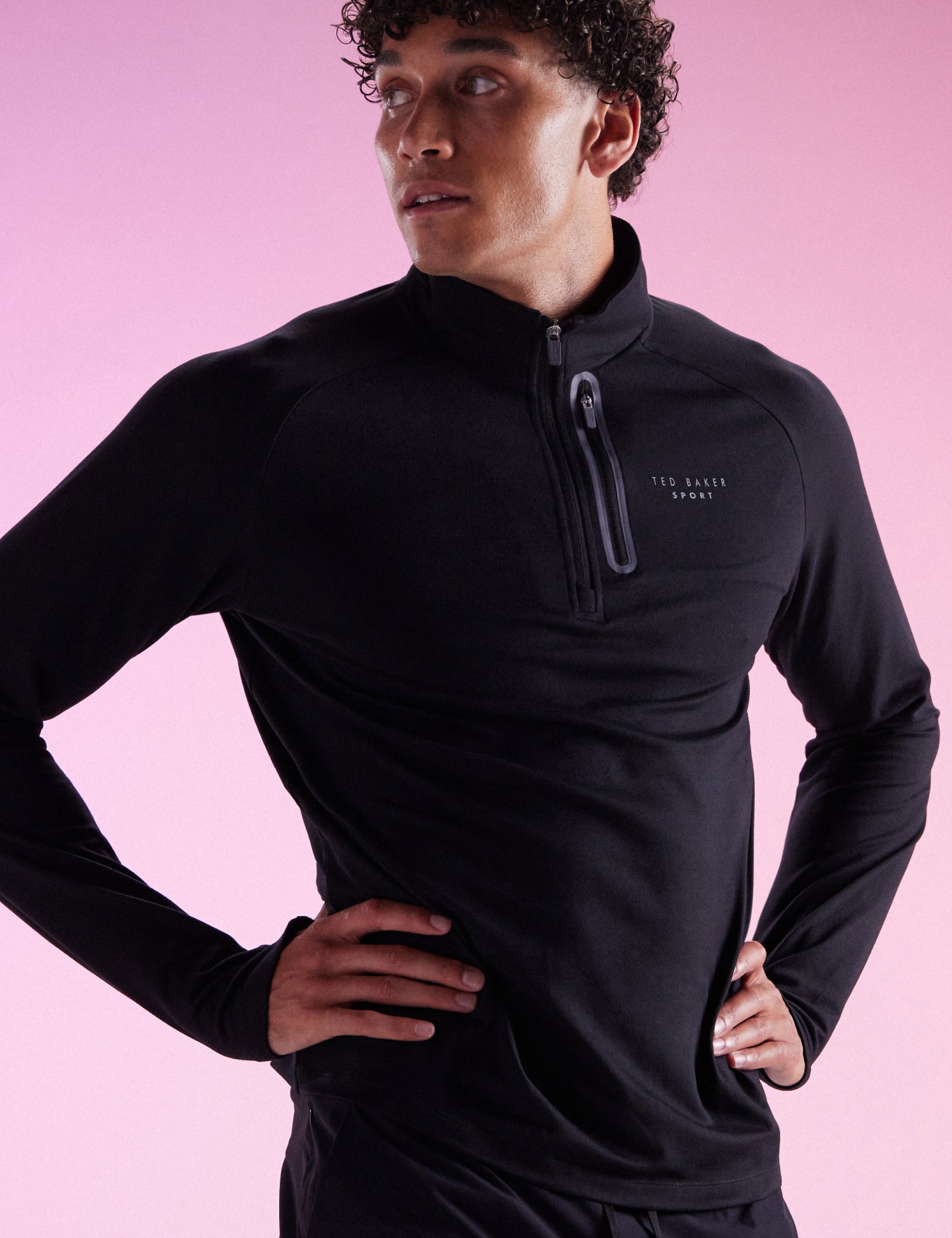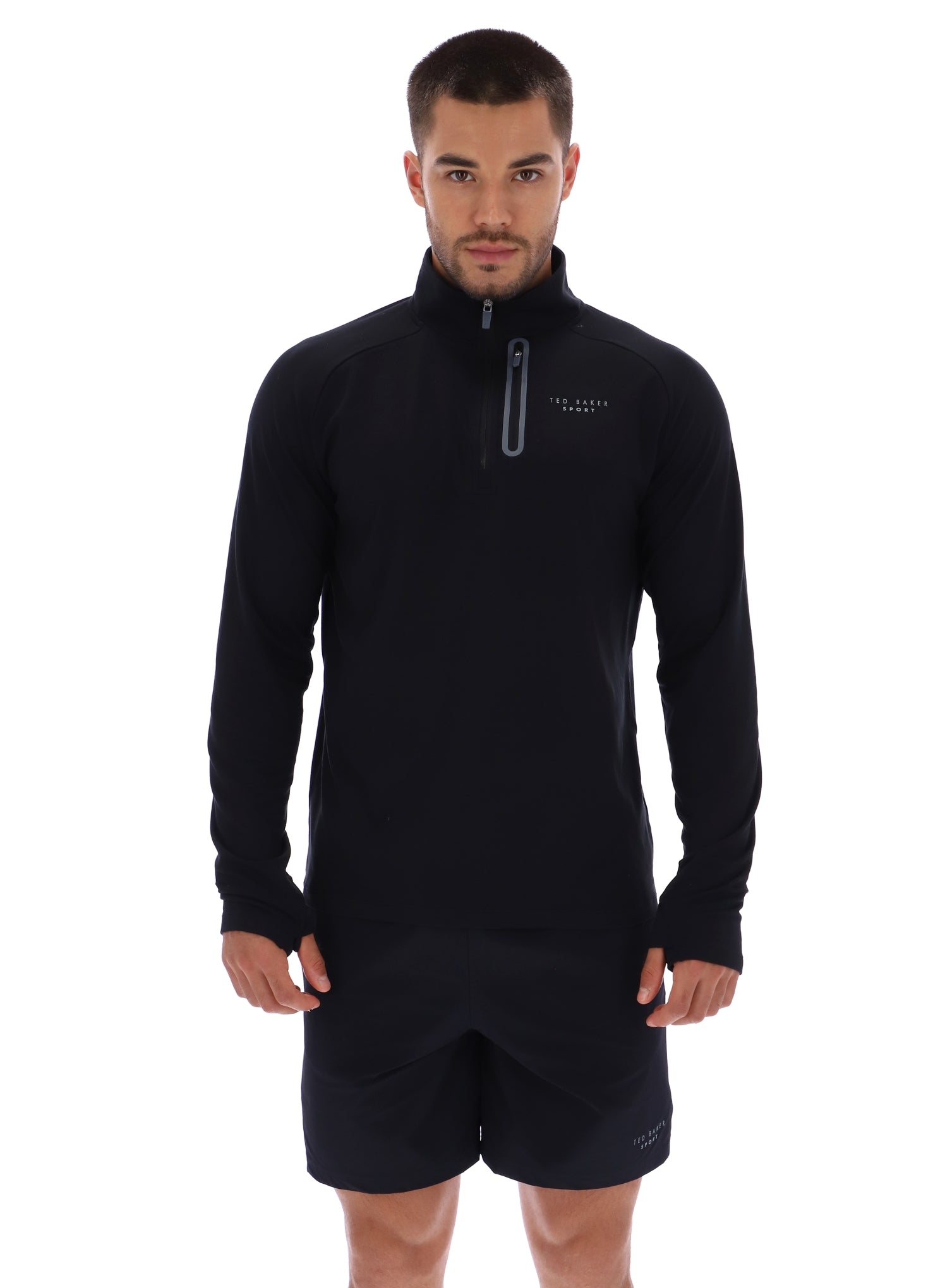- High neck with quarter zip