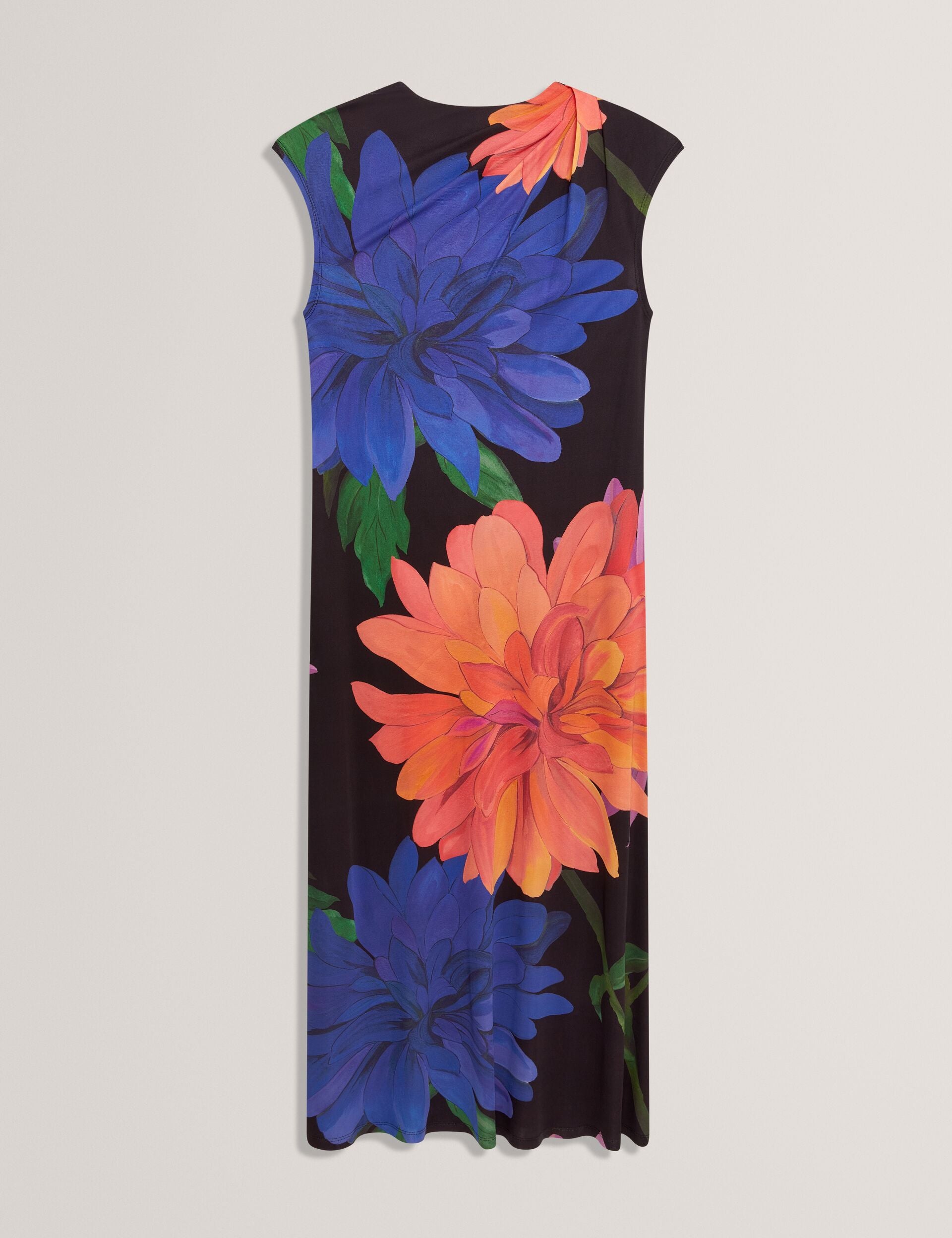 Dahlia Print Draped Neck Jersey Midi Dress