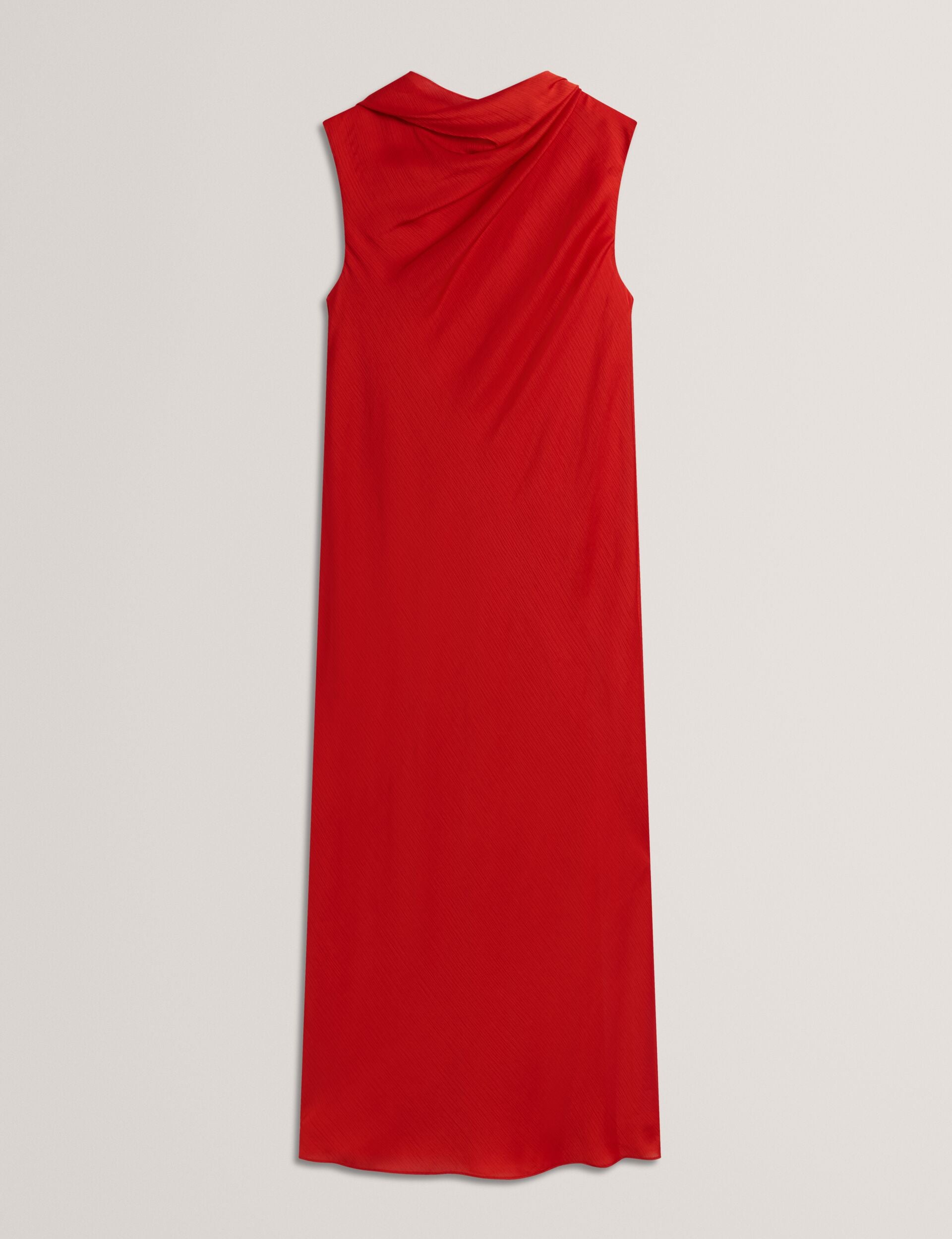 Marrying bold seasonal colour with an elegant silhouette, you'll want to wear the GOANA midi dress to every event this season. Satin chiffon fabric boats subtle shine and texture, and we've added a tie neckline with draping detail that brings movement to the sleek column shape.