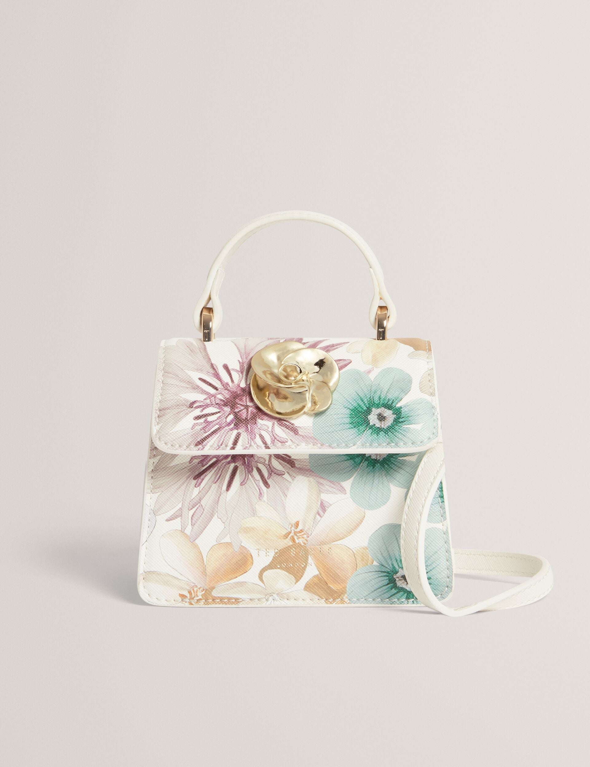 Pretty from every angle. HELENSA charms with soft pastel florals, a sculpted rose detail, and a mini top-handle silhouette that’s pure romance. Wear with the removable crossbody strap or carry by hand for a touch of elegance.