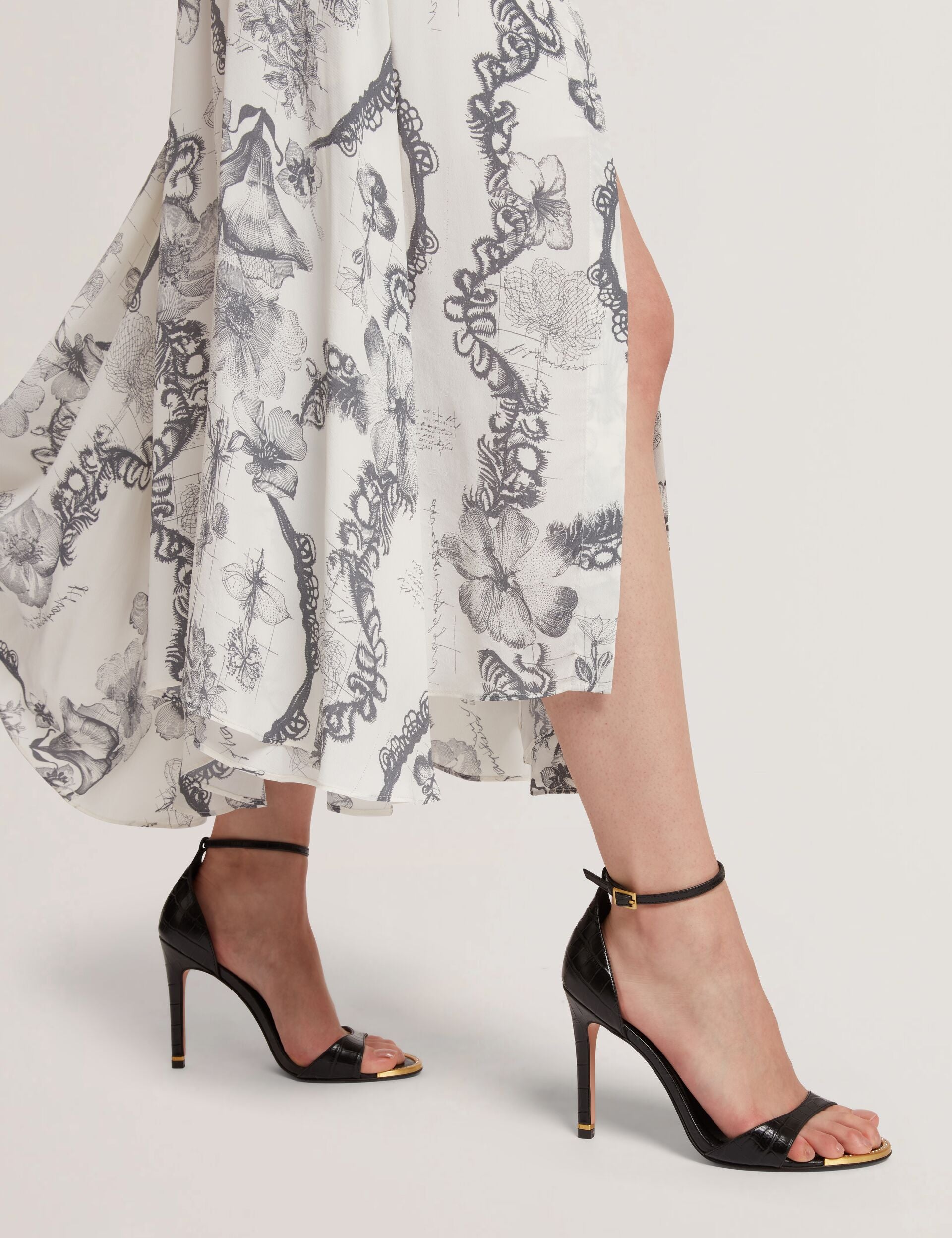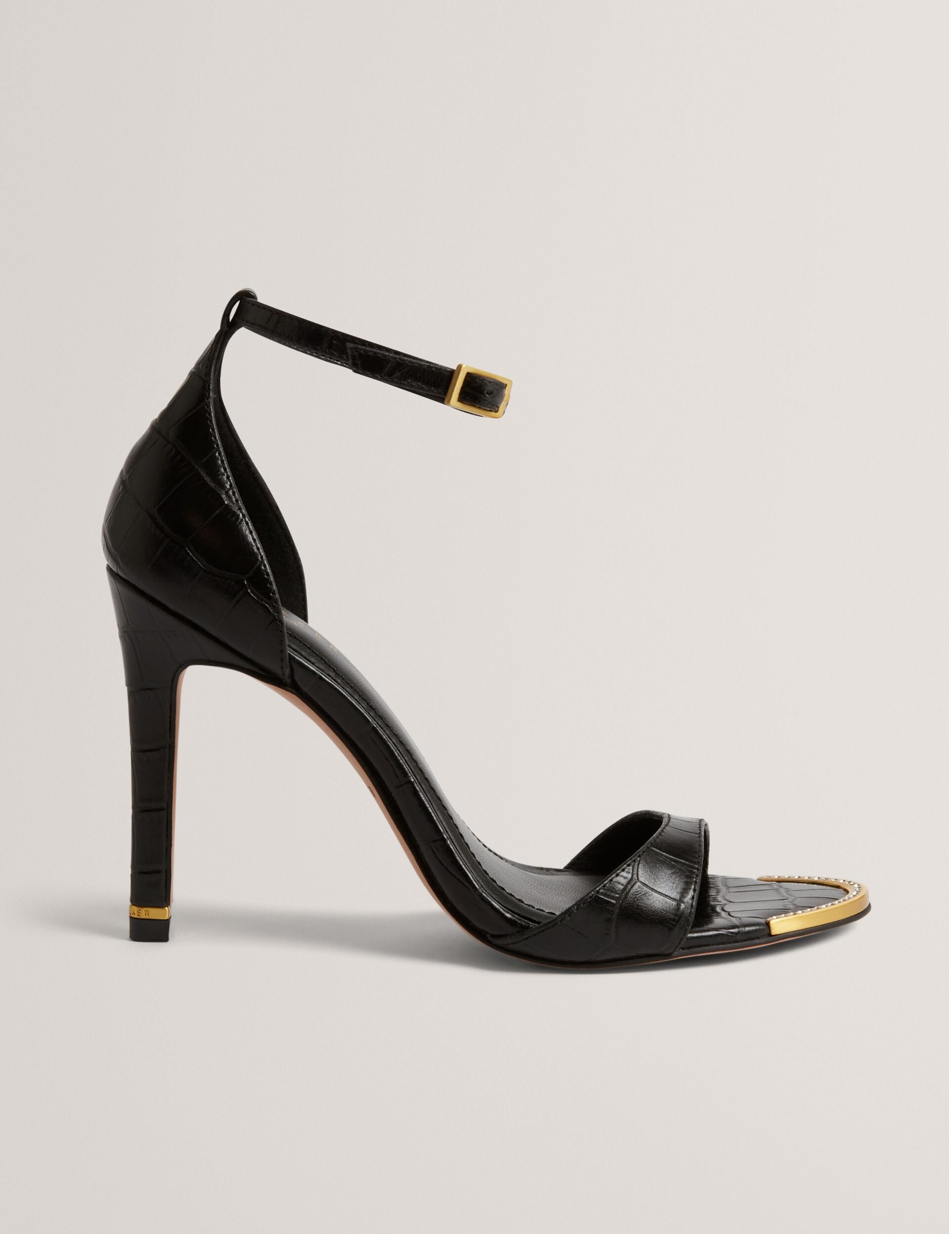- Stiletto heel with gold-tone hardware