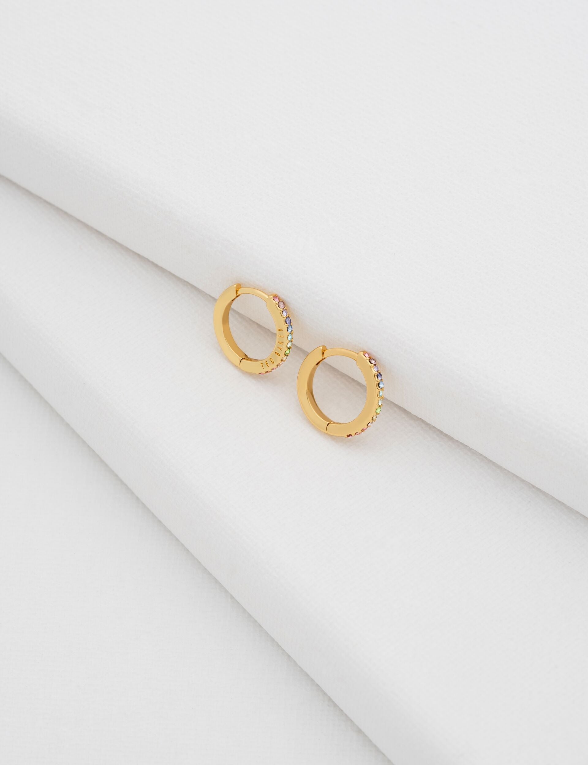 Drop your regular hoops in favour of HEPLIE. These eye-catching earrings are sure to make a sparkling statement, with the finest European rainbow pastel crystal in a gold tone finish.