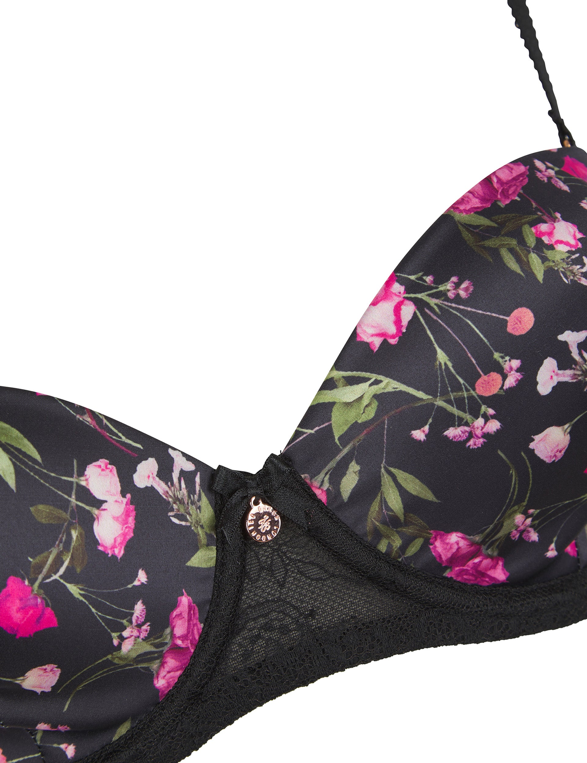 Elevate your underwear collection with HOLLY, printed with a vibrant floral design on smooth satin and finished with romantic lace panelling. This balcony bra creates a lifted look with sculpted cups and convenient multiway straps.